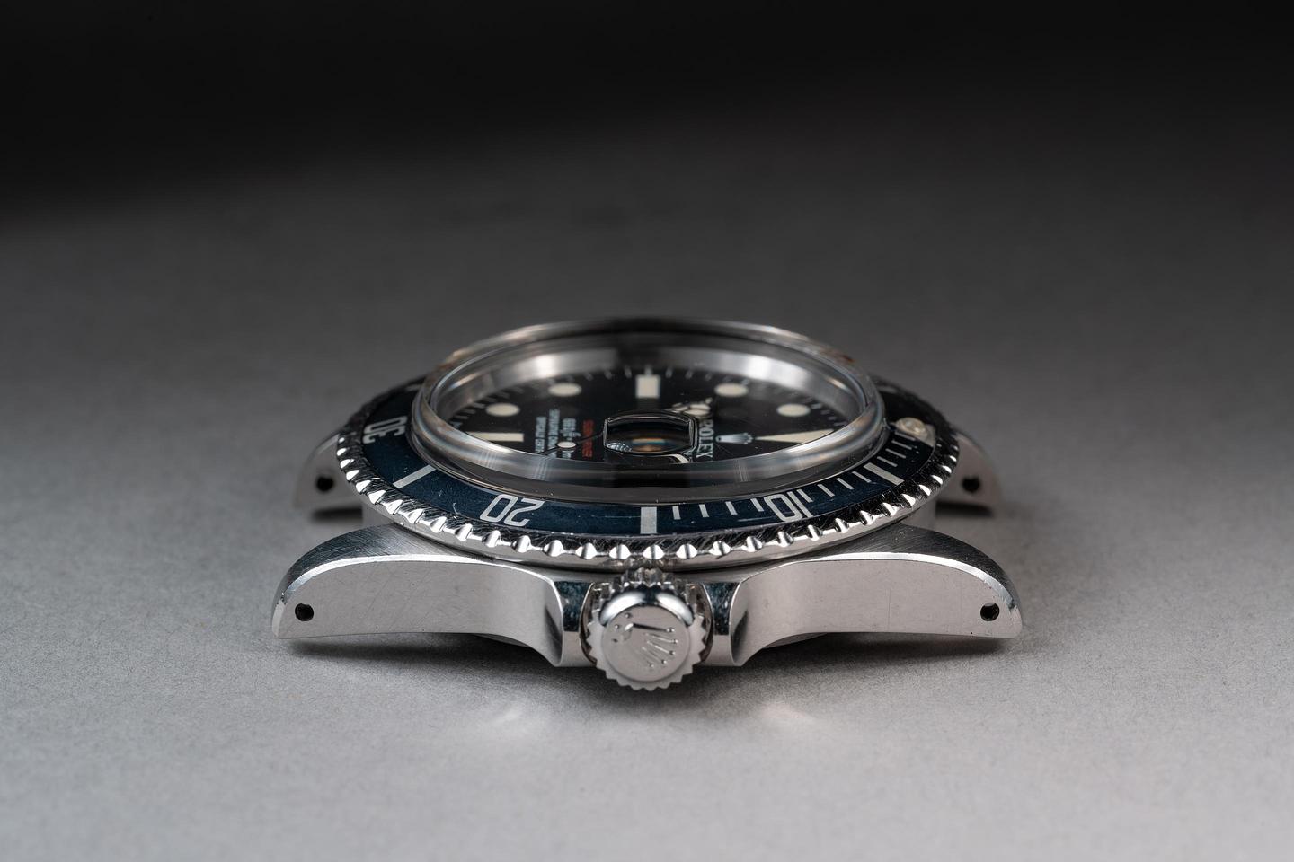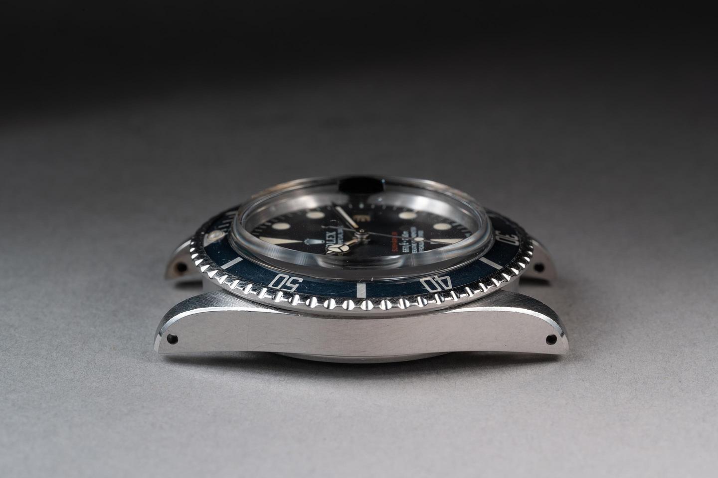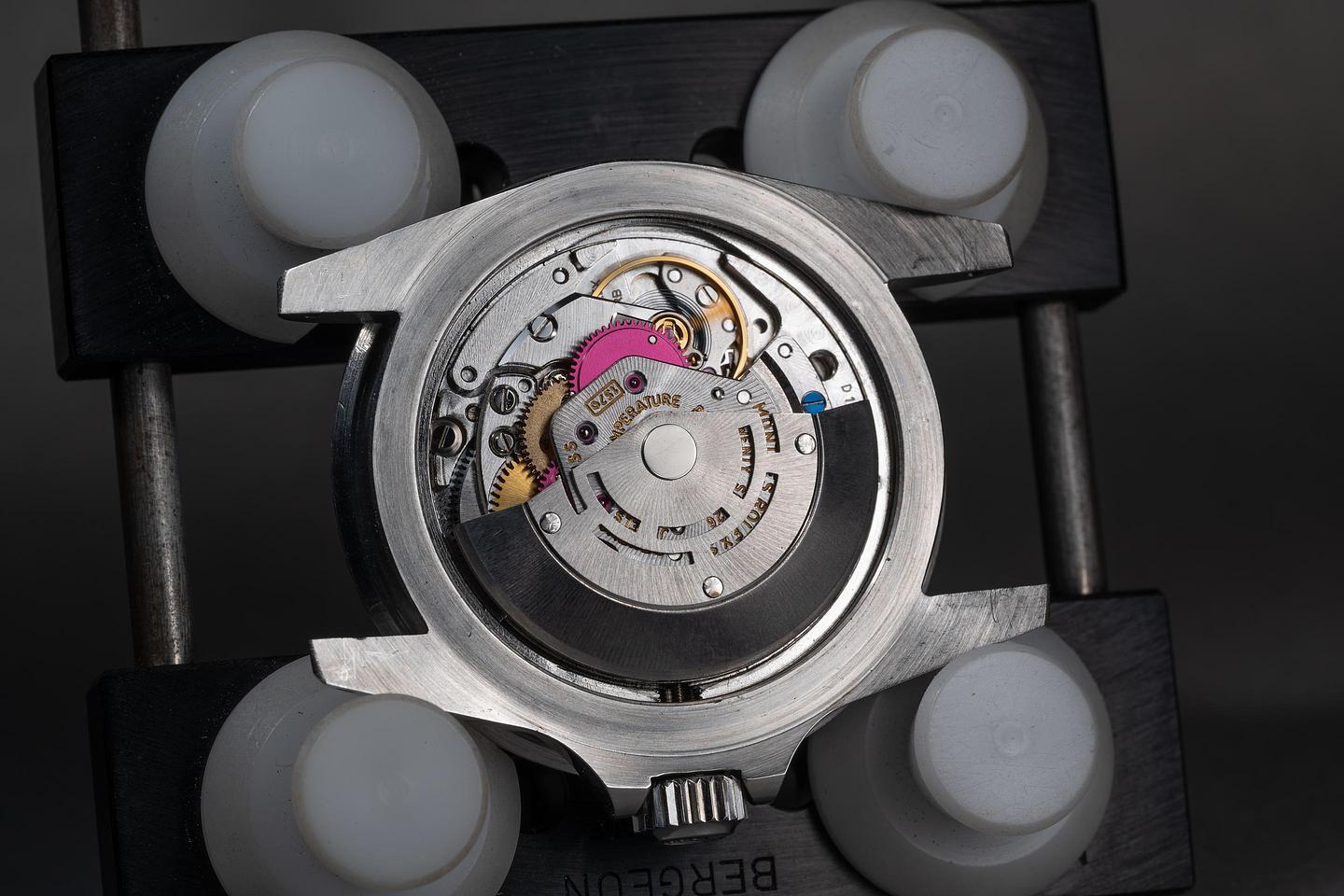 Case: The thick and even case is excellent showing some light wear form use. The bezel insert is also in excellent condition and has aged to a silvery blue hue showing only light wear form use.
