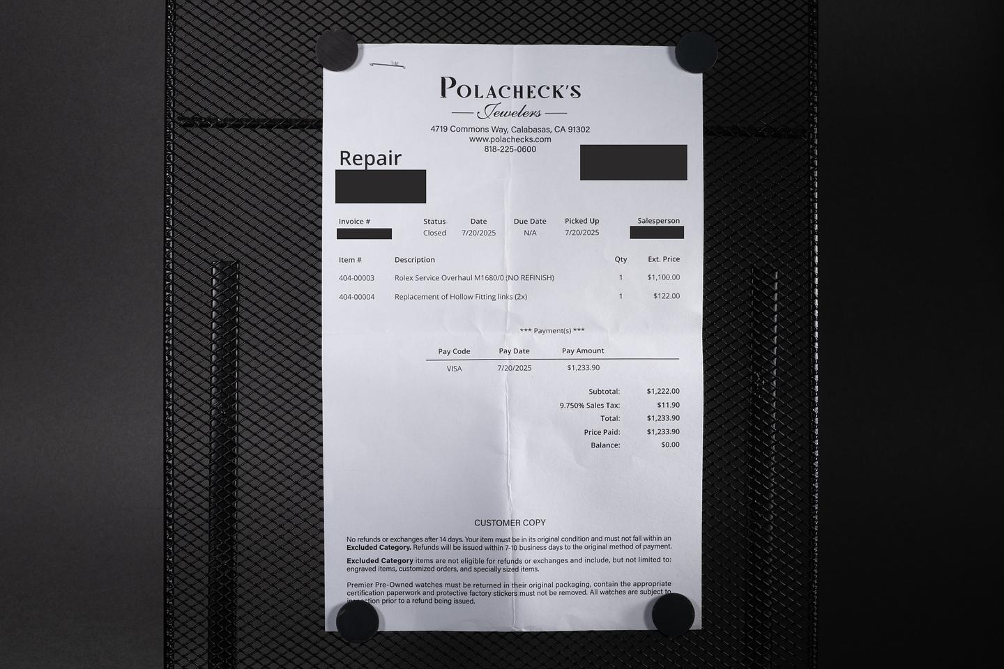 Bracelet: The 11 folded link Oyster bracelet is excellent showing only light stretch for its age. The clasp is stamped with a 1985 date code. The bracelet will fit up to a 18.4 cm. / 7.2" wrist.