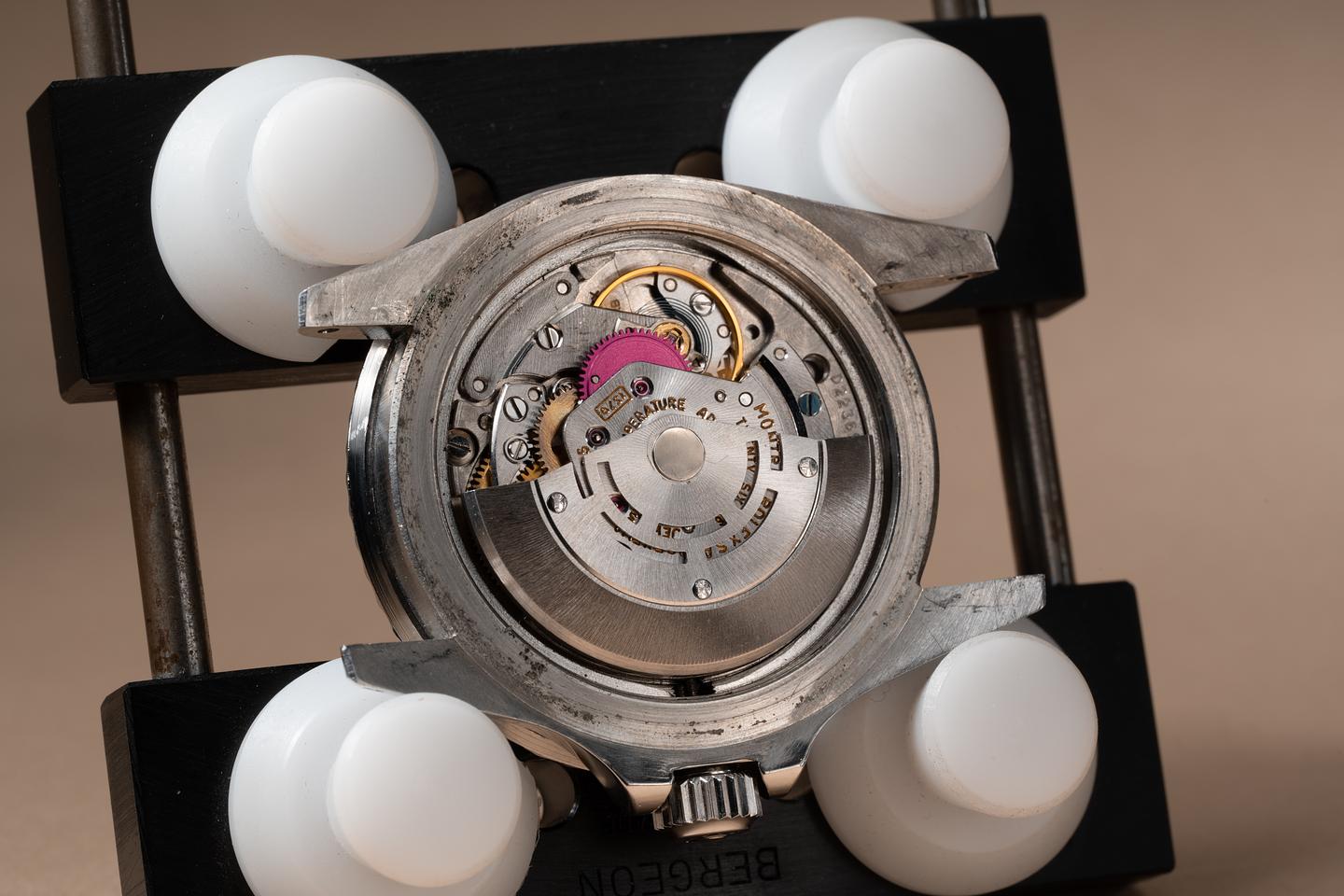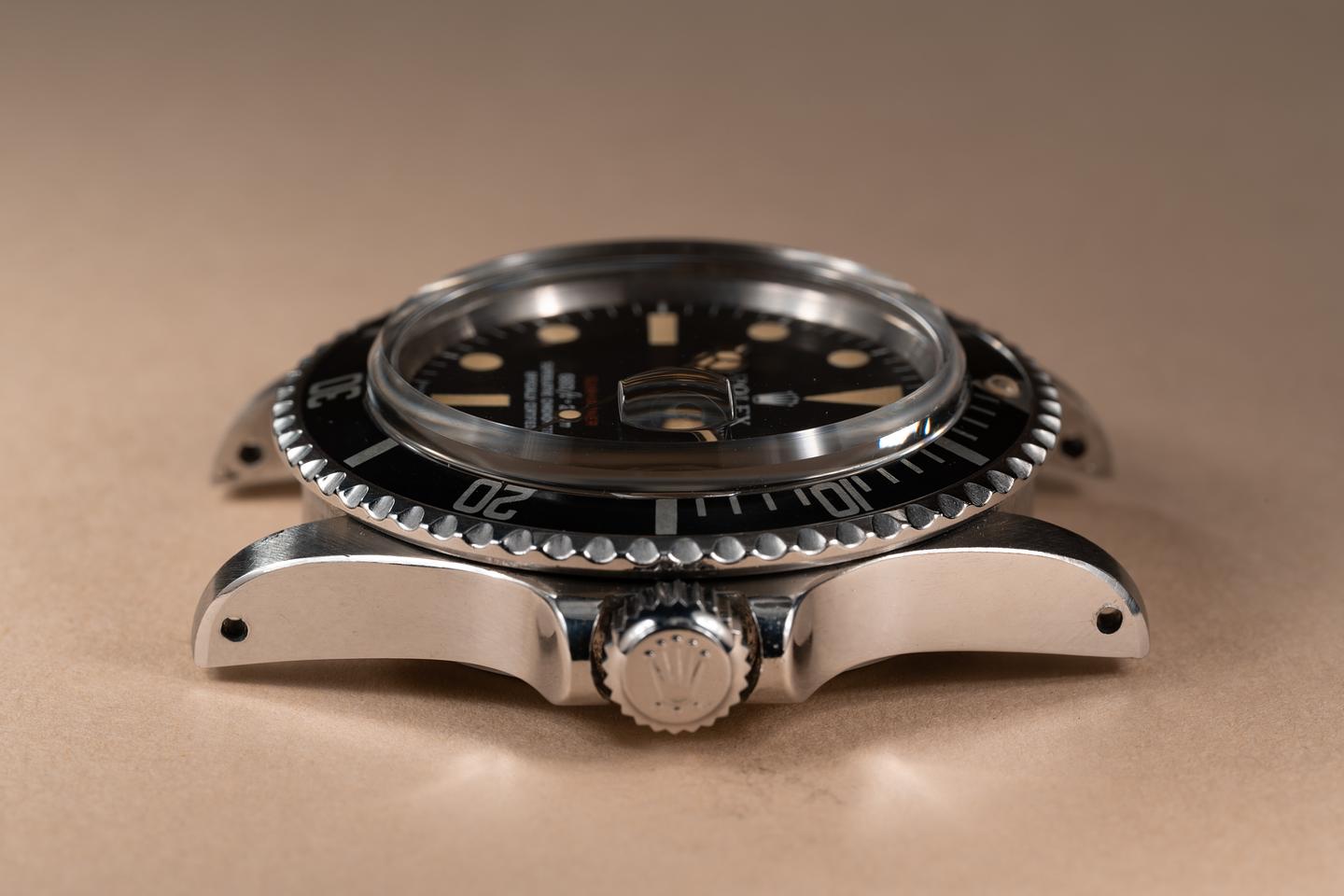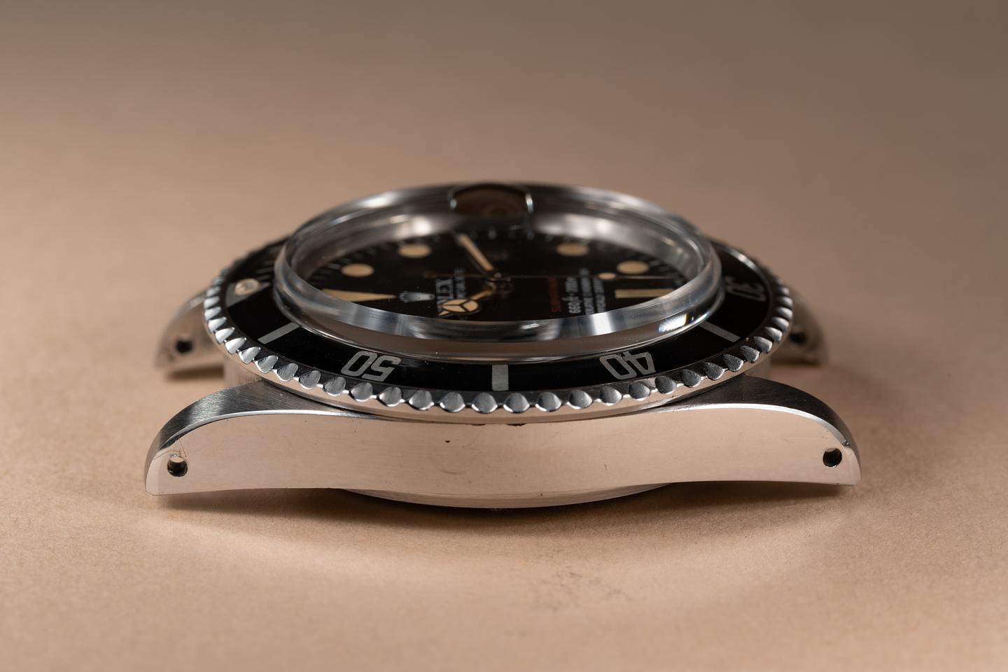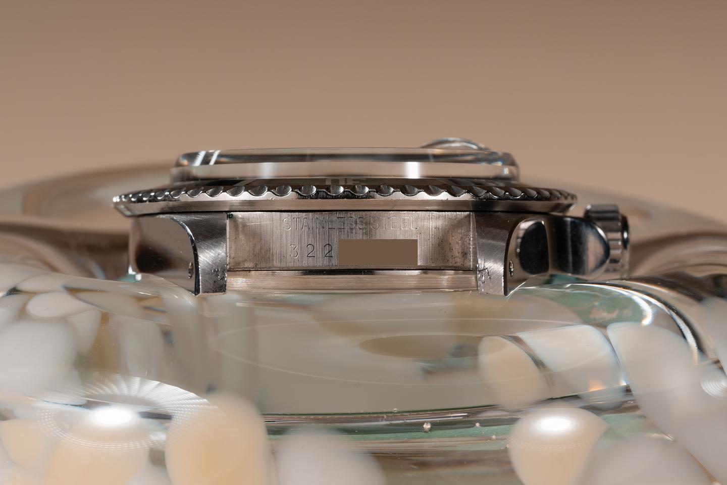 Case: The excellent case has been polished in the past showing wide, sharp, prominent bevels and some light wear from use. The black fat font bezel insert is also in excellent condition showing only very light wear from use.