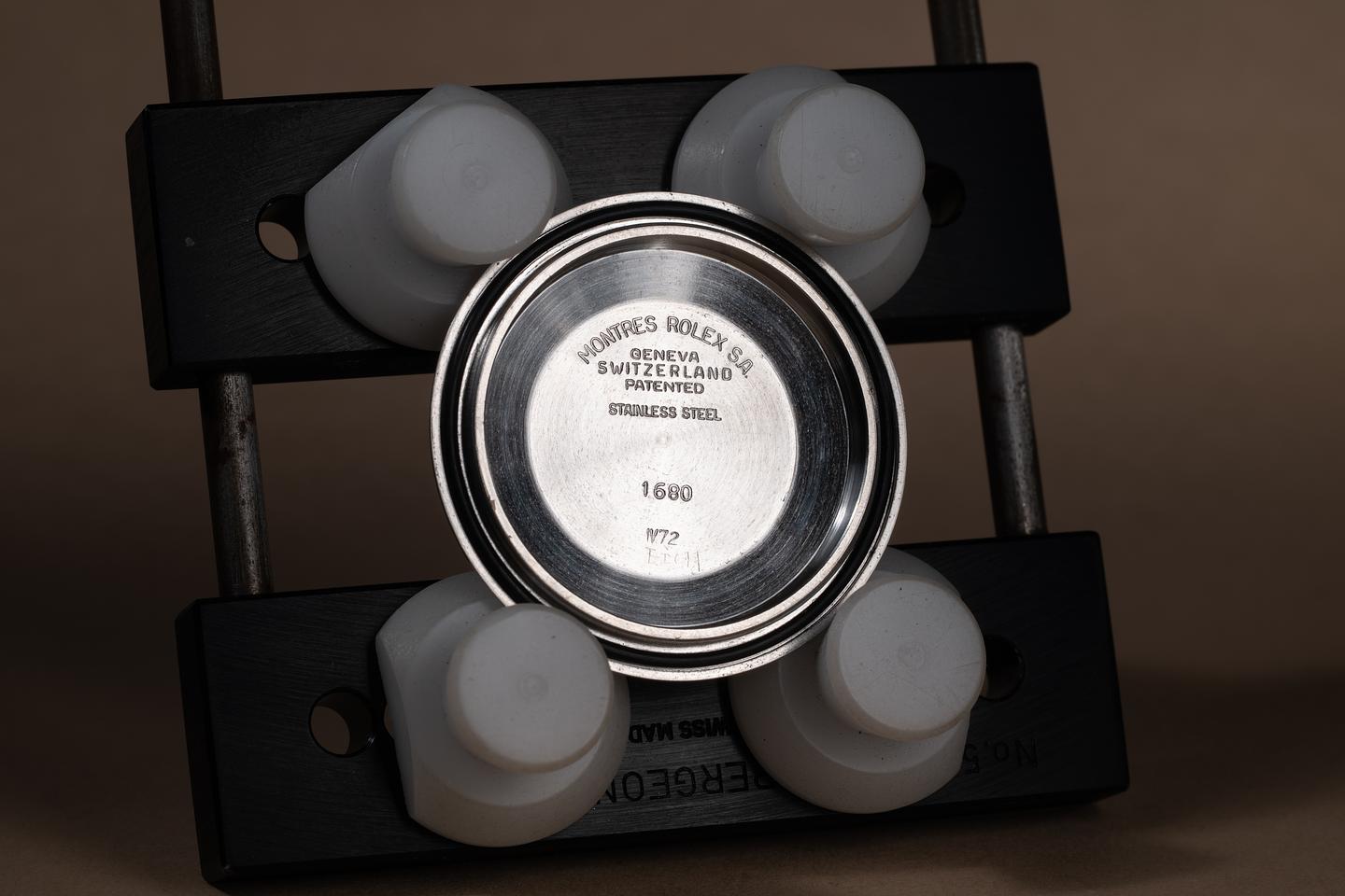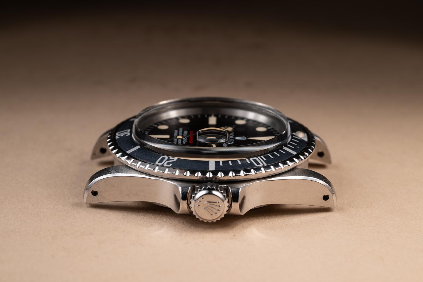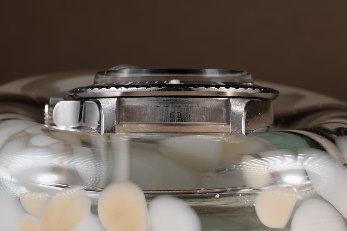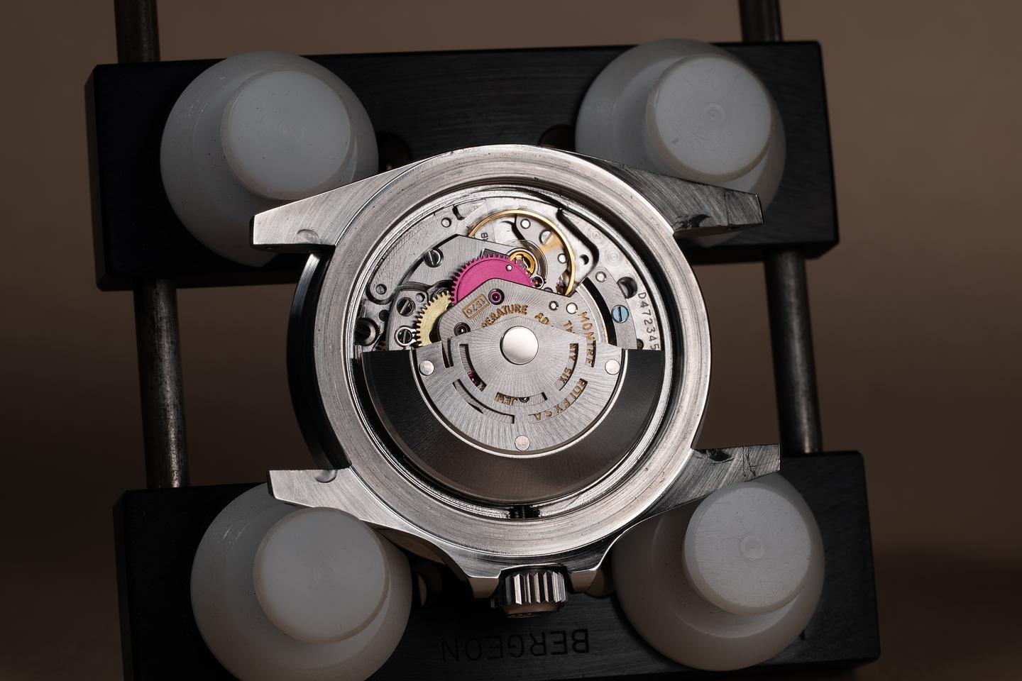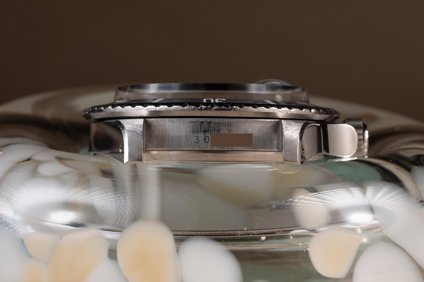 Case: The recently polished case is excellent, showing sharp prominent bevels and only very light wear. The bezel insert is also excellent, and has faded to a silvery blue/grey hue, and only light wear from use.