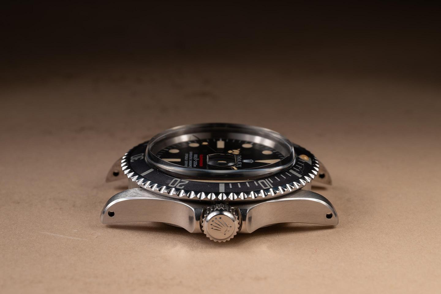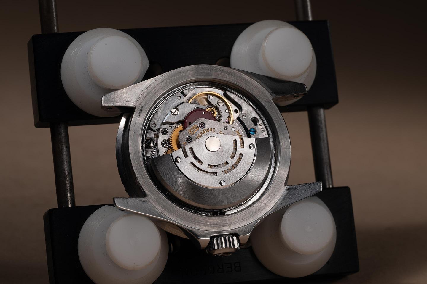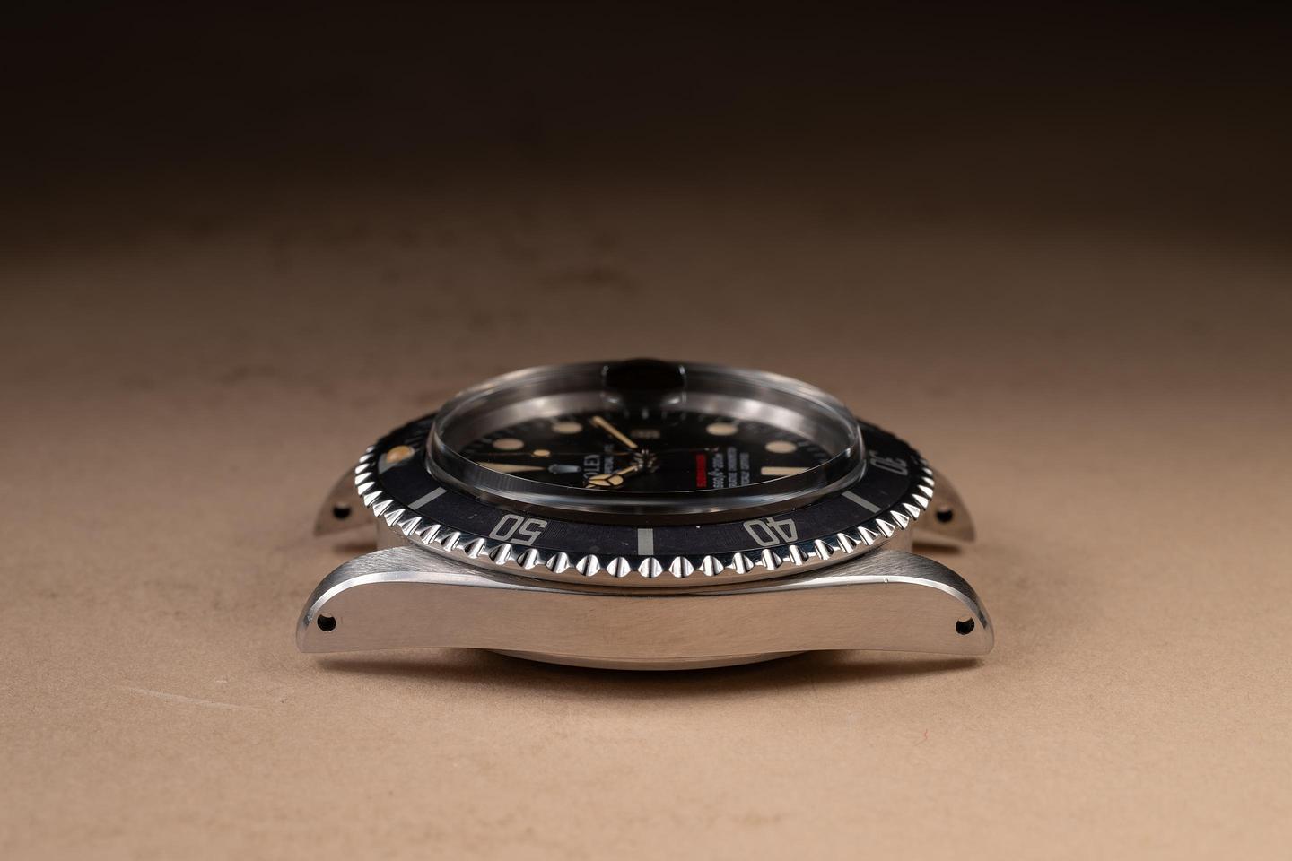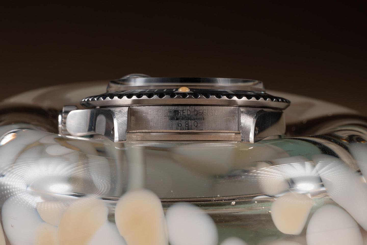 Case: The previously polished case is very good, showing wide, sharp, prominent bevels and only light wear from use. The bezel insert is in excellent condition and has aged to a silvery grey tone, showing only light wear from use.