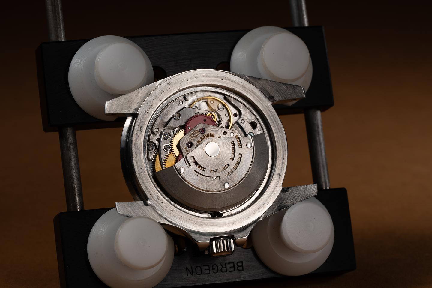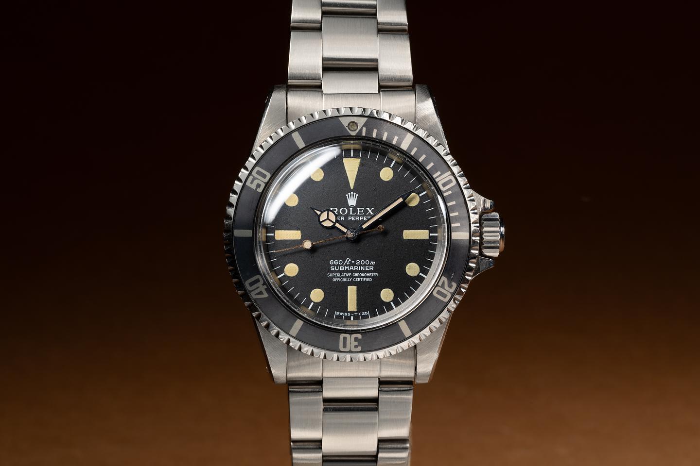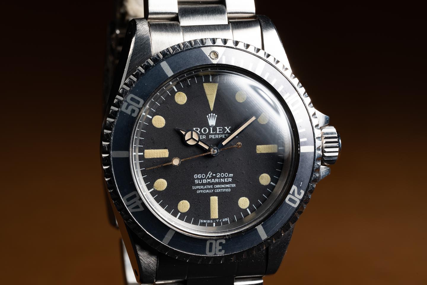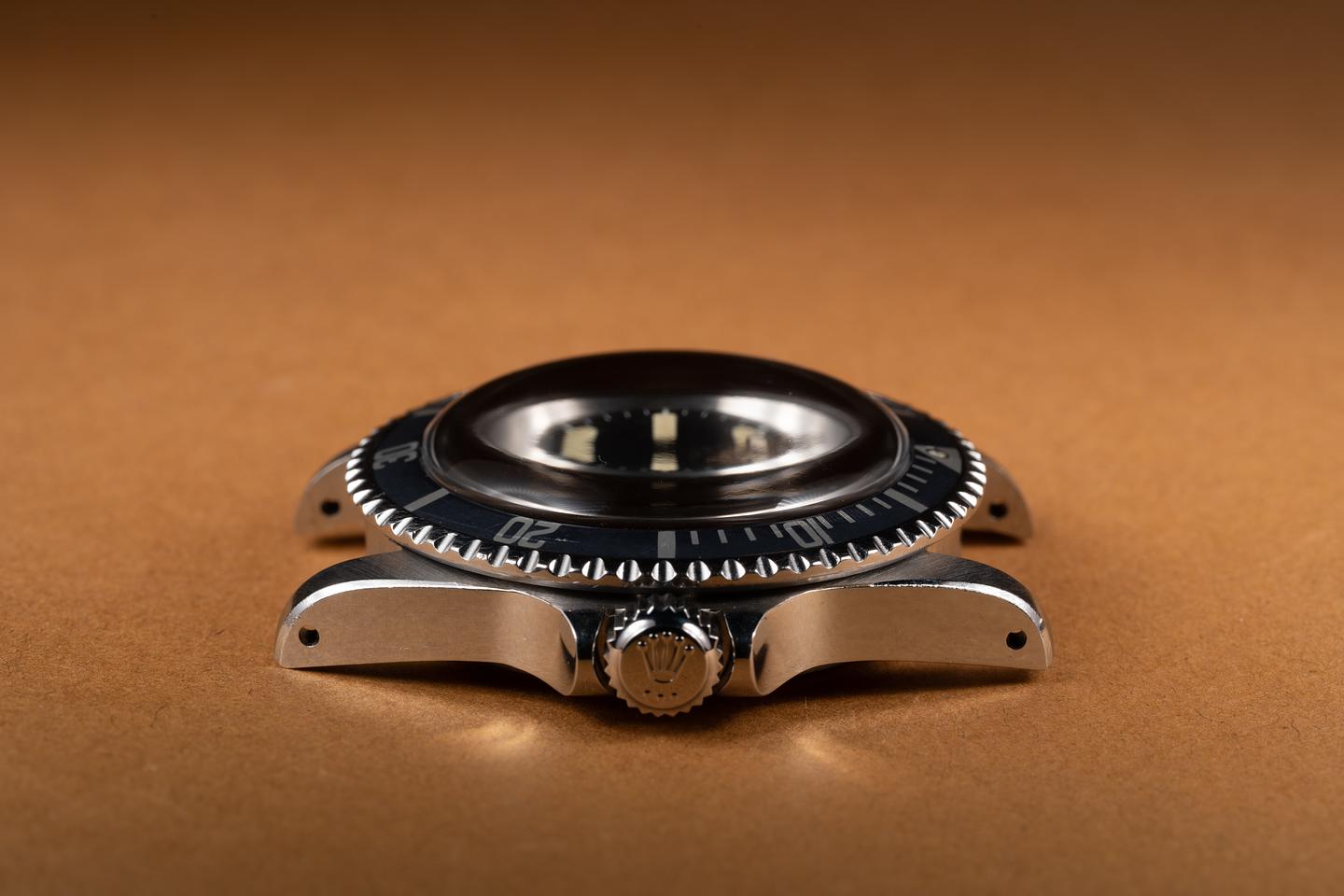 Case: The recently polished case is excellent showing sharp prominent bevels and only light wear from use. The fat font kissing 40 bezel insert is also in excellent condition and has faded to a medium silvery grey tone.