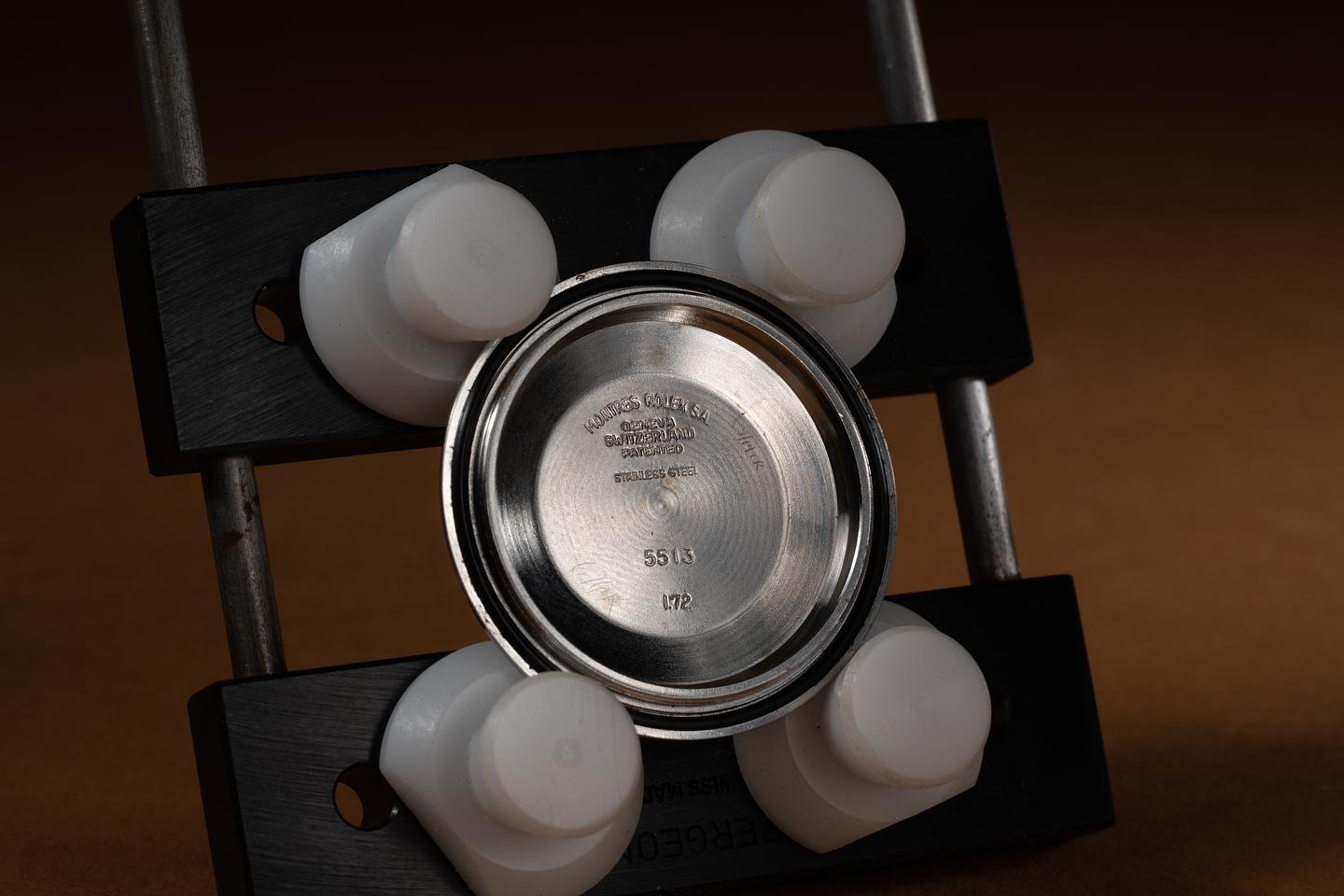 Dial: The matte black 4 line dial is excellent showing a subtle speckling patina across its surface. The lume has aged to a warm creamy hue and the hands have been relumed to match the tone of the dial.