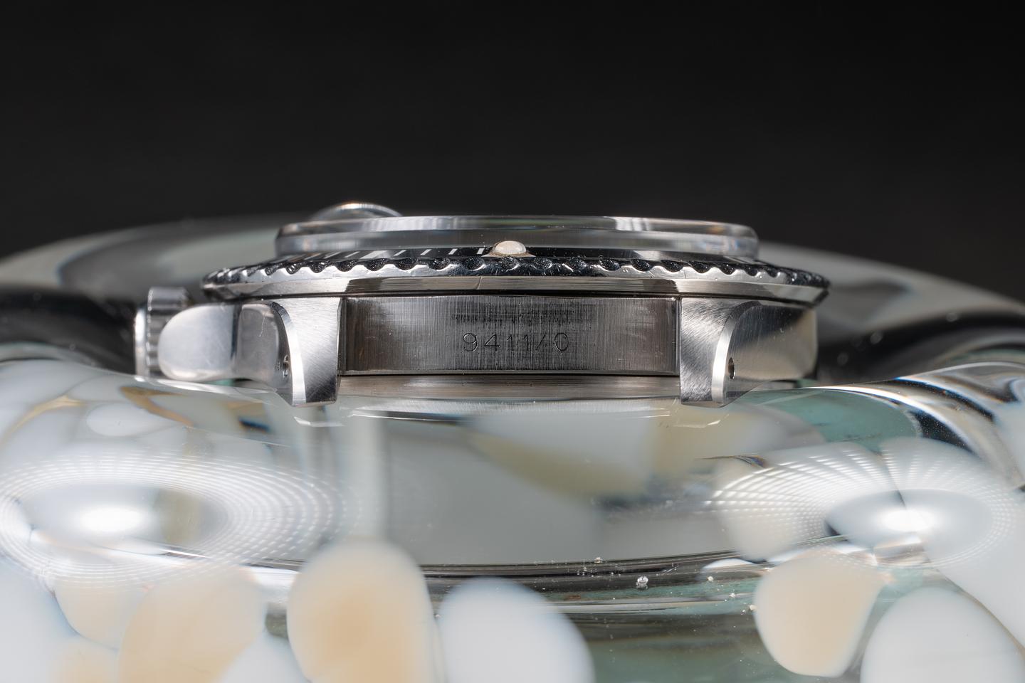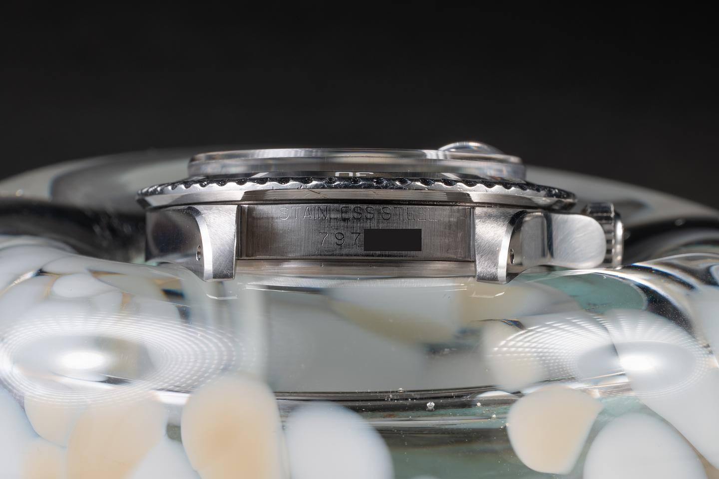 Case: The case is excellent showing sharp prominent bevels and only very light wear from use. The black bezel insert is also in excellent condition showing some light wear.