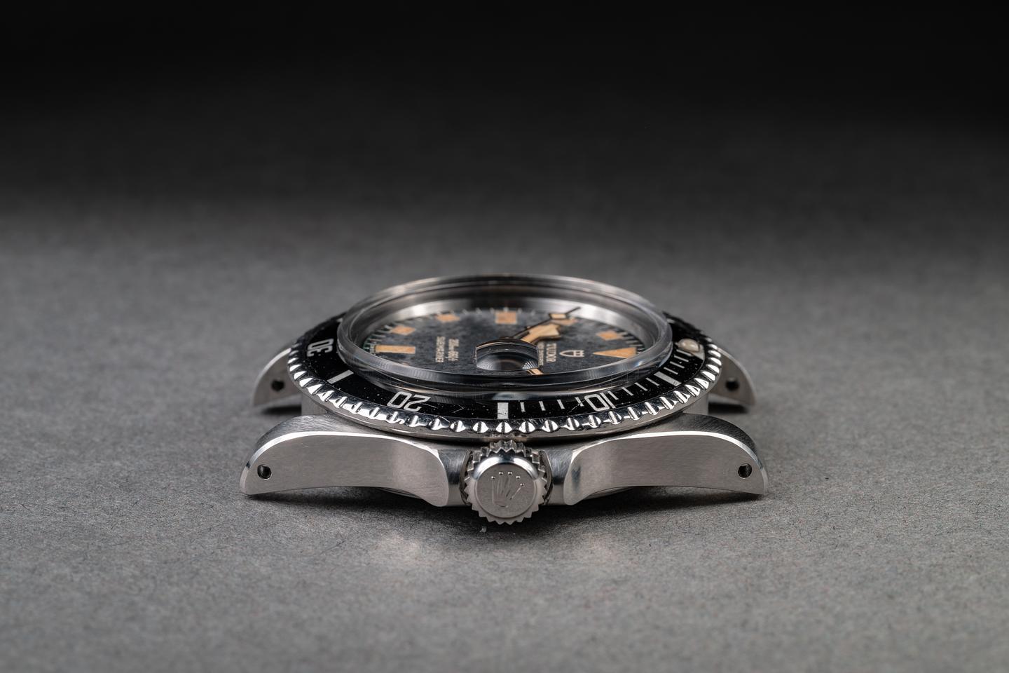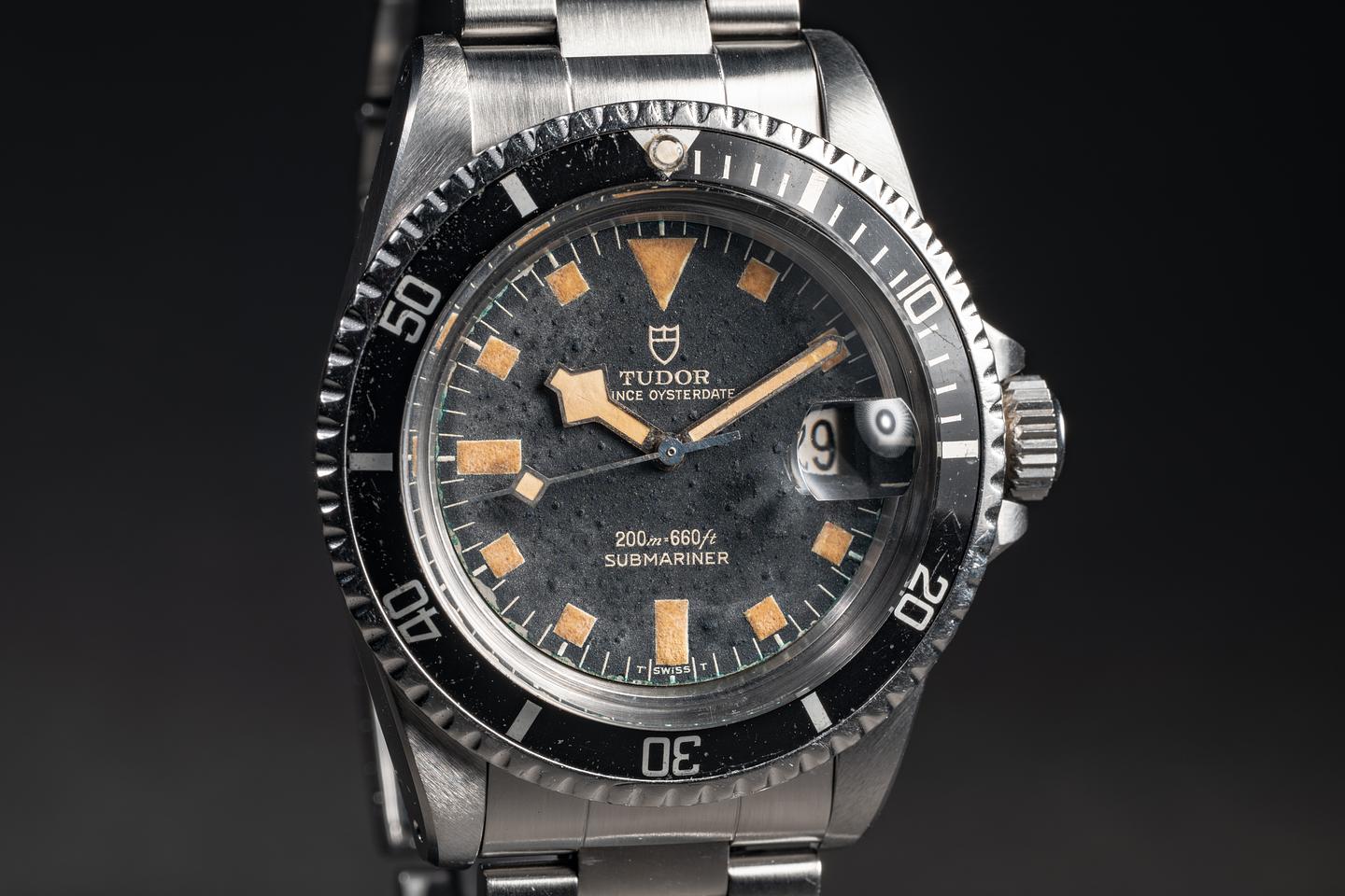 Dial: The the dial is worn and showing an extensive textured patina typical of Tudors from this era and some additional wear around the edge of the dial. The lume has age to a vibrant amber hue and the snowflake hands have aged several shades lighter than the dial.