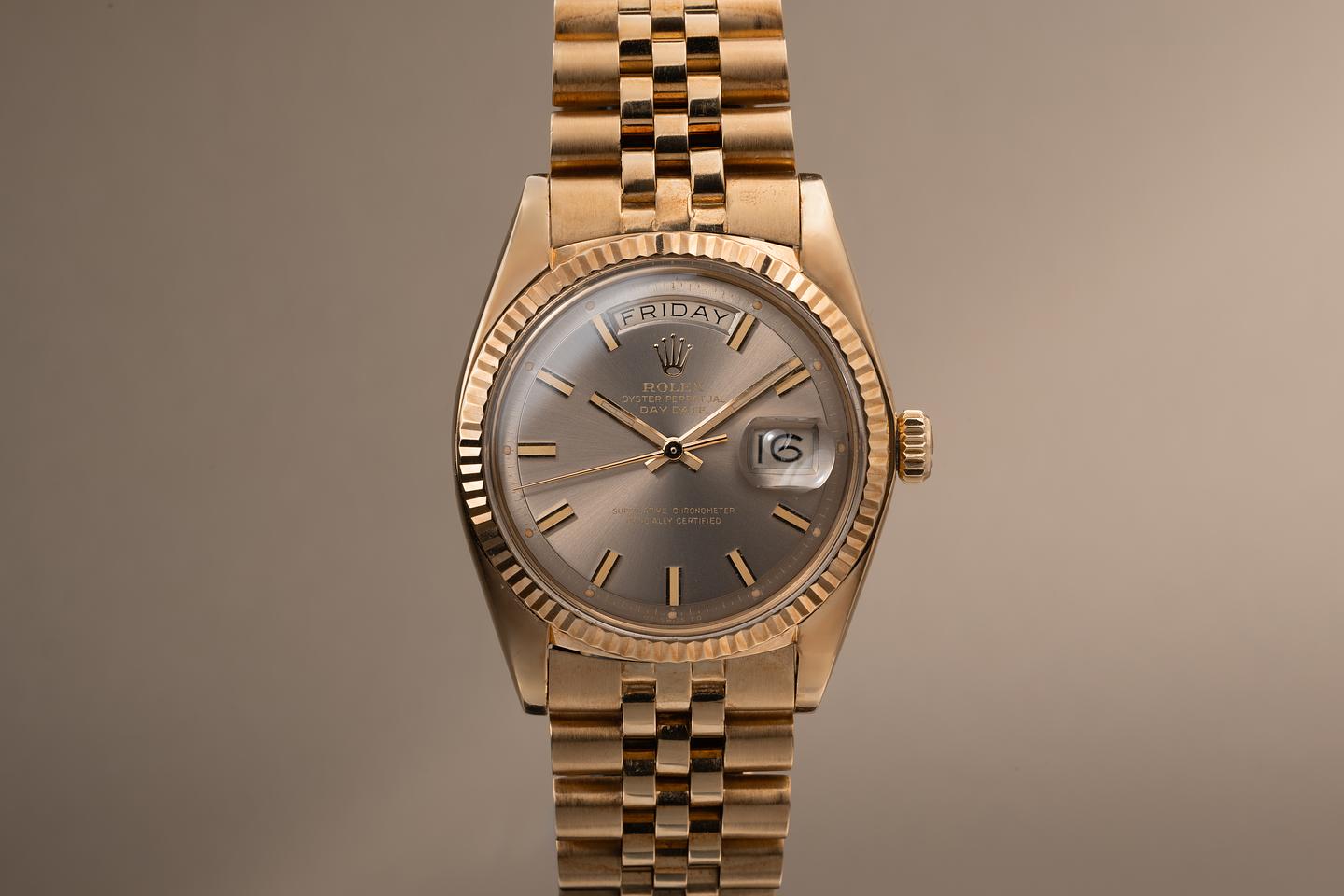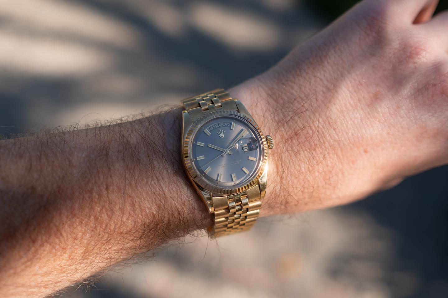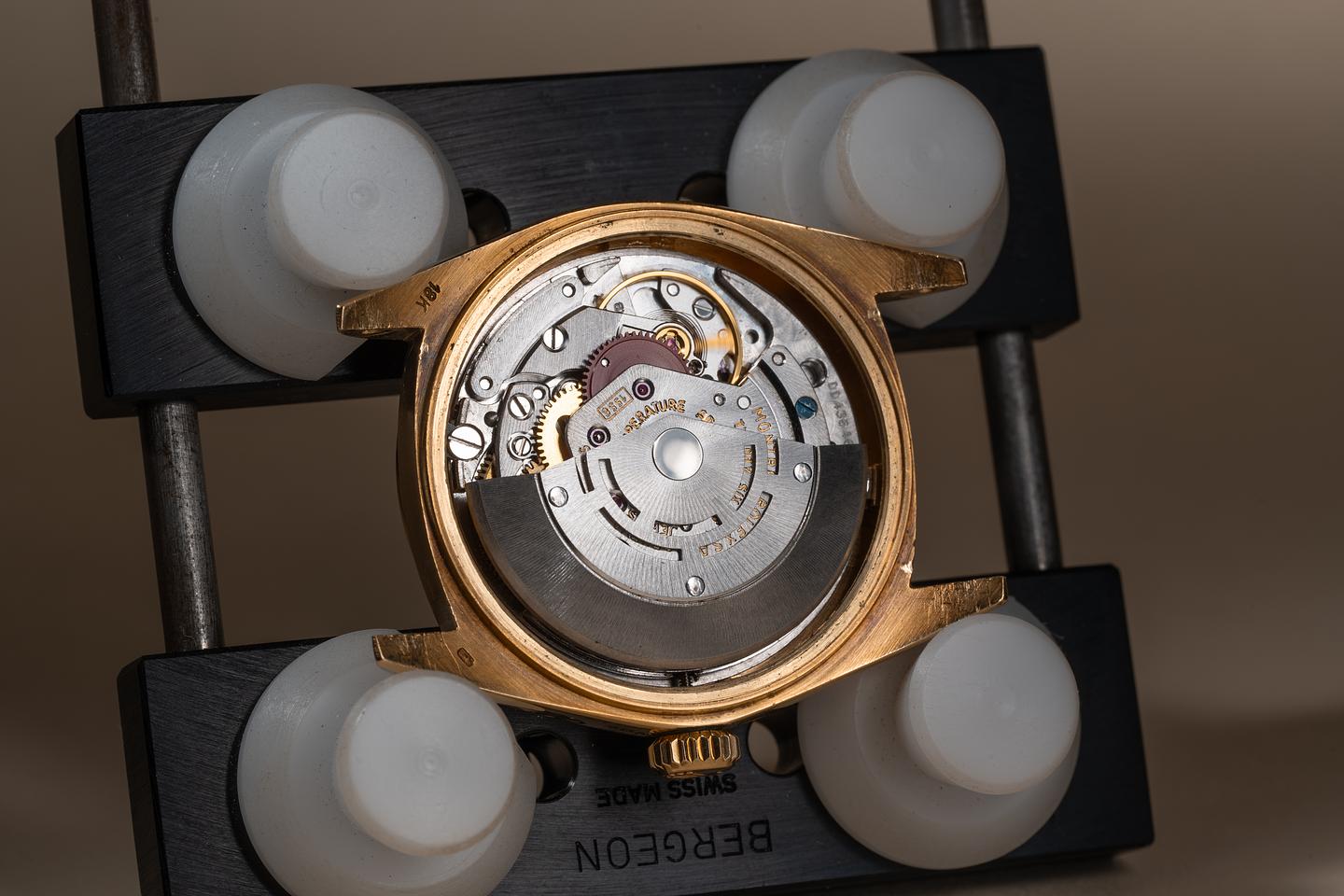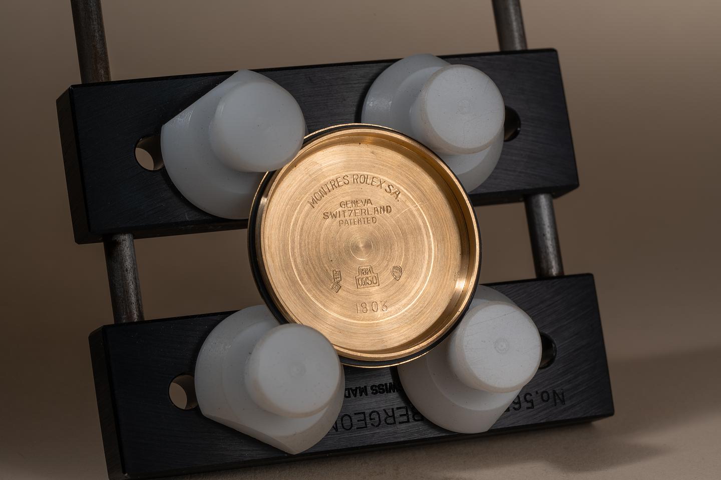 Bracelet: The 18 link 18K yellow gold jubilee bracelet is excellent showing only very light stretch for its age. The clasp is stamped with a 1970 date code. The bracelet will fit between a (14.6 cm / 5.7") to a (17.3 cm / 6.8" wrist).
