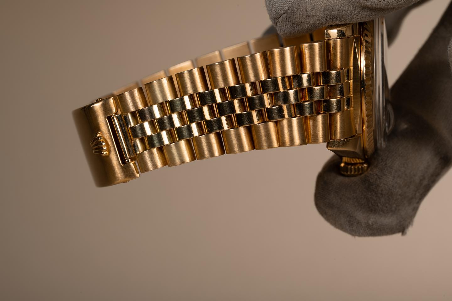 Case: The 18k yellow gold case is in excellent condition The case has a bright sleeve polished finish from use. The sharp 18k yellow gold fluted bezel is also in excellent condition showing only light wear from use.
