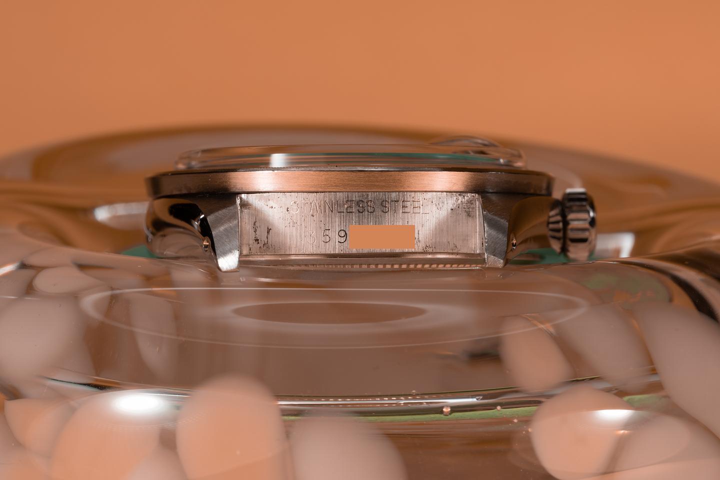 Case: The 34mm case is excellent showing average wear from use. The stainless engine turned bezel is also in excellent condition showing only light wear from use.