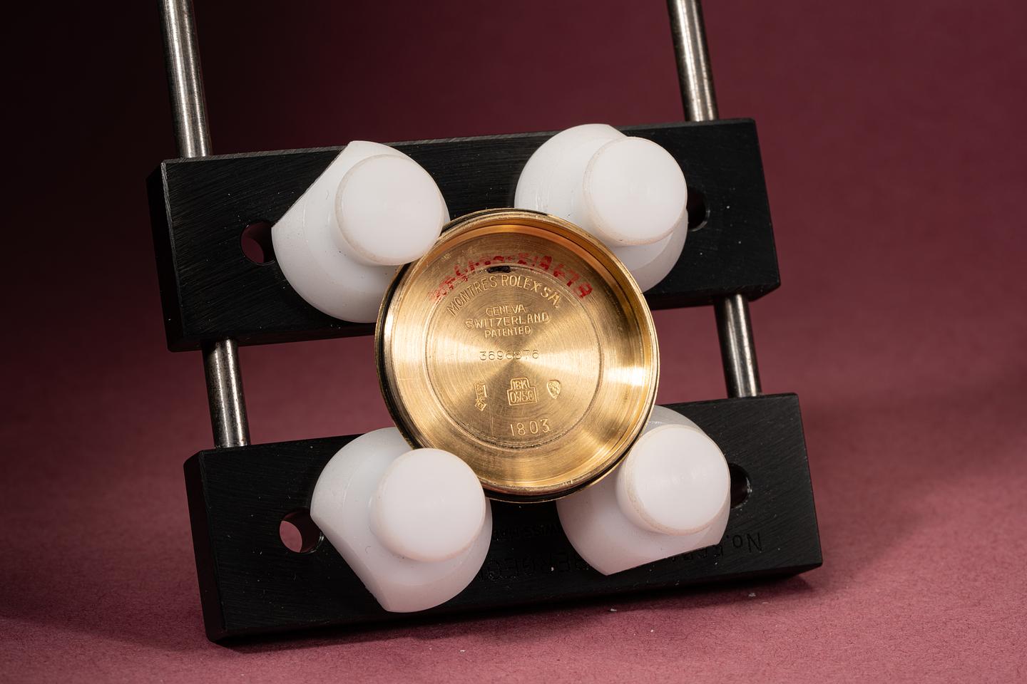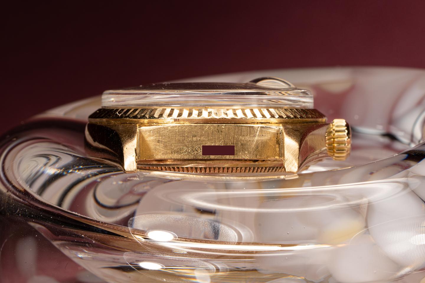 Case: Excellent 18k yellow gold case that shows some light wear from use. The sharp 18k fluted is also in excellent condition.