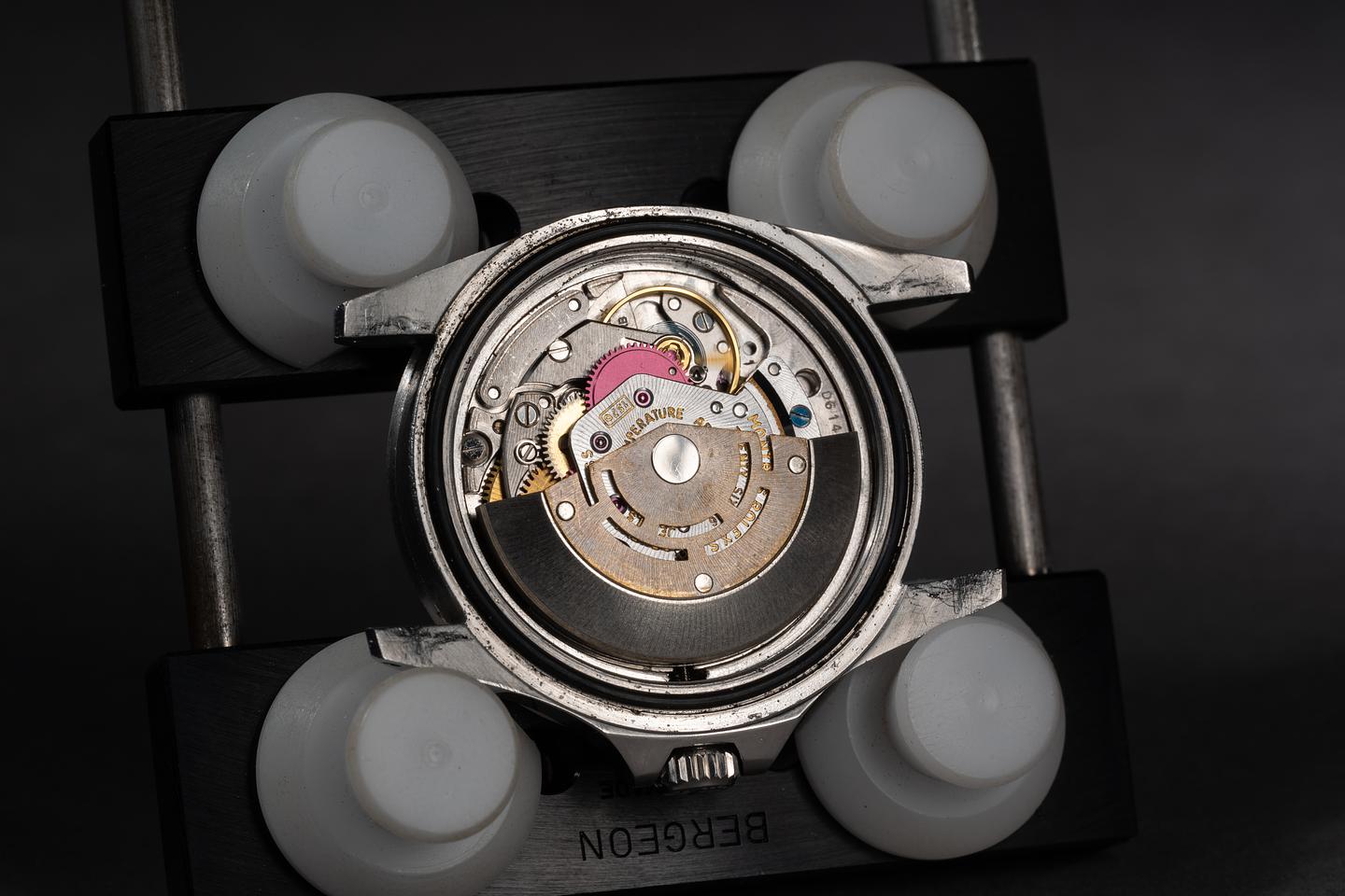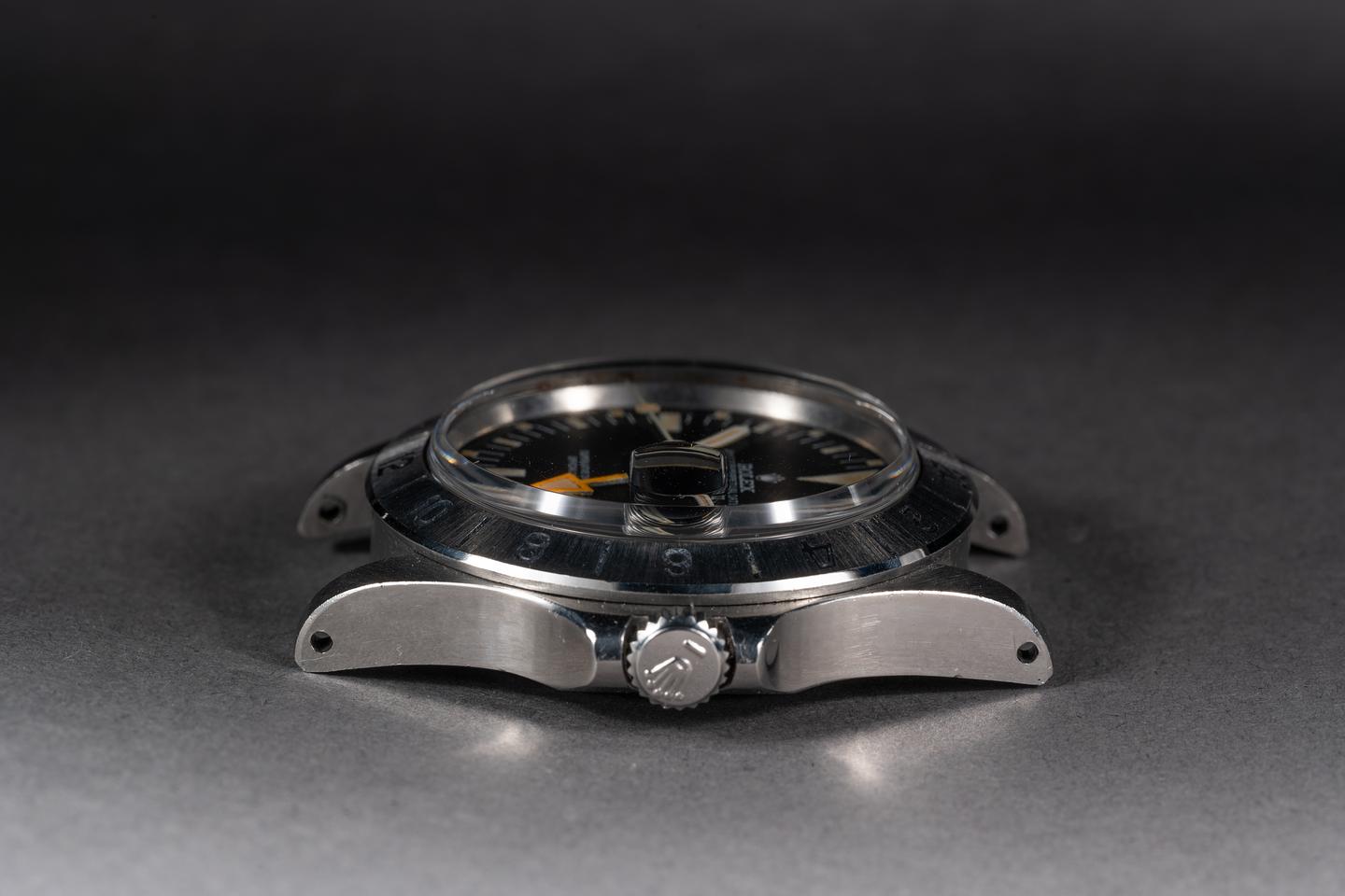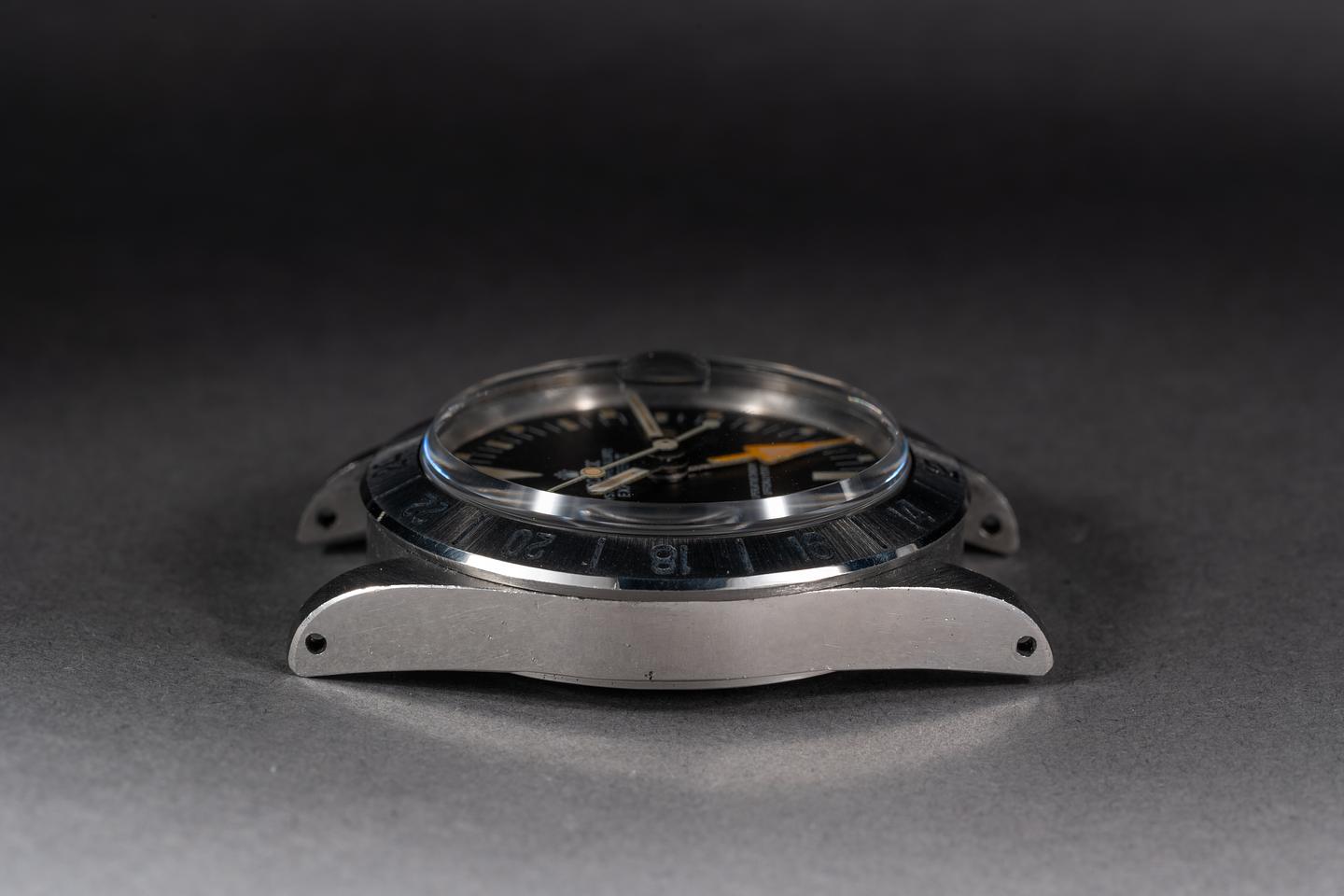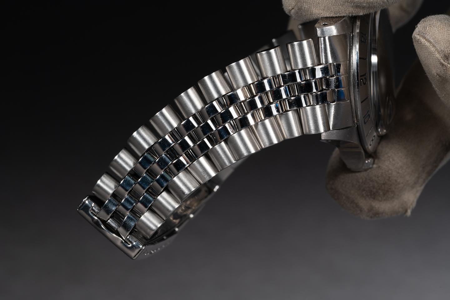 Case: The recently polished case is excellent showing sharp prominent bevels and only light wear from use. The bezel insert is also in excellent condition showing only light wear from use.