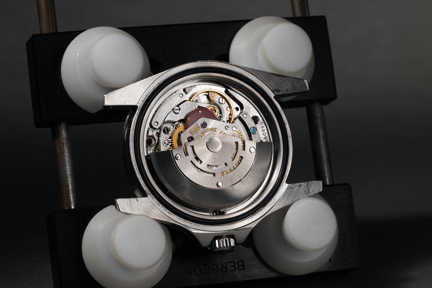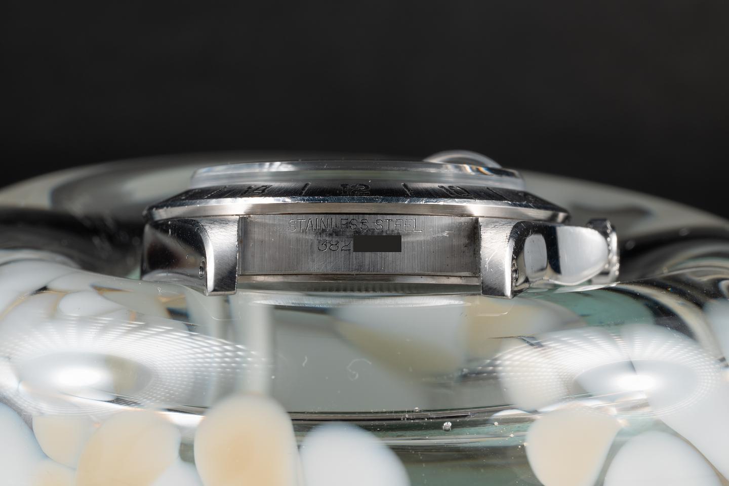 Case: The thick and even "big crown guard" case is excellent, showing prominent bevels and some light wear from use. The thick MK 2 stainless bezel is also in excellent condition, showing only light wear from use.