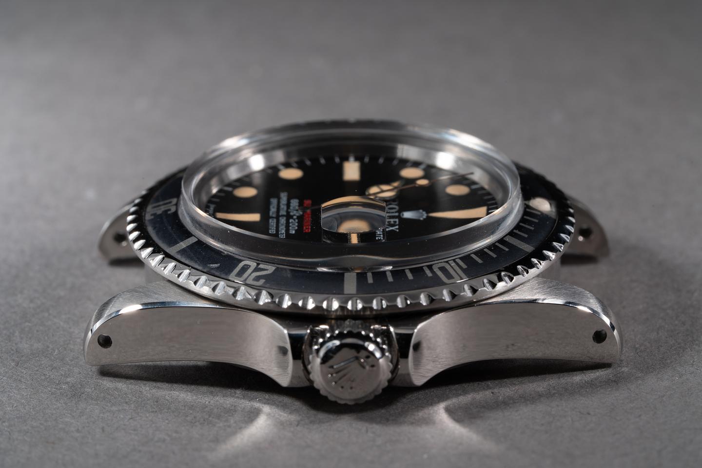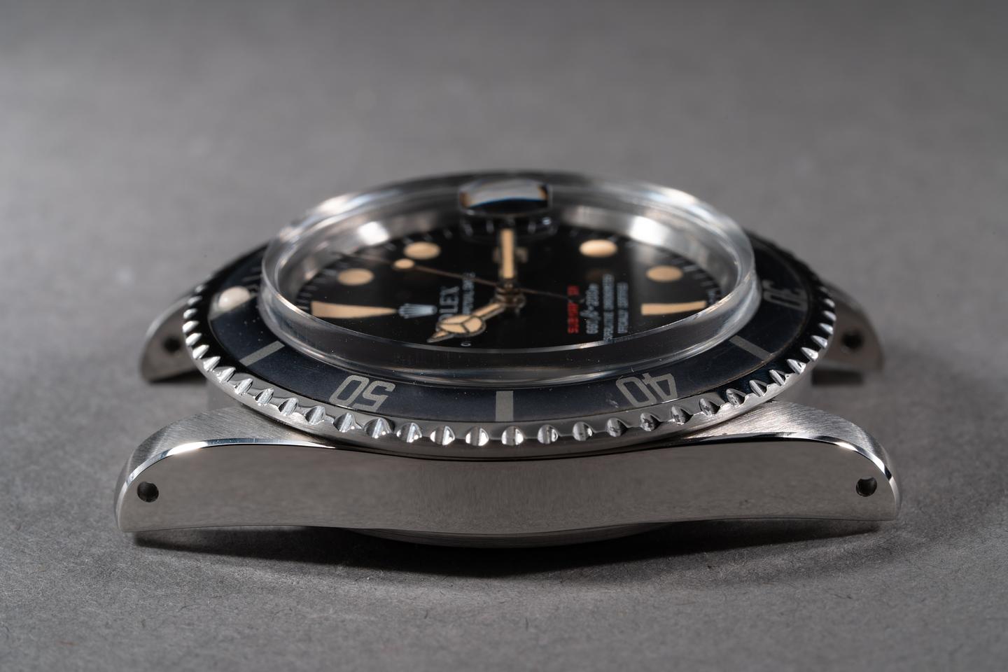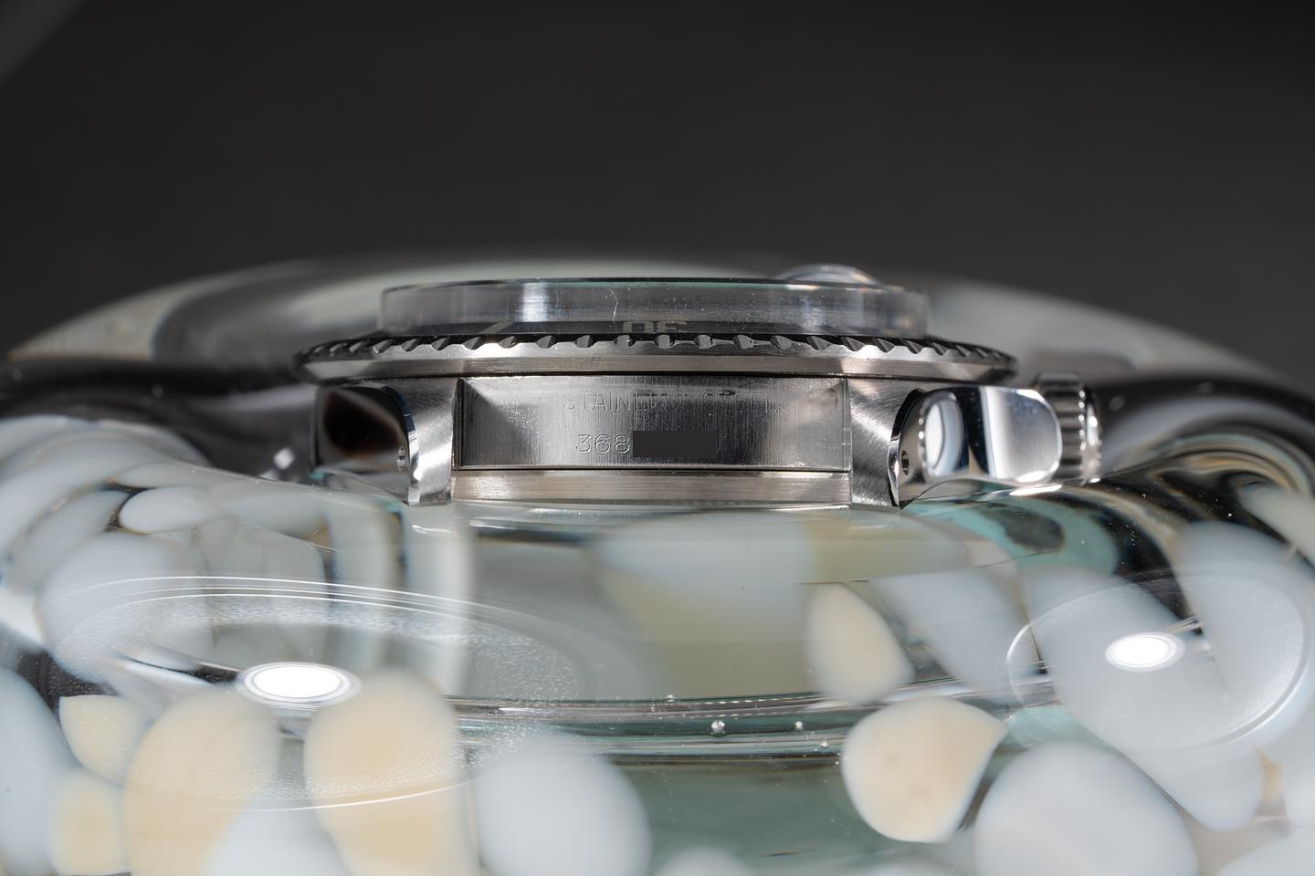 Case: The case has just returned from polishing showing sharp prominent bevels. The bezel has faded to a silvery blue-grey hue and shows only light wear from use.