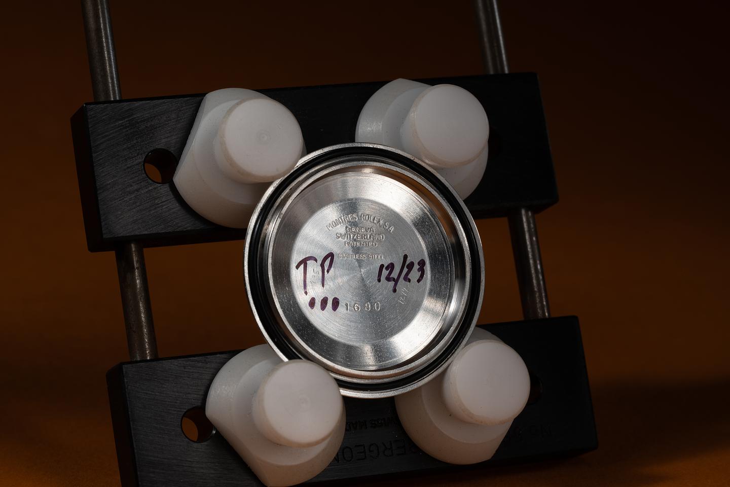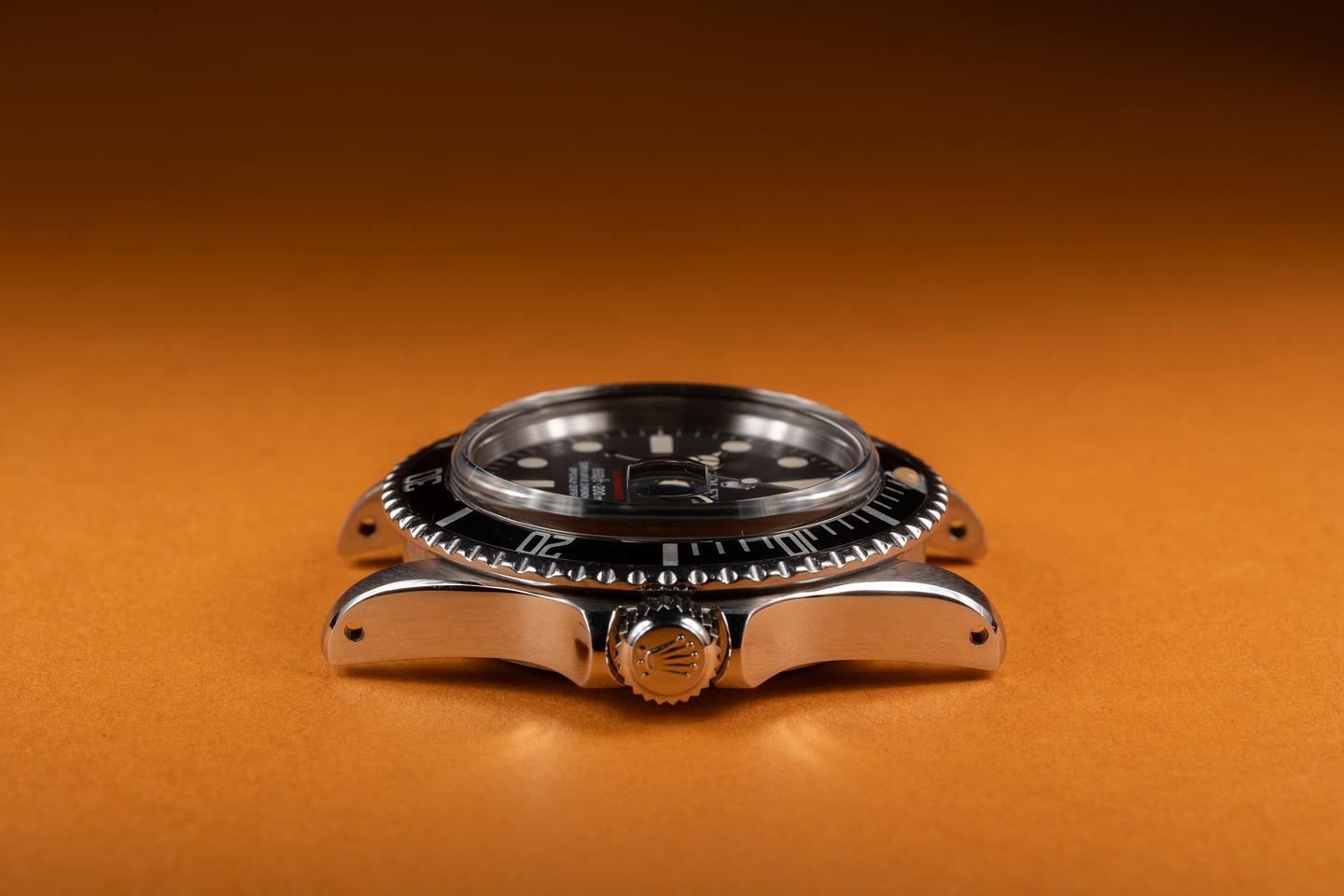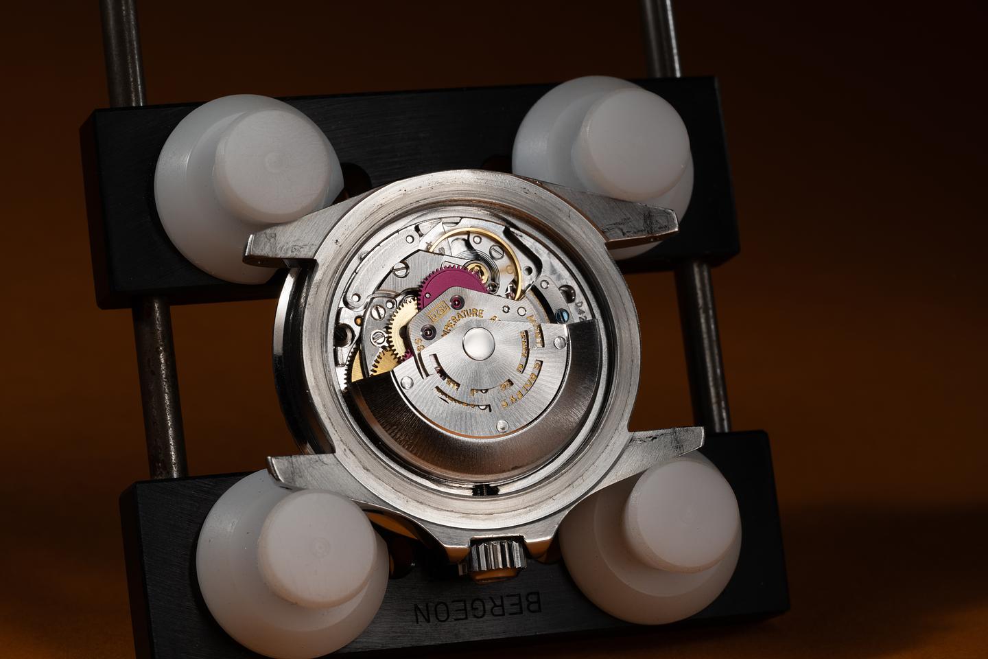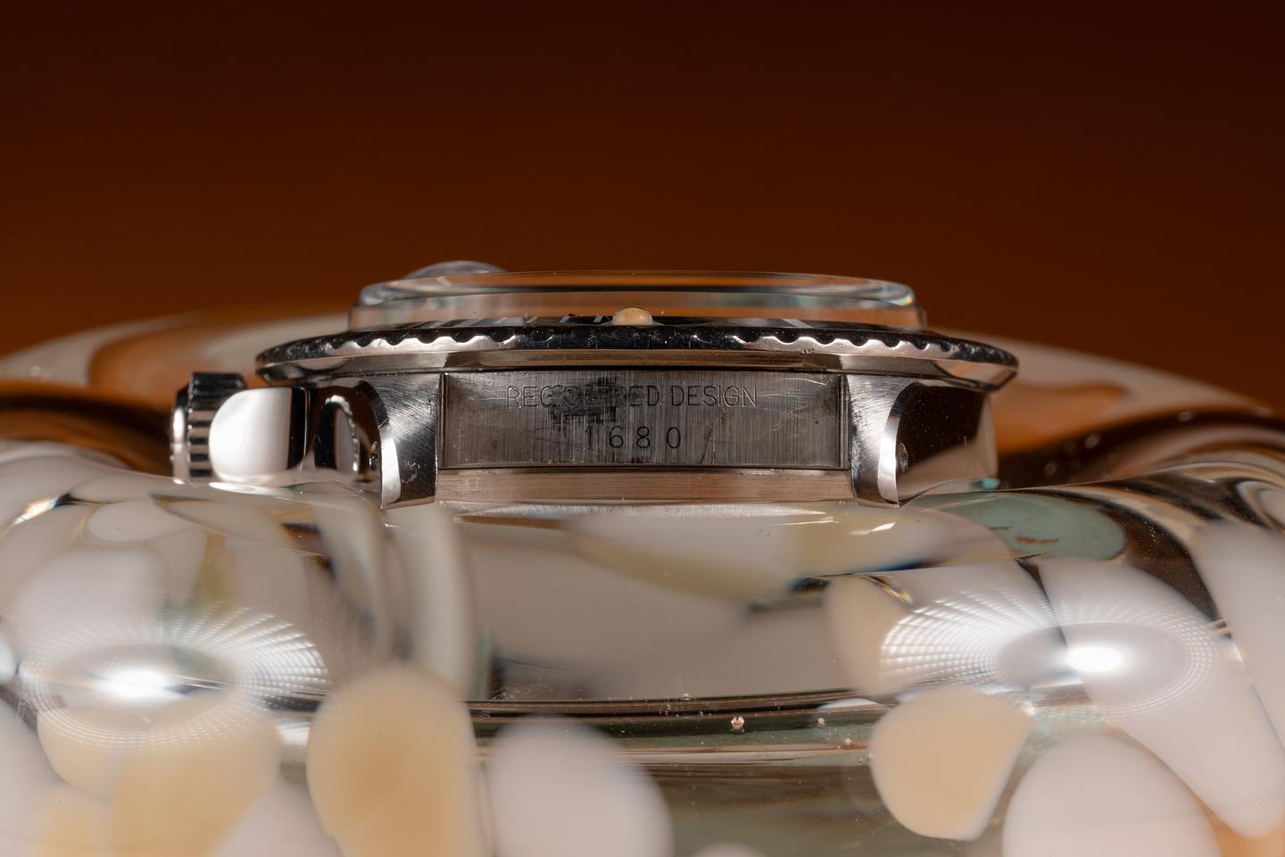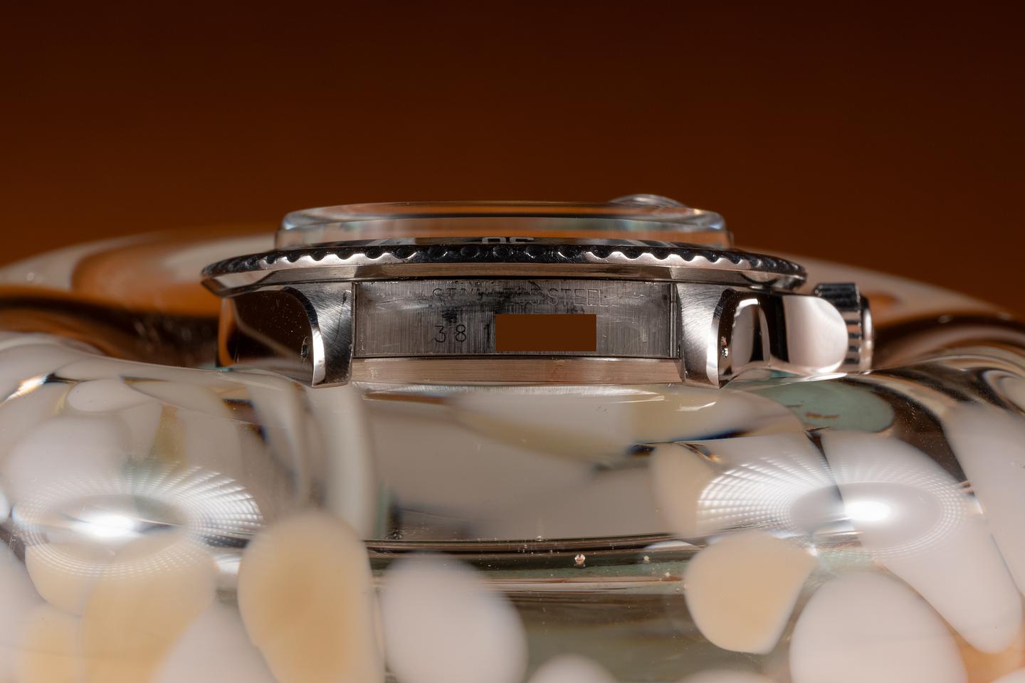 Case: The previously polished case is excellent showing sharp prominent bevels and some light wear from use. The bezel insert is also in excellent condition and has aged to a dark navy blue hue showing only light wear form use.