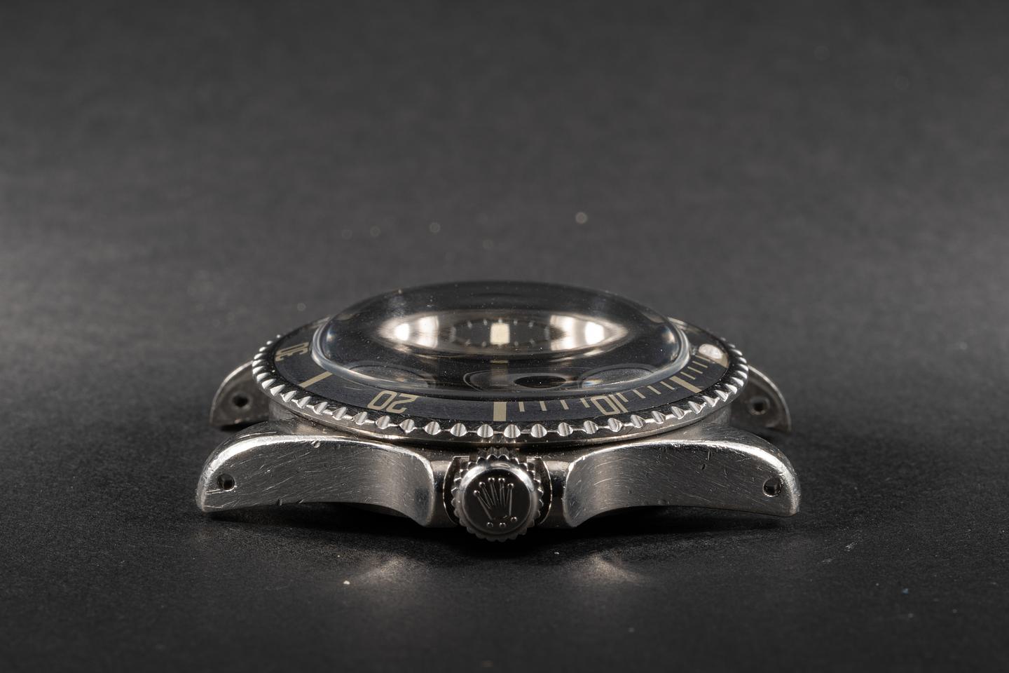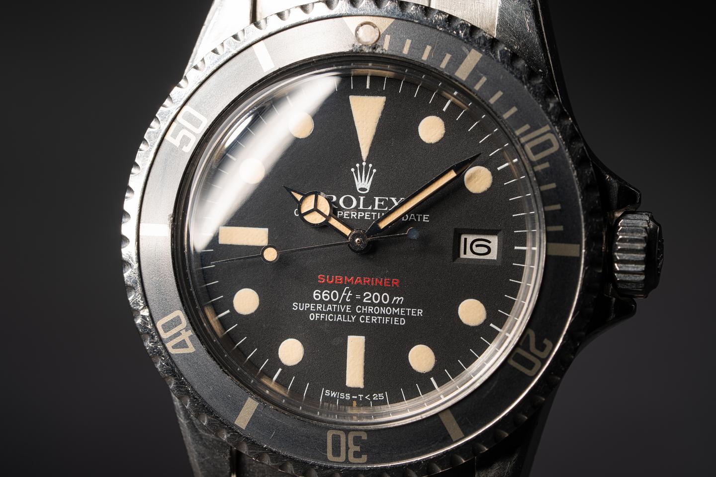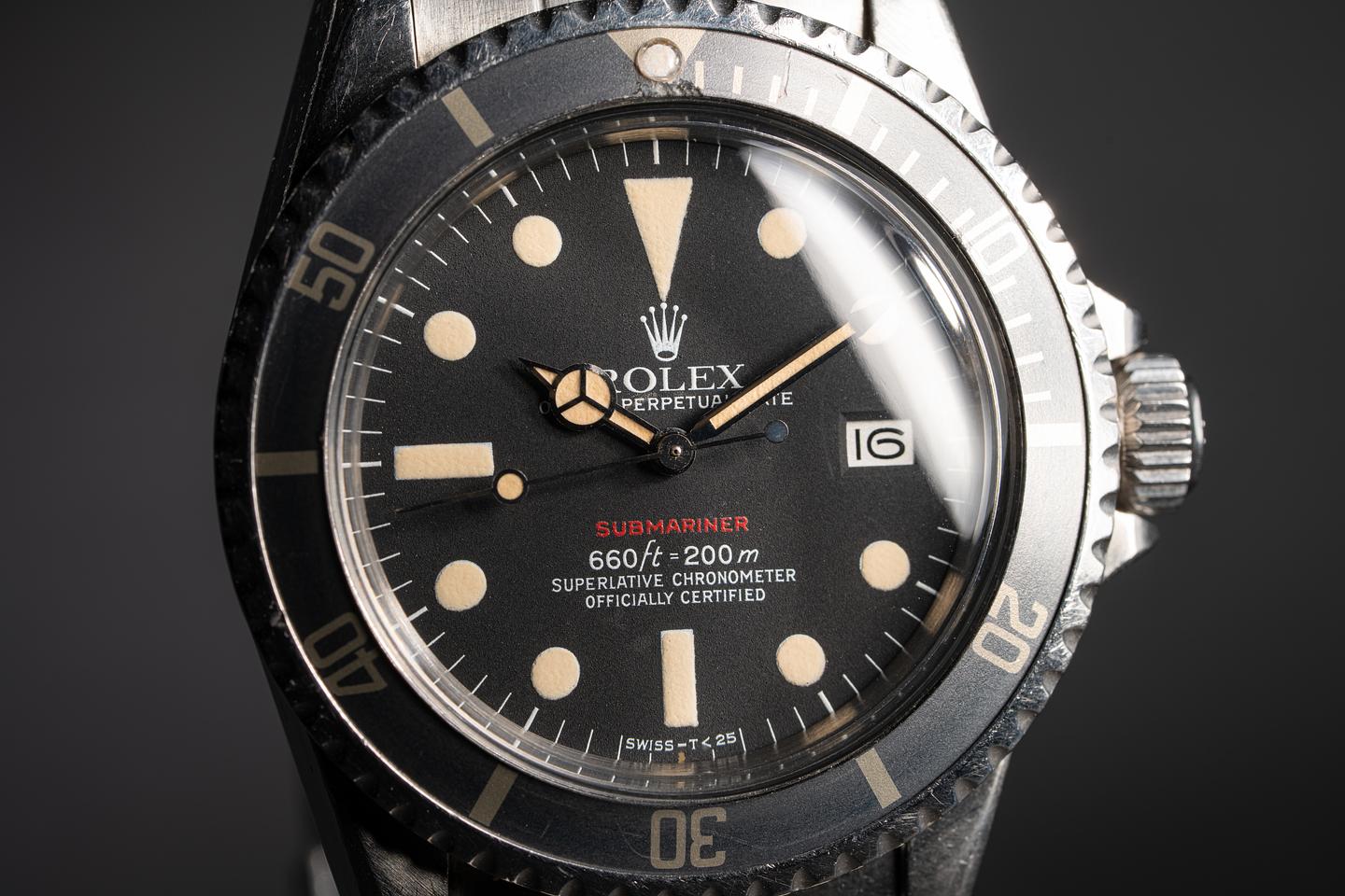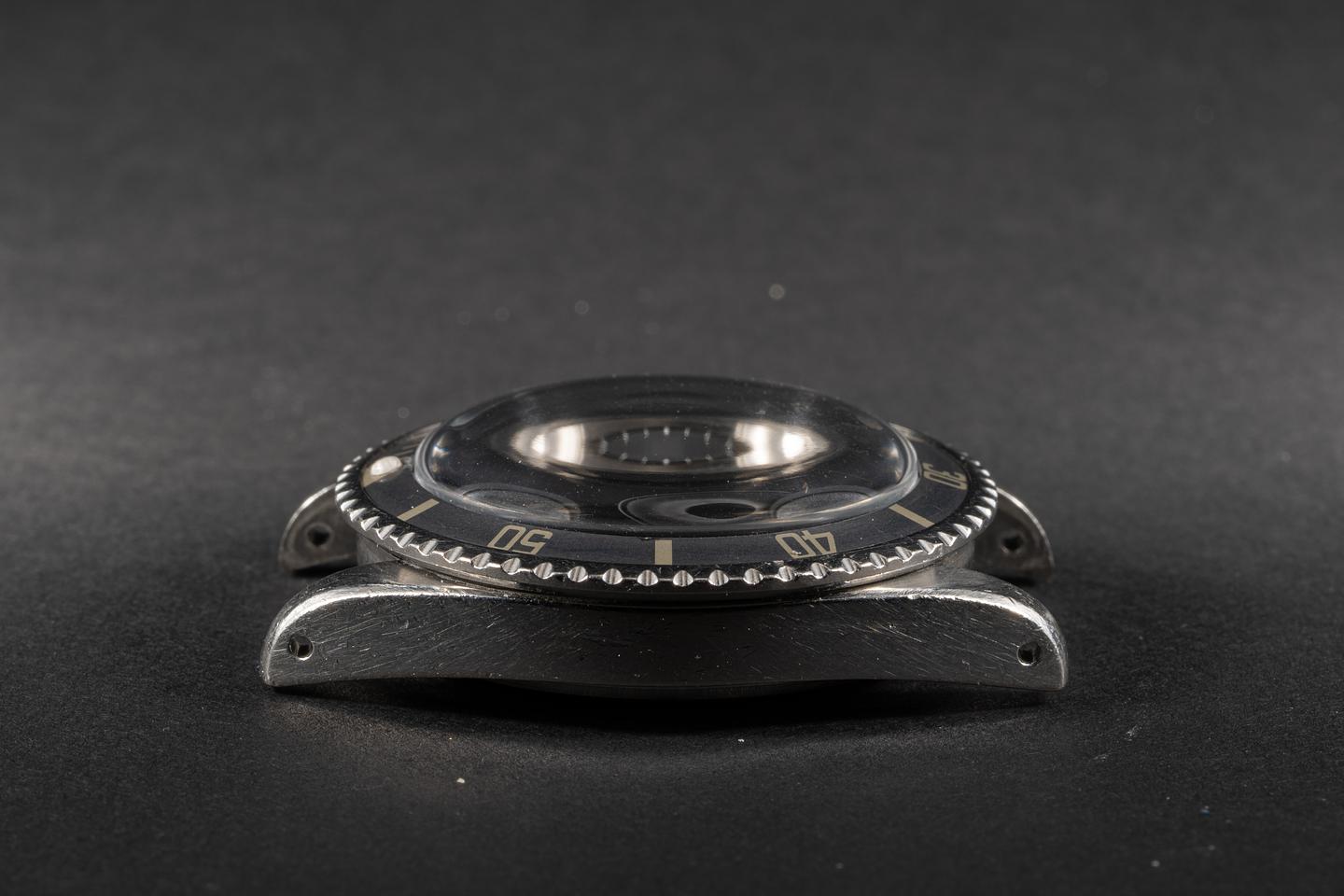 Dial: The matte black MK 6 "Red Submariner" dial is excellent showing very light wear overall. There is one very small chip just below the 6 o'clock marker at the edge of the dial. The lume has aged to a clean warm creamy hue and the hands have aged slightly lighter than the dial.