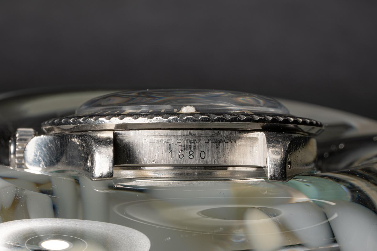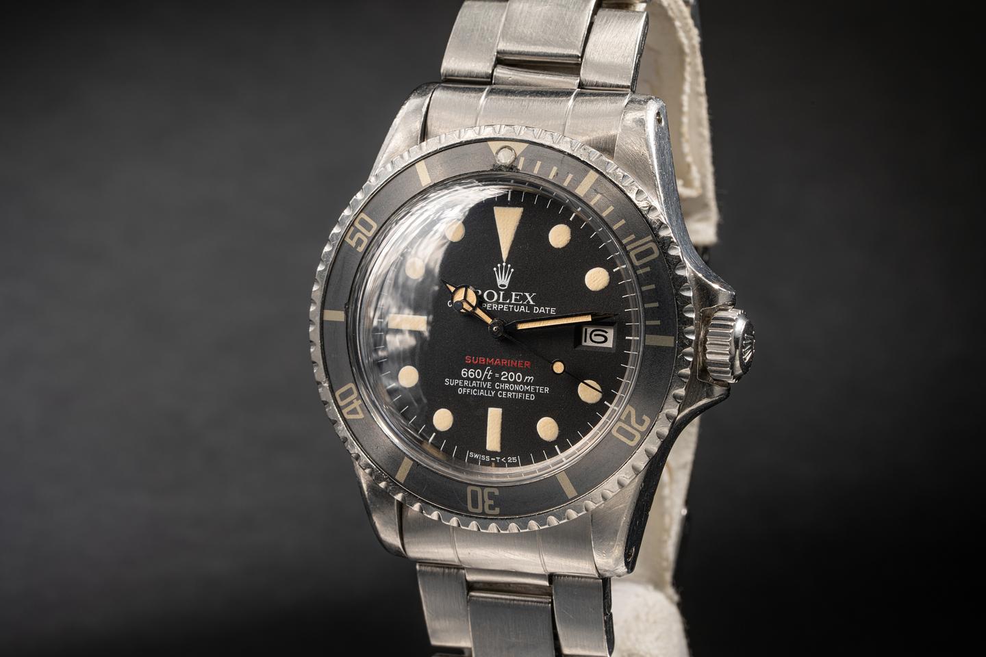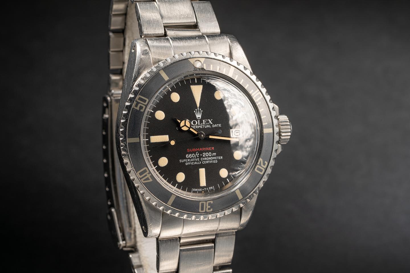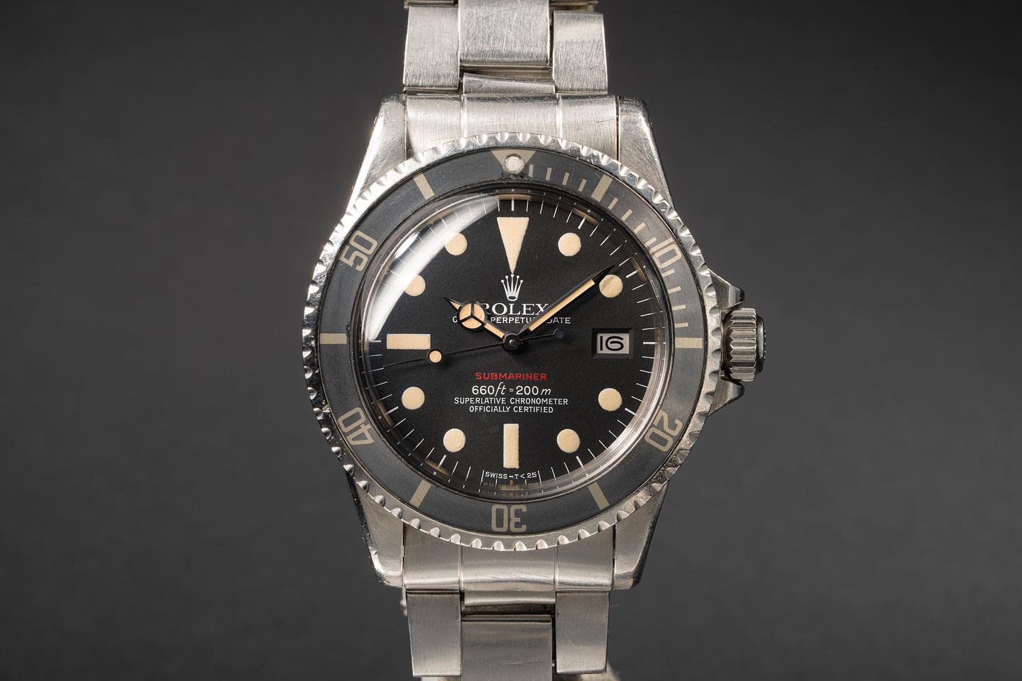 Dial: The matte black MK 6 "Red Submariner" dial is excellent showing very light wear overall. There is one very small chip just below the 6 o'clock marker at the edge of the dial. The lume has aged to a clean warm creamy hue and the hands have aged slightly lighter than the dial.