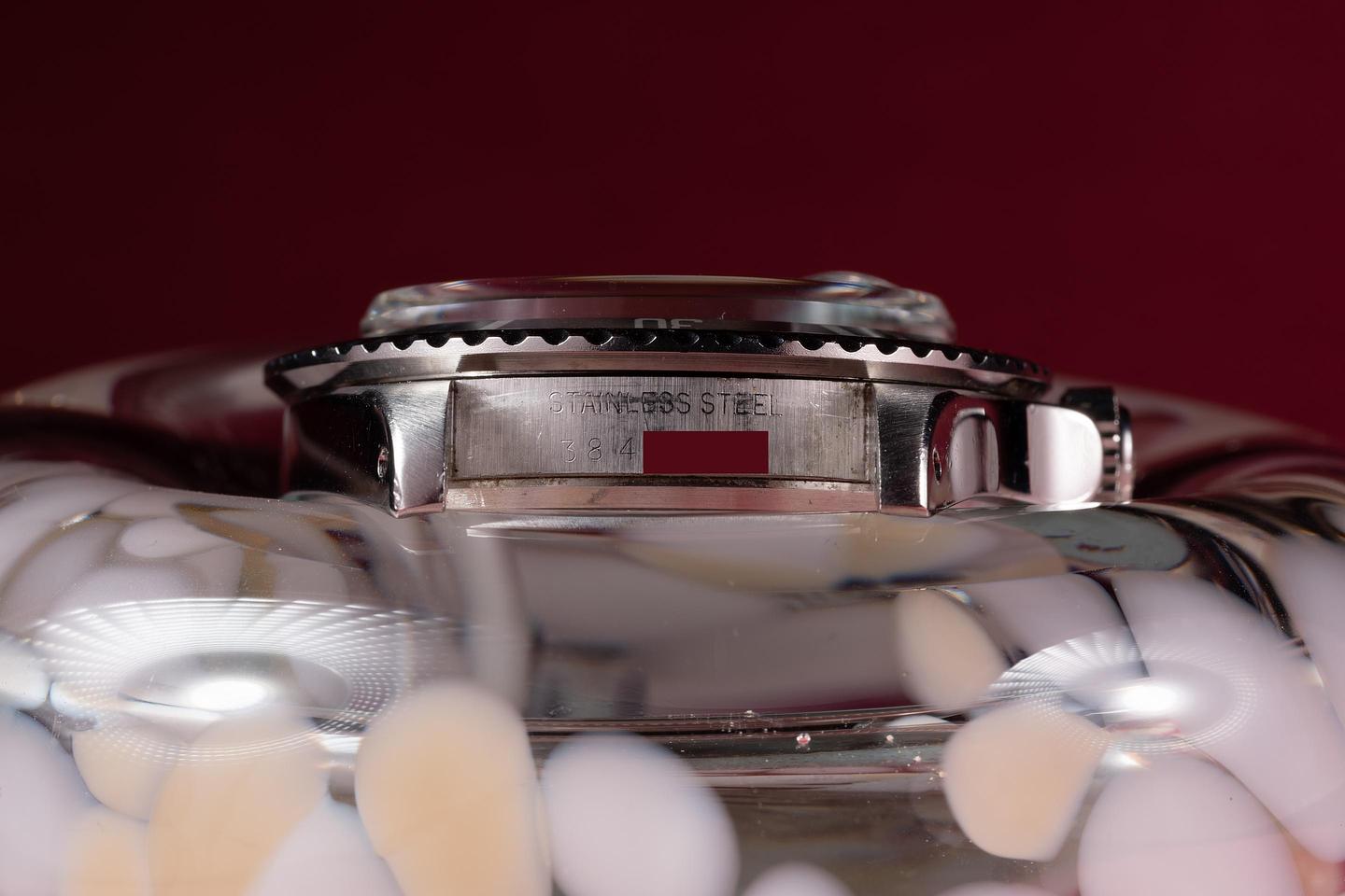Case: The previously polished case is excellent showing some light wear from use. The black bezel insert is also in excellent condition showing only light wear from use.