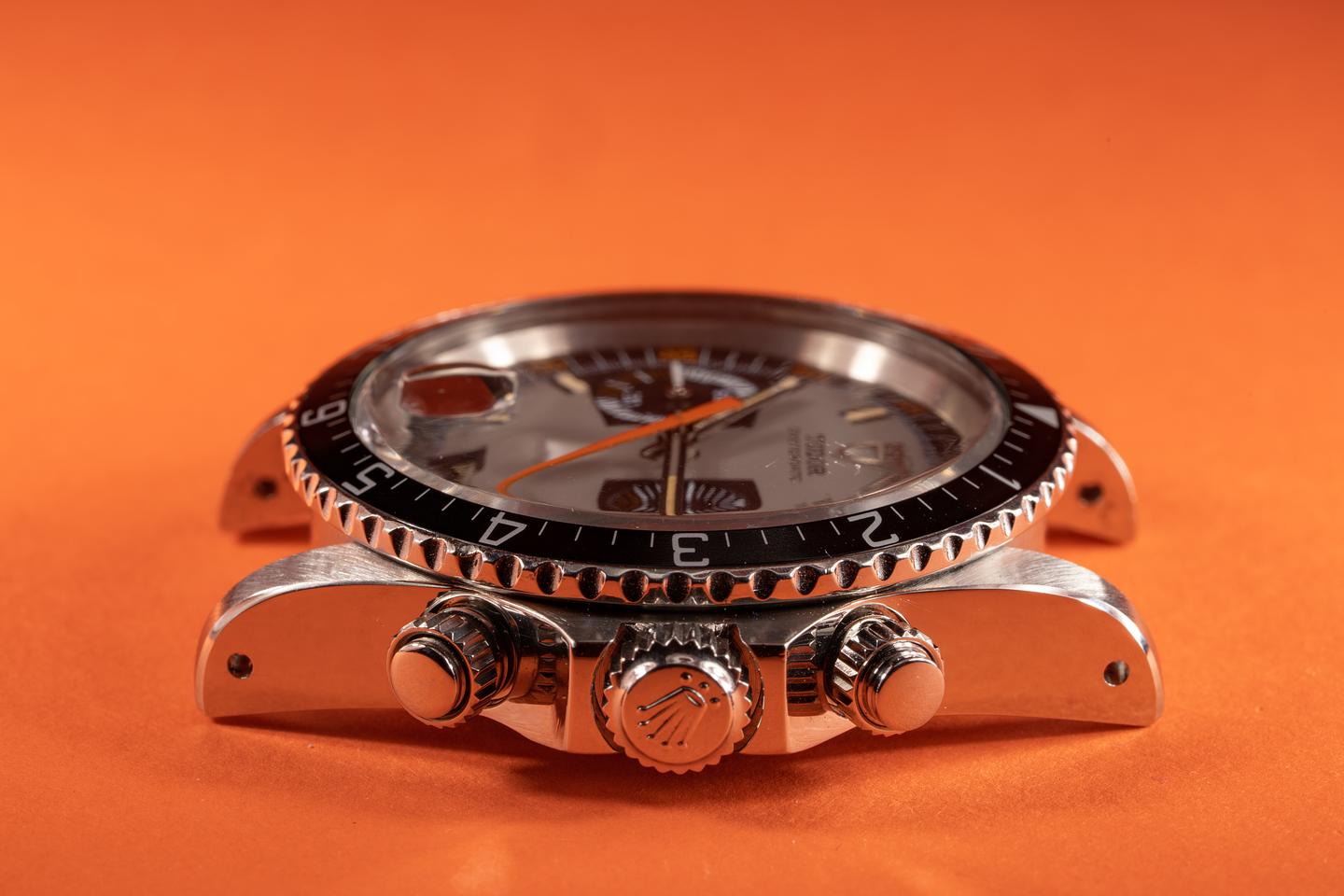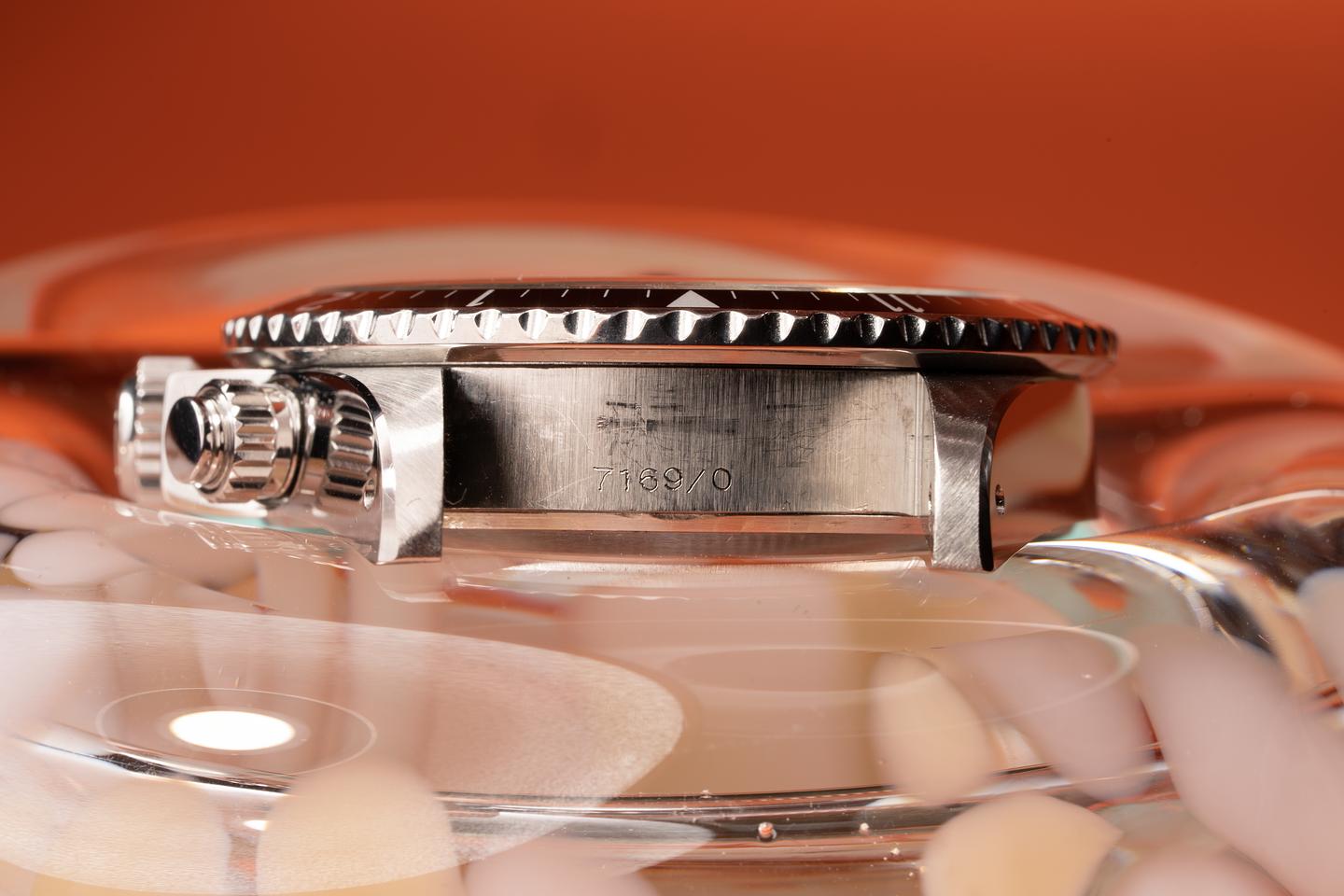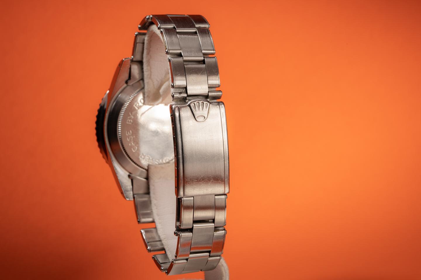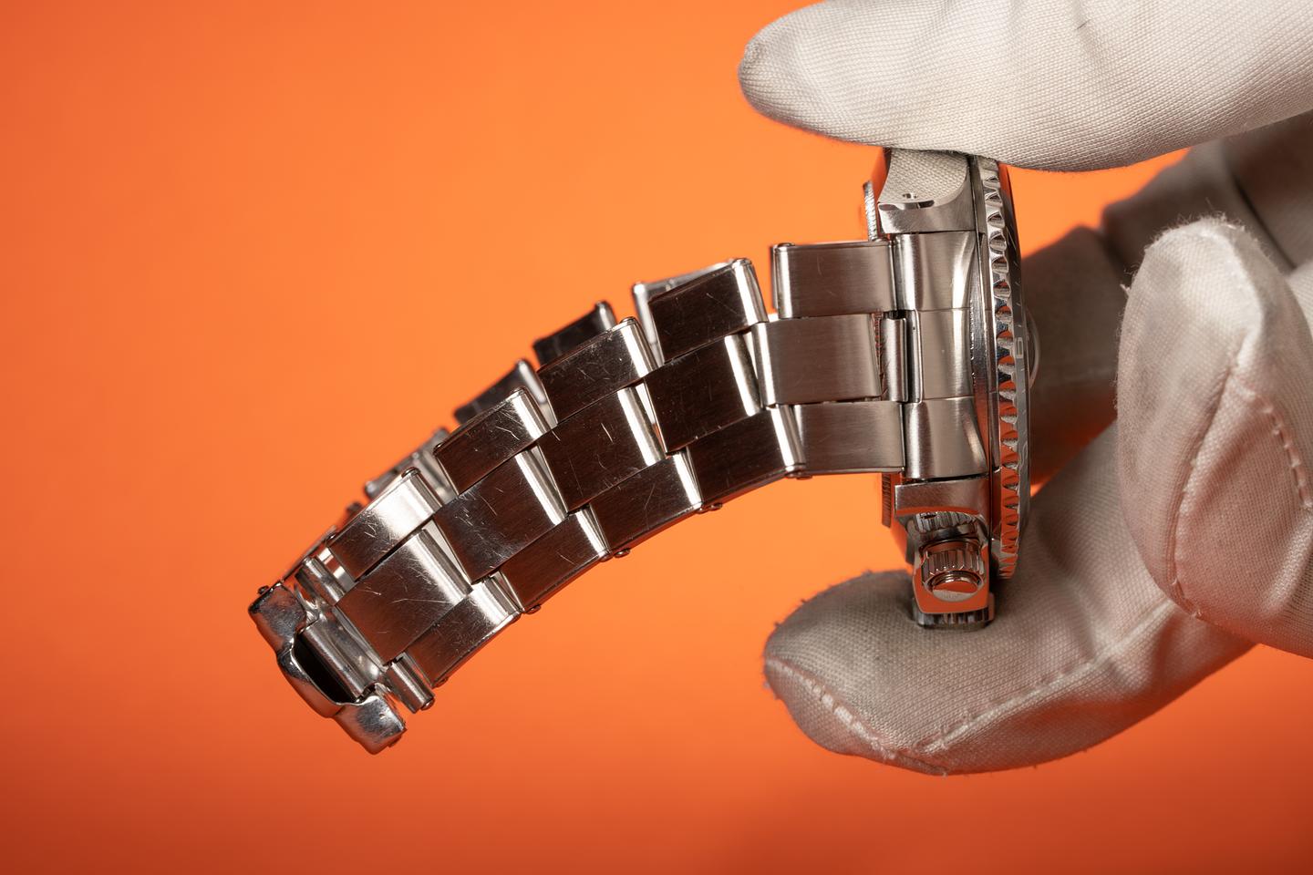 Case: The recently polished case is excellent and features sharp prominent bevels. The glossy black bezel insert is also in excellent condition and shows only very light wear. The pushers are newer service units.