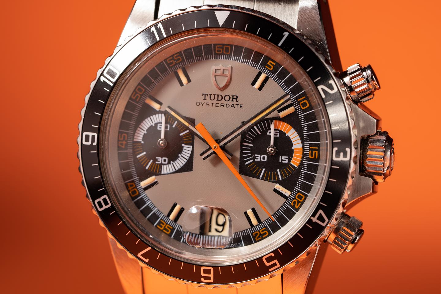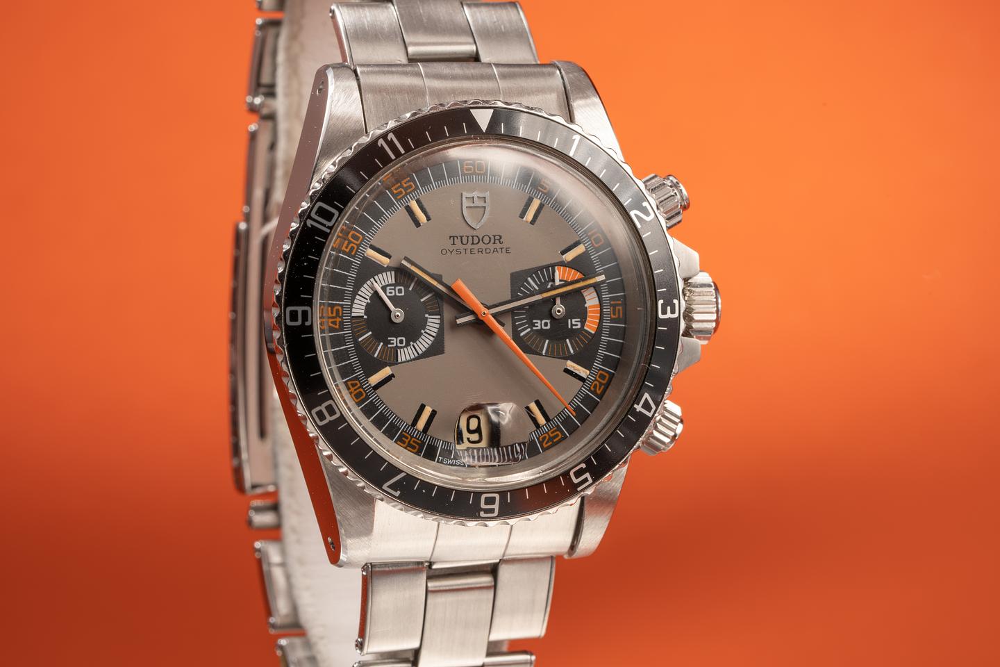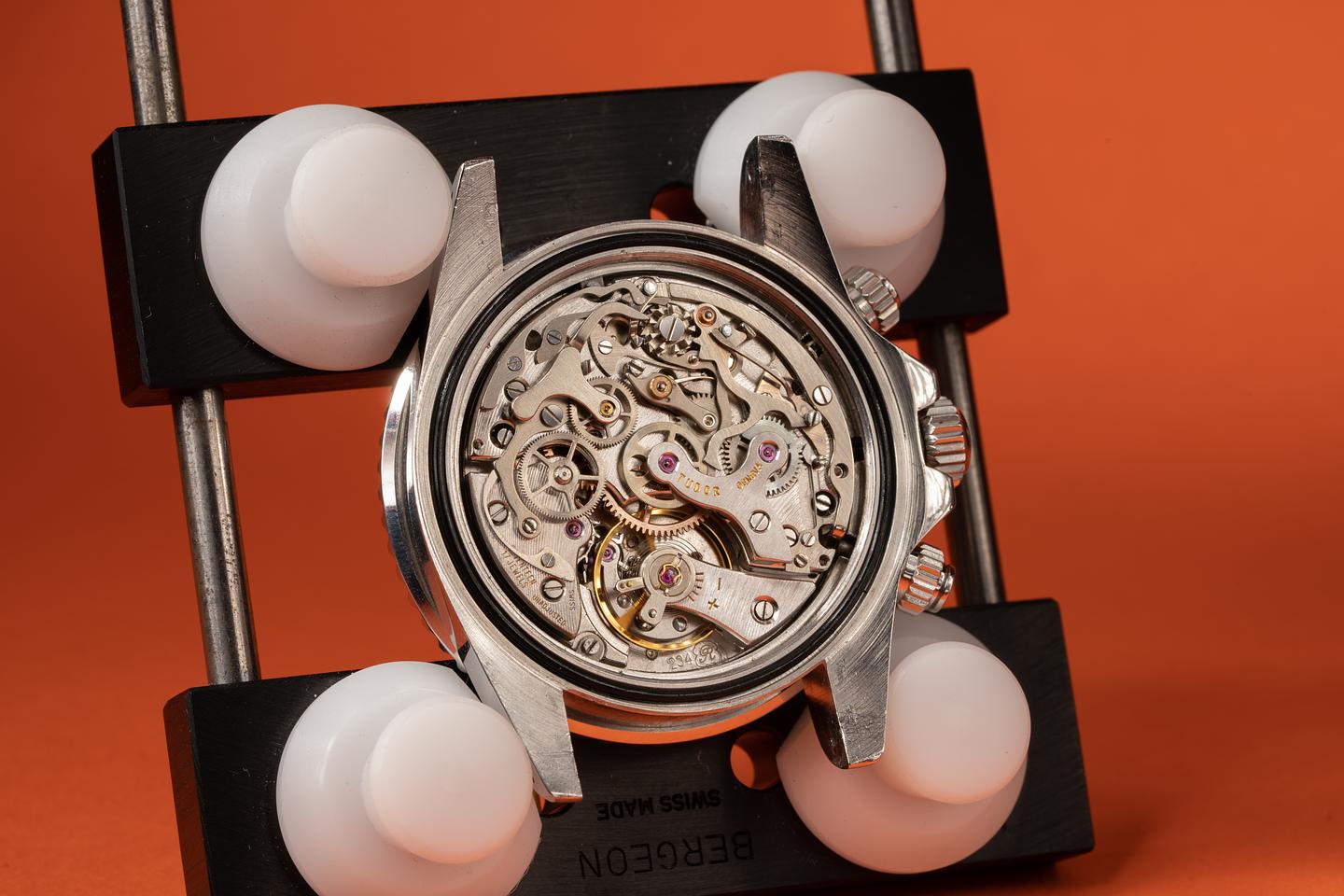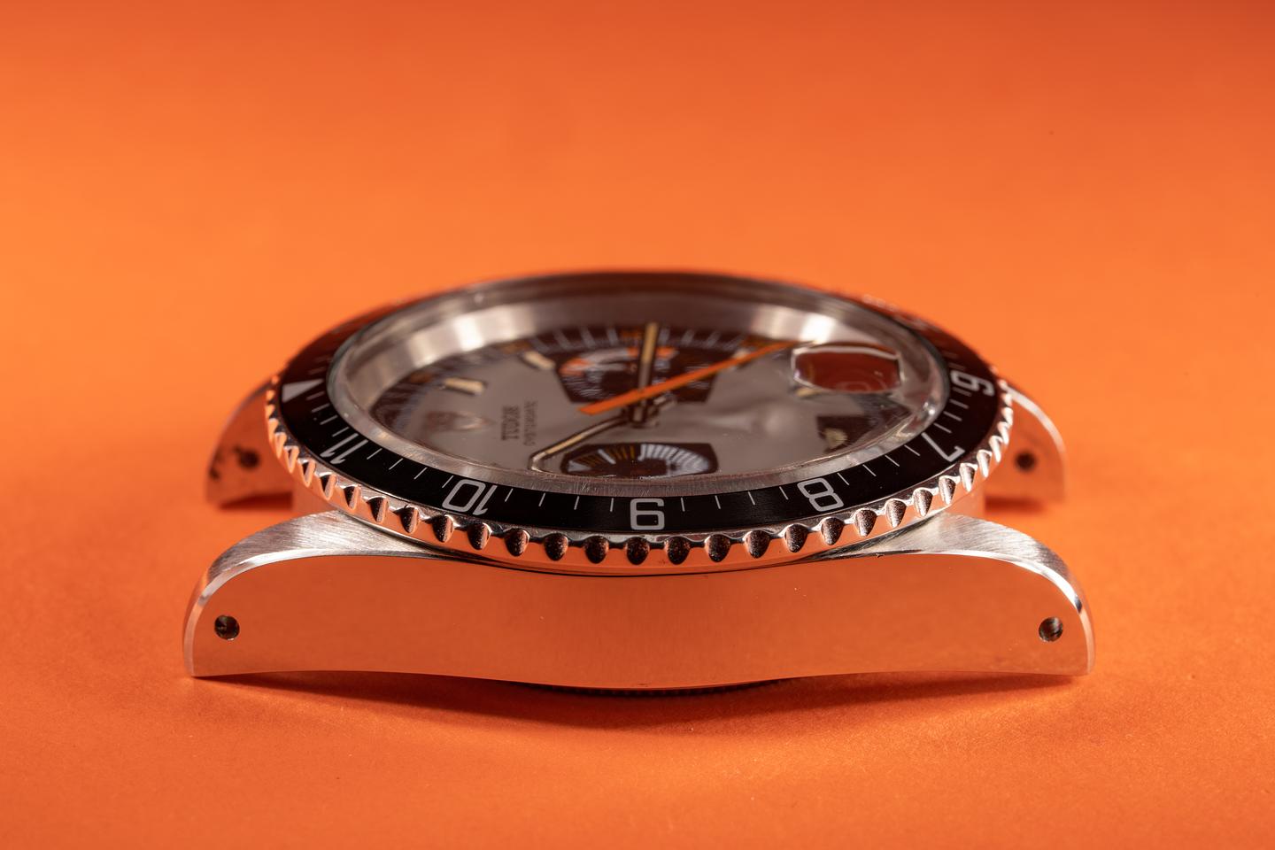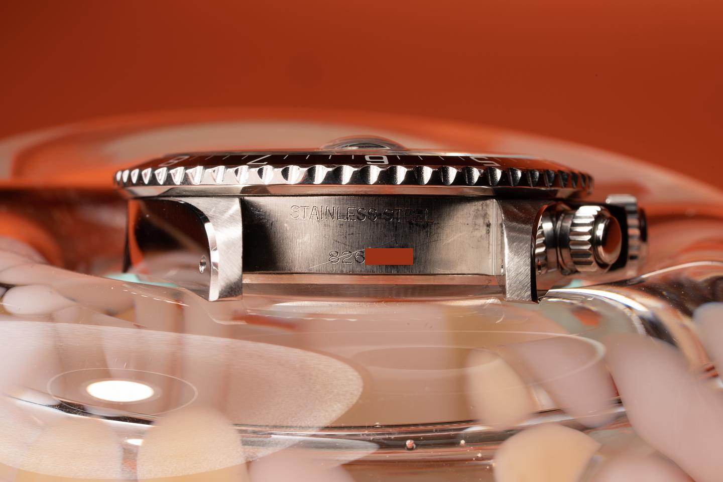 Case: The recently polished case is excellent and features sharp prominent bevels. The glossy black bezel insert is also in excellent condition and shows only very light wear. The pushers are newer service units.