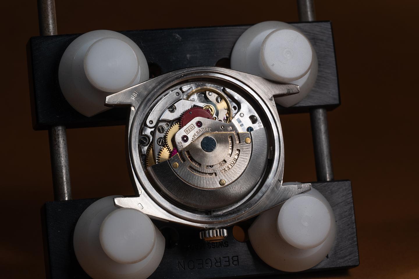 Dial: The blue diamond dial is excellent showing little if any wear from use. The lume has aged to a clean creamy hue and the hands have been relumed to match the dial.