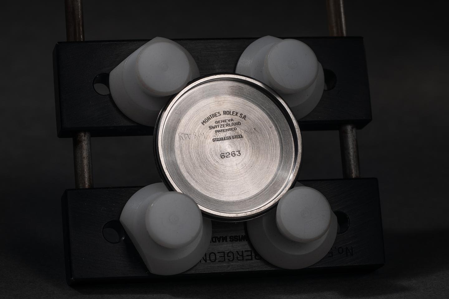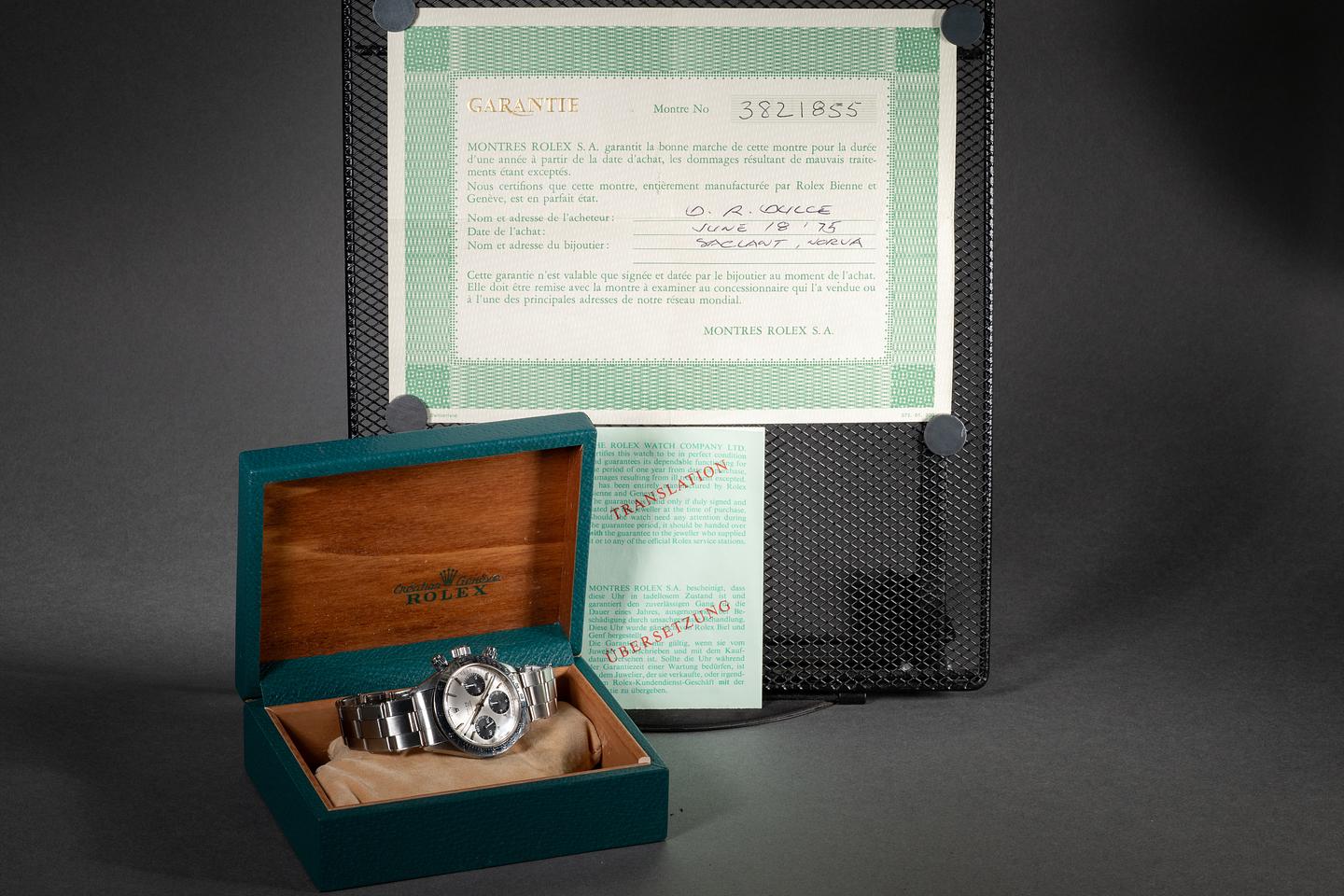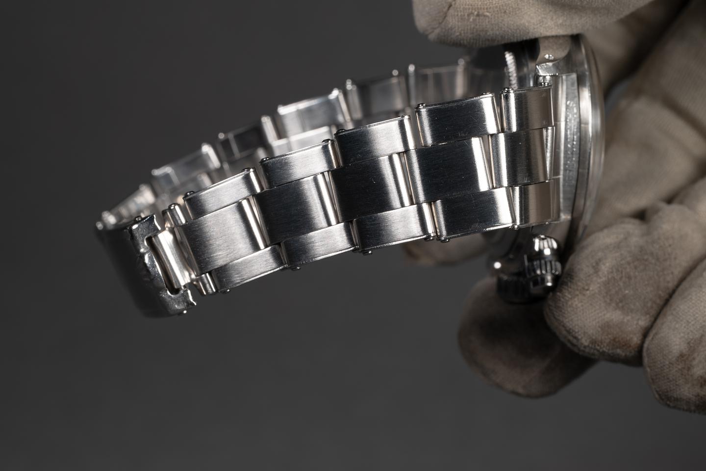 Bracelet: The 12-link USA rivet bracelet is in excellent condition, showing some light stretch for its age. The clasp is stamped with a matching 1975 date code.