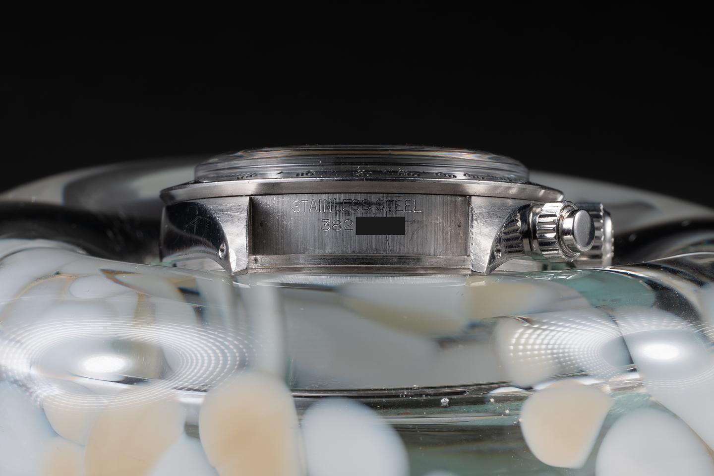 Case: The case is excellent, showing light to average wear from use. There is a small ding at the tip of the 7 o'clock lug. The stainless bezel is also in excellent condition, showing some light wear from use.