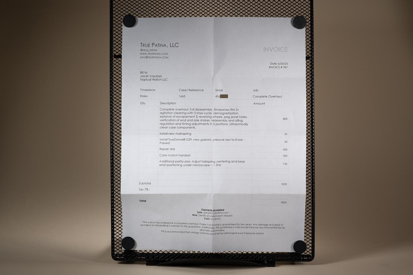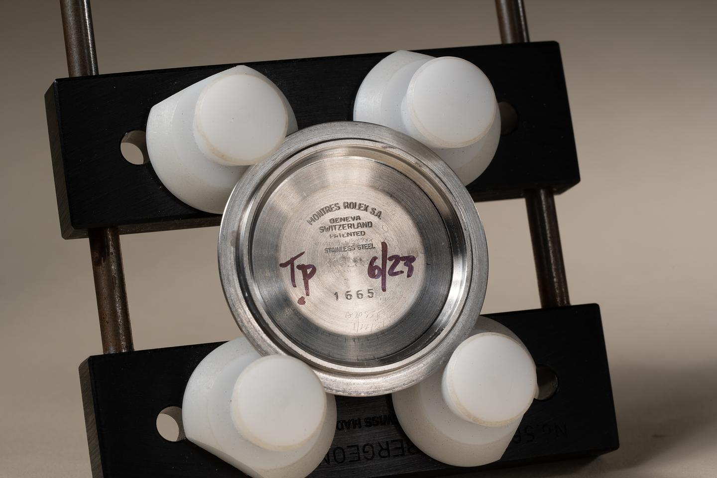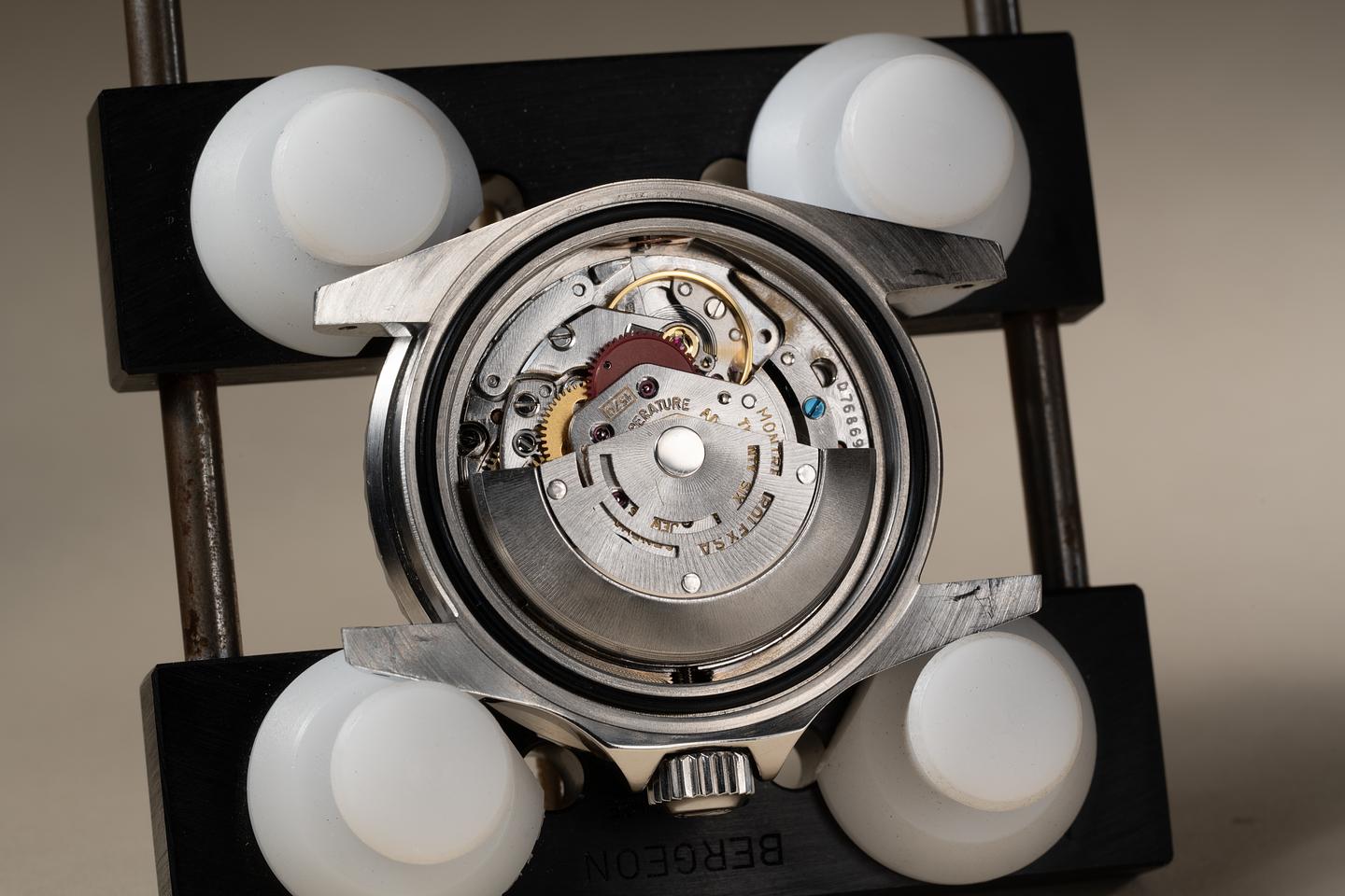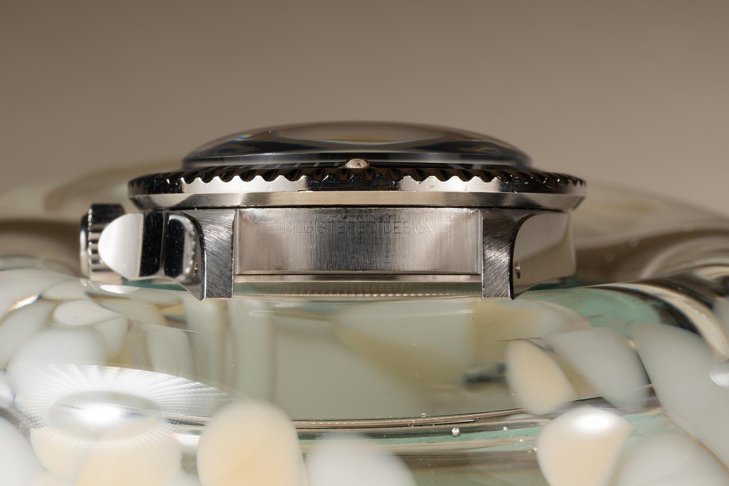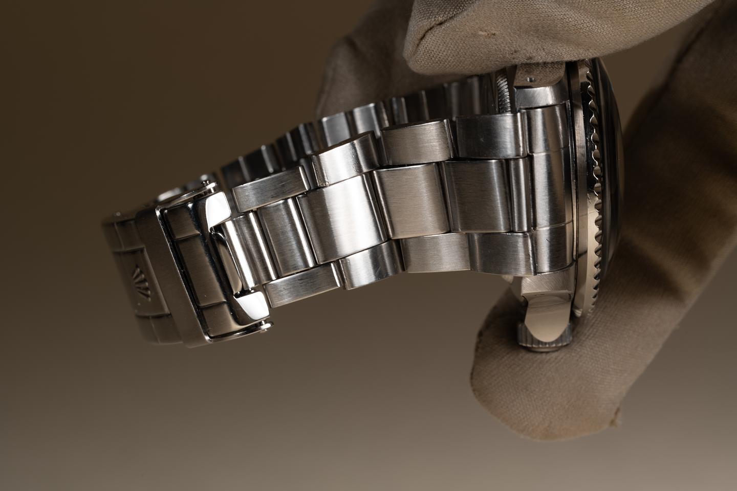 Case: The recently polished case is excellent showing sharp bevels and only light wear from use. The black bezel insert is also in excellent condition showing only light wear from use.