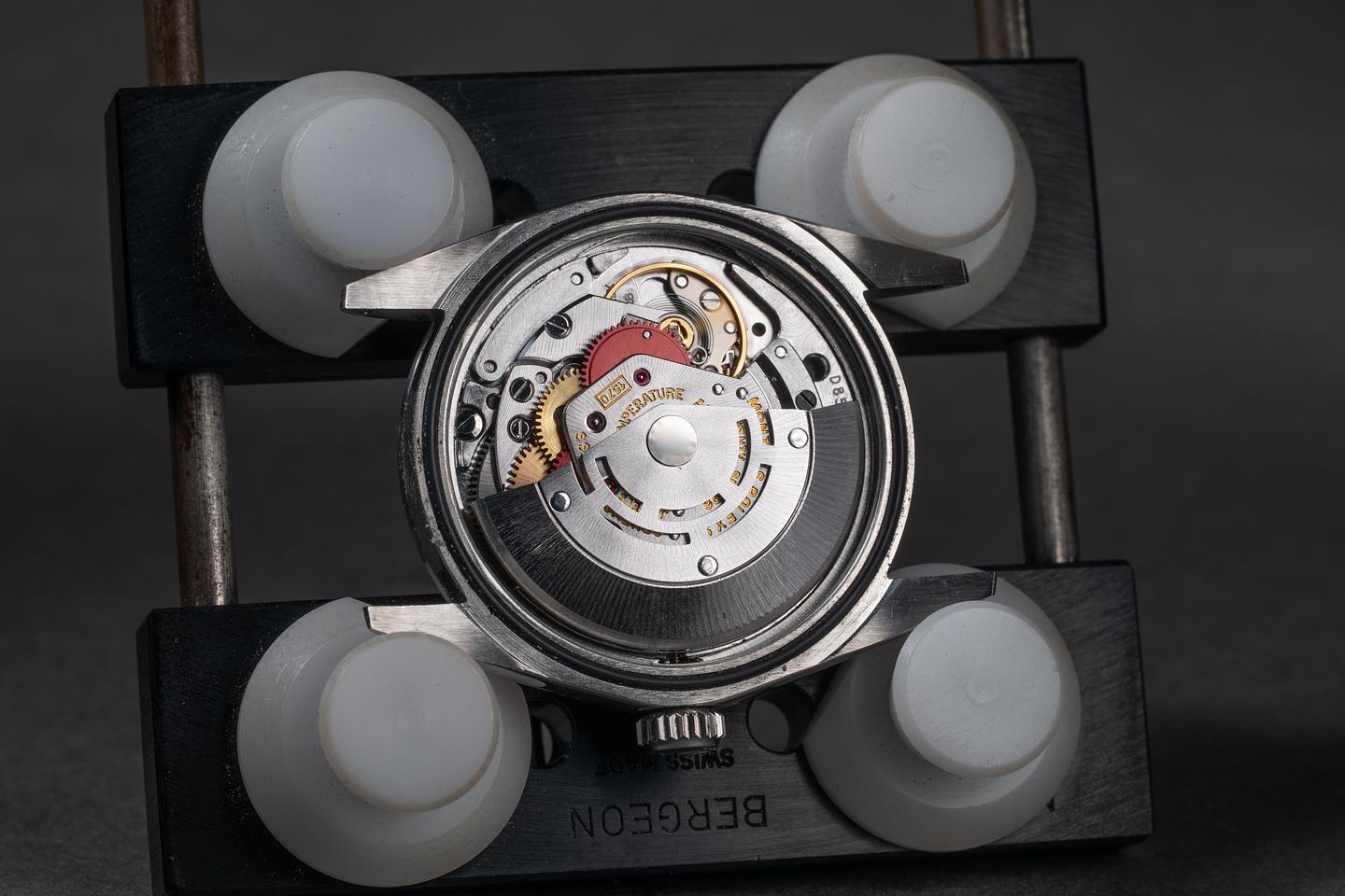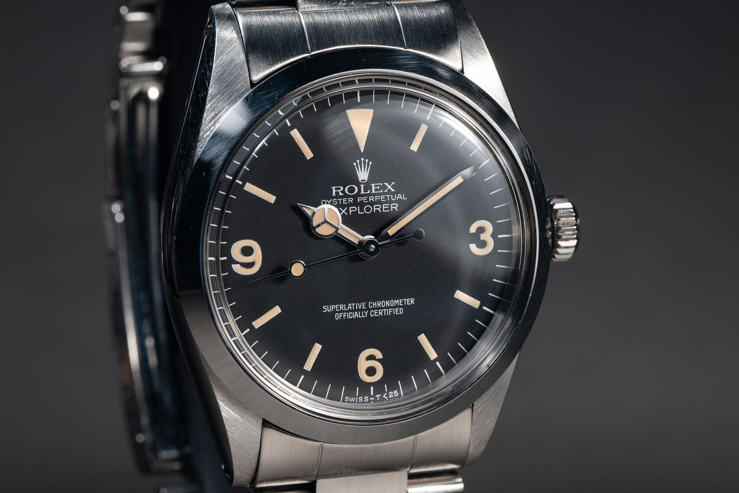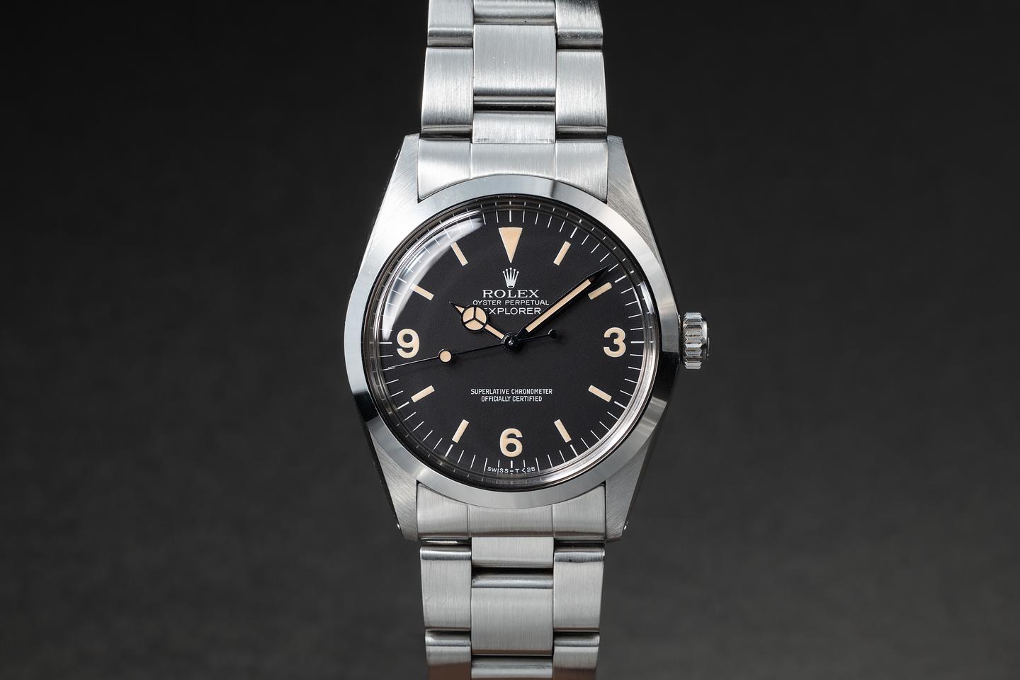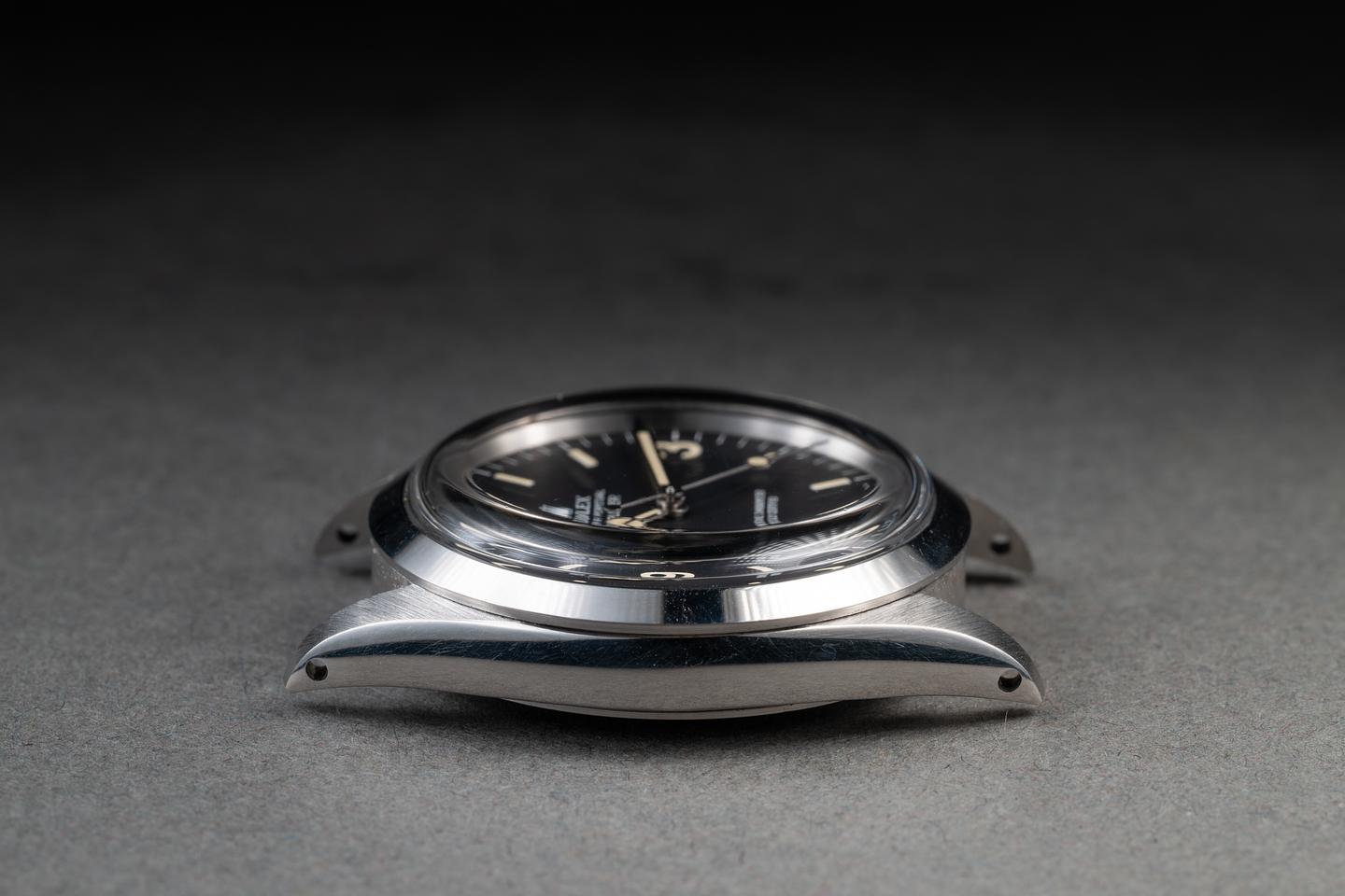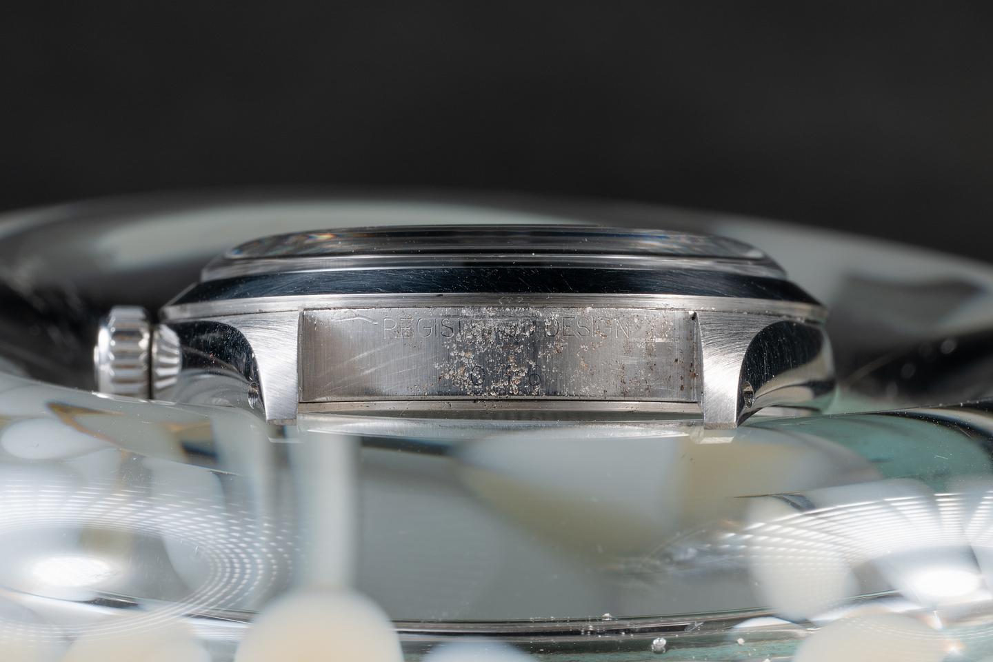 Dial: The matte black 3, 6, 9 dial is excellent, showing no visible wear. The lume has aged to a warm, creamy hue, and the hands have been relumed and color-matched to the dial.