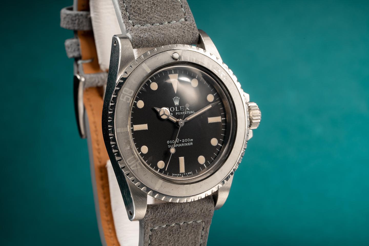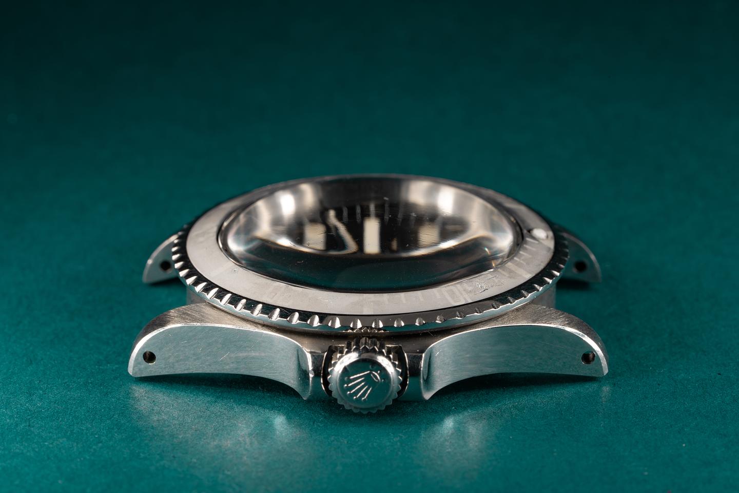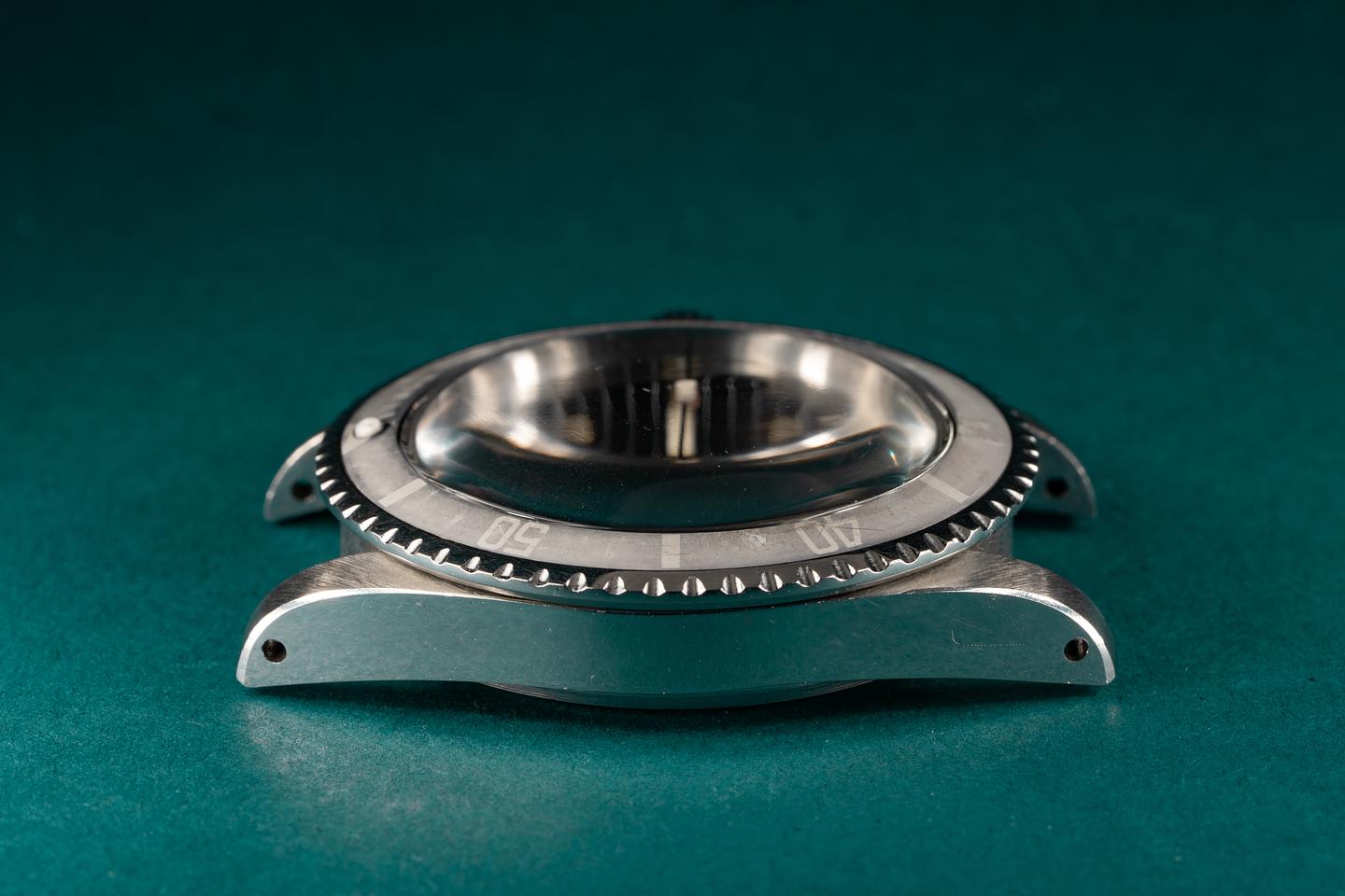Case: The previously polished case is excellent and features sharp and prominent bevels. The bezel insert has faded with a silvery grey "Ghost" patina and shows only light wear for its age.