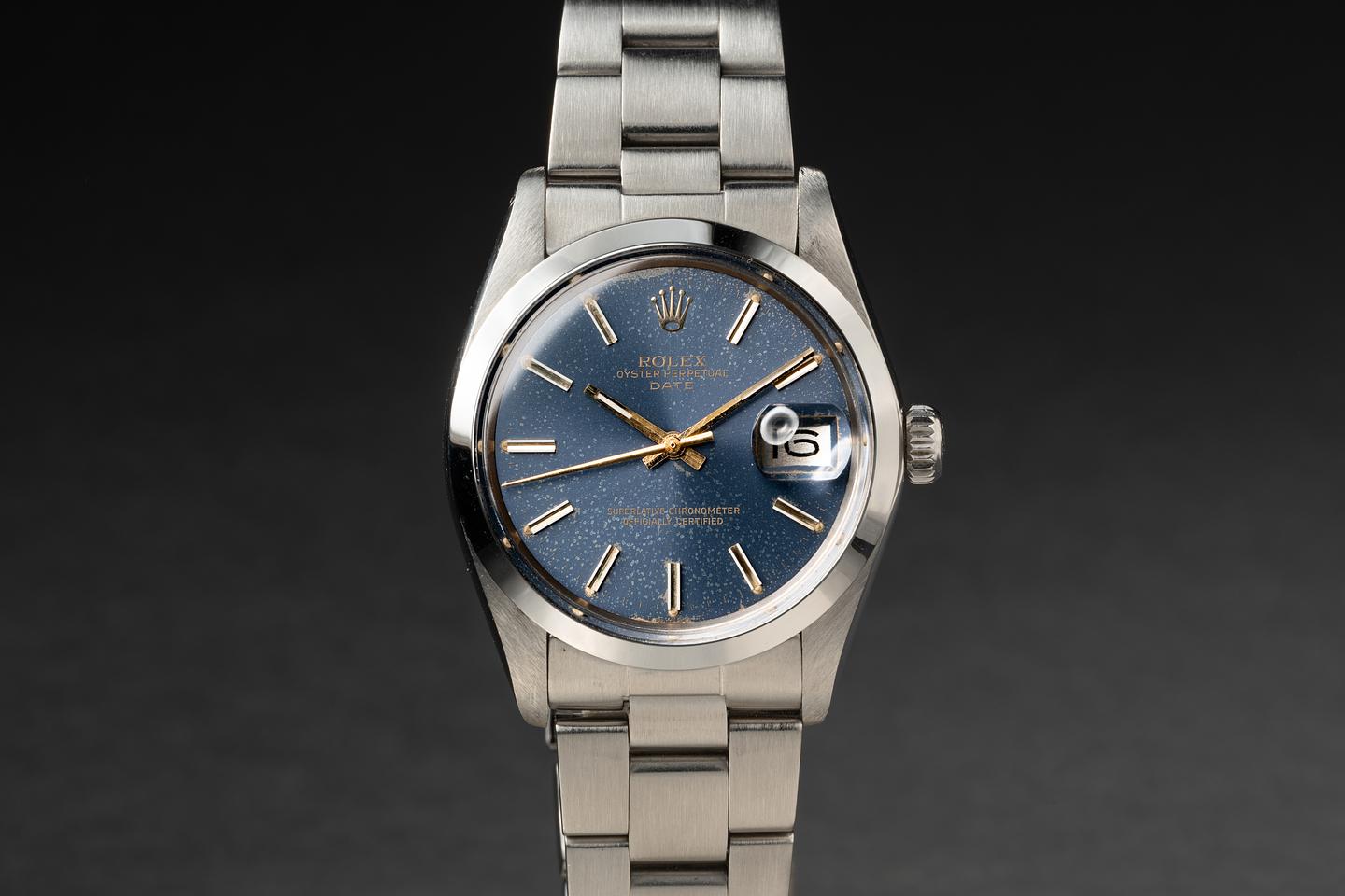 Dial: The blue dial is excellent showing an even and extensive patina across its surface. The lume has aged to a warm vibrant creamy hue and the slightly newer tritium hands have aged to a clean creamy hue.
