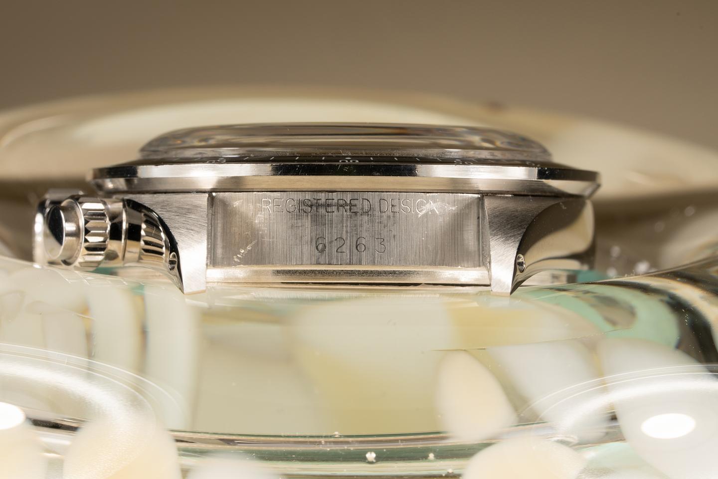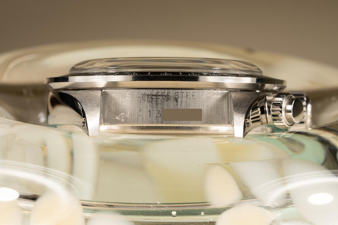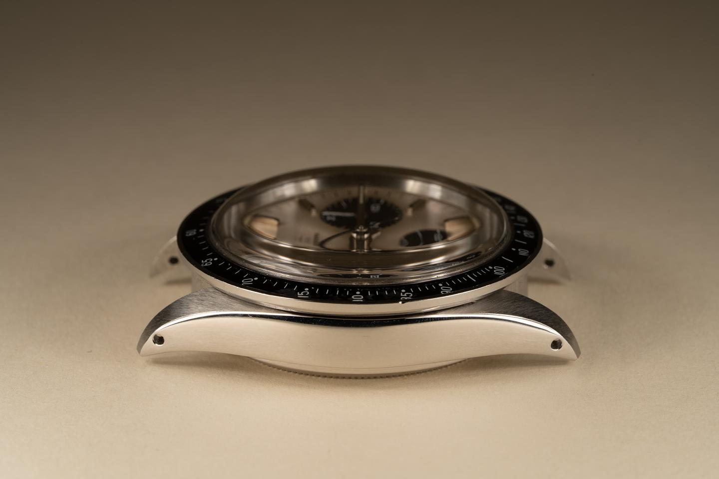 Dial: The silver dial is in excellent condition and shows only very light wear for its age. The subdials are aging to a deep rich dark chocolate hue and show only very light wear. All the lume plots are present and intact and have aged to a warm creamy hue. The hands match perfectly. All lume glows brightly when exposed to UV and falls off rapidly at the same rate which is correct for this series of dial.