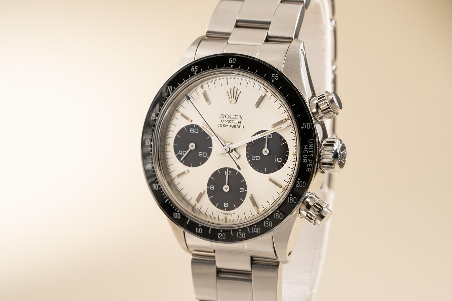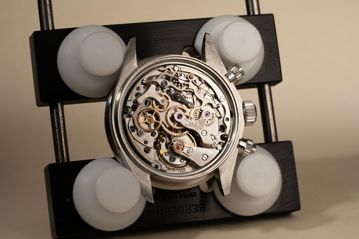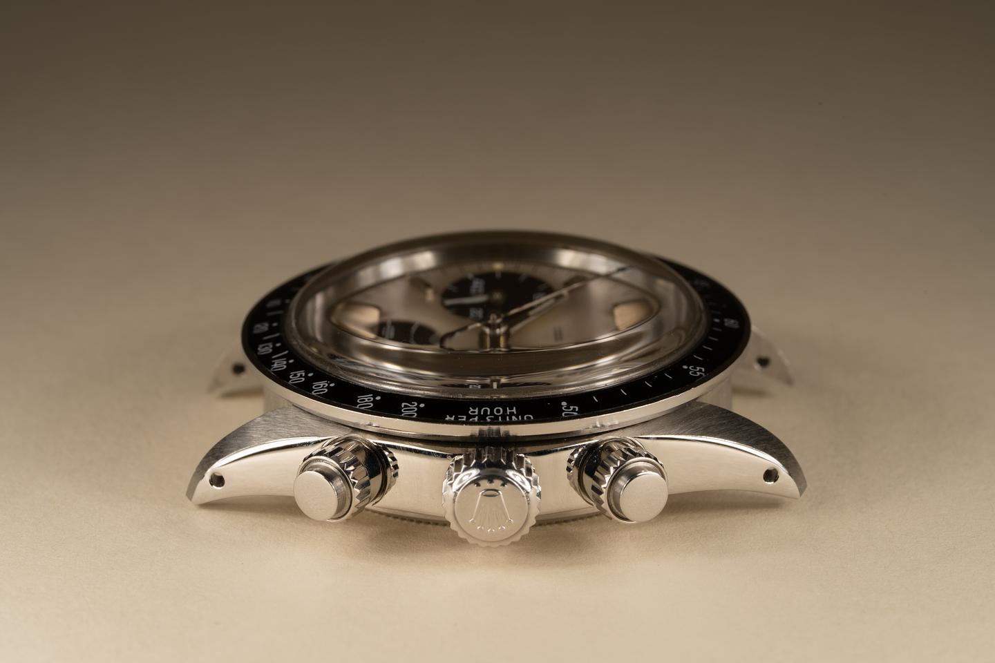 Dial: The silver dial is in excellent condition and shows only very light wear for its age. The subdials are aging to a deep rich dark chocolate hue and show only very light wear. All the lume plots are present and intact and have aged to a warm creamy hue. The hands match perfectly. All lume glows brightly when exposed to UV and falls off rapidly at the same rate which is correct for this series of dial.
