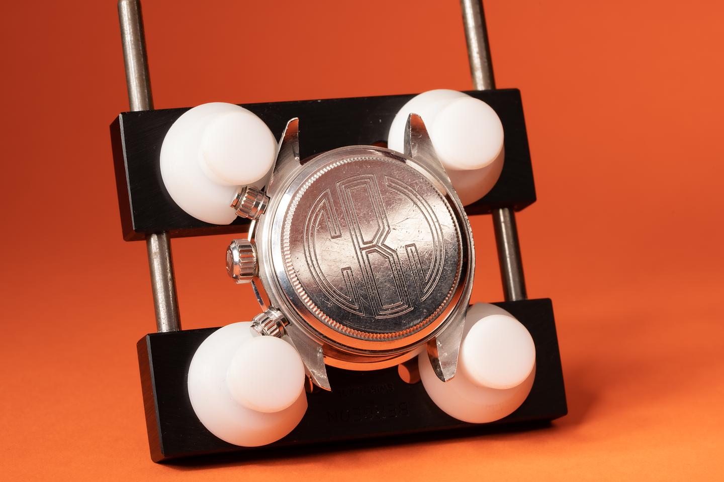Notes: A rare dial, the Big Red Sigma was produced for only a few short years. This particular example is in very nice condition with some light patina present. The outer case back has been personalized with a CBG engraving.