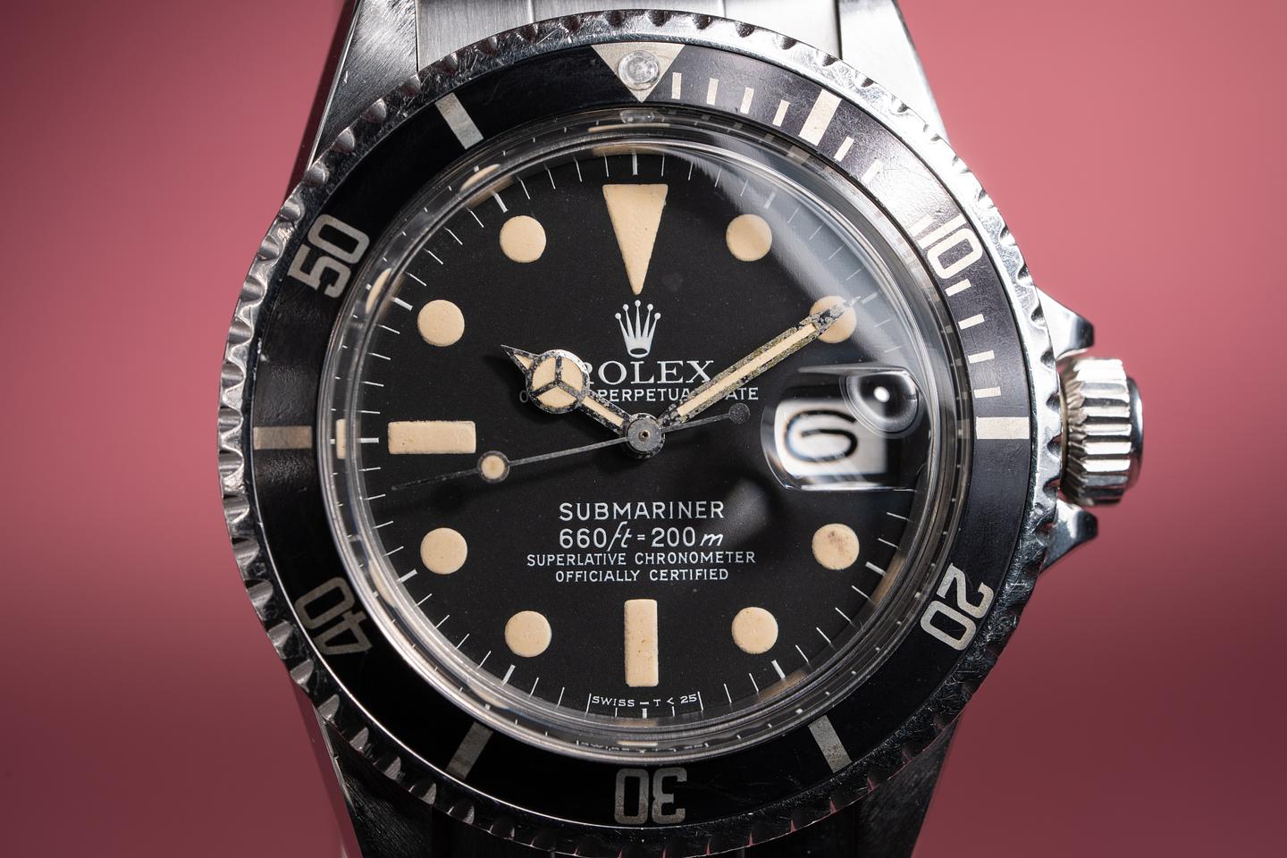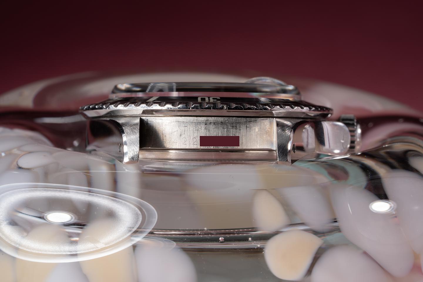 Case: The case is very good and has just returned from polishing showing sharp prominent bevels. The black bezel insert is in excellent condition and is fading to a dark charcoal tone.