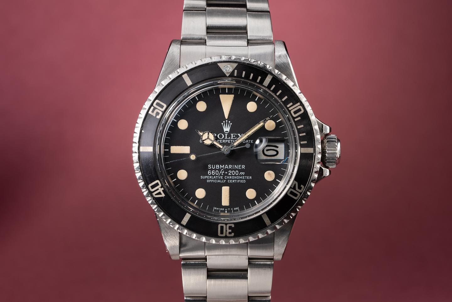 Dial: The matte black dial is excellent showing some light wear for its age. The big puffy lume plots have aged to a warm creamy hue and the hands match perfectly. There is some light staining on the 4 o'clock marker.