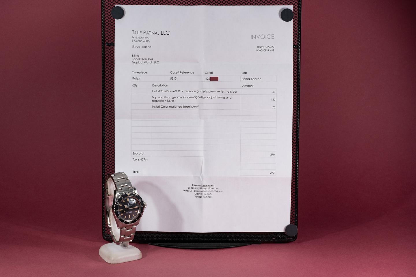 Dial: The matte black serif dial is in excellent condition showing little if any wear for its age. The lume has aged to a warm creamy hue and the hands match perfectly.
