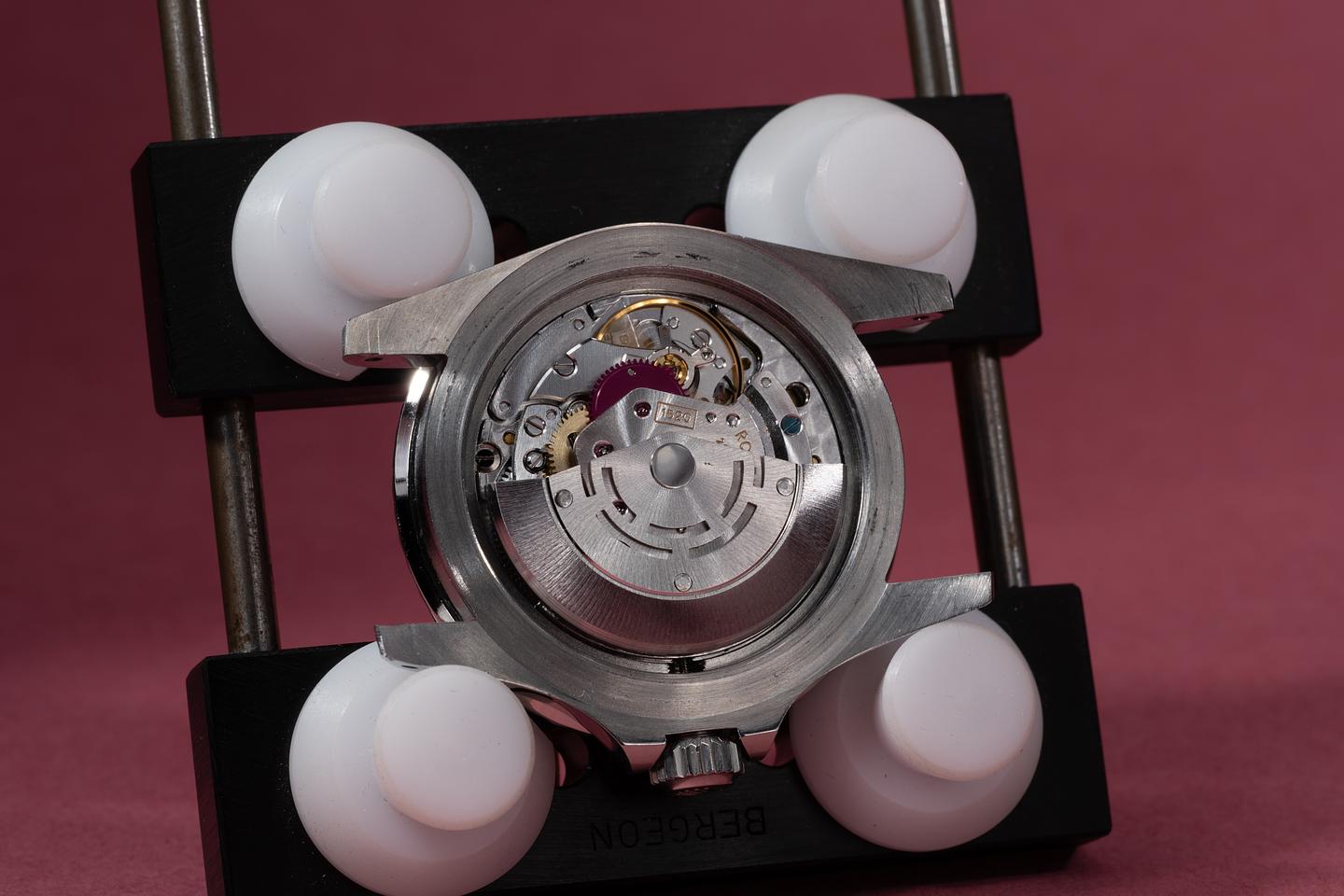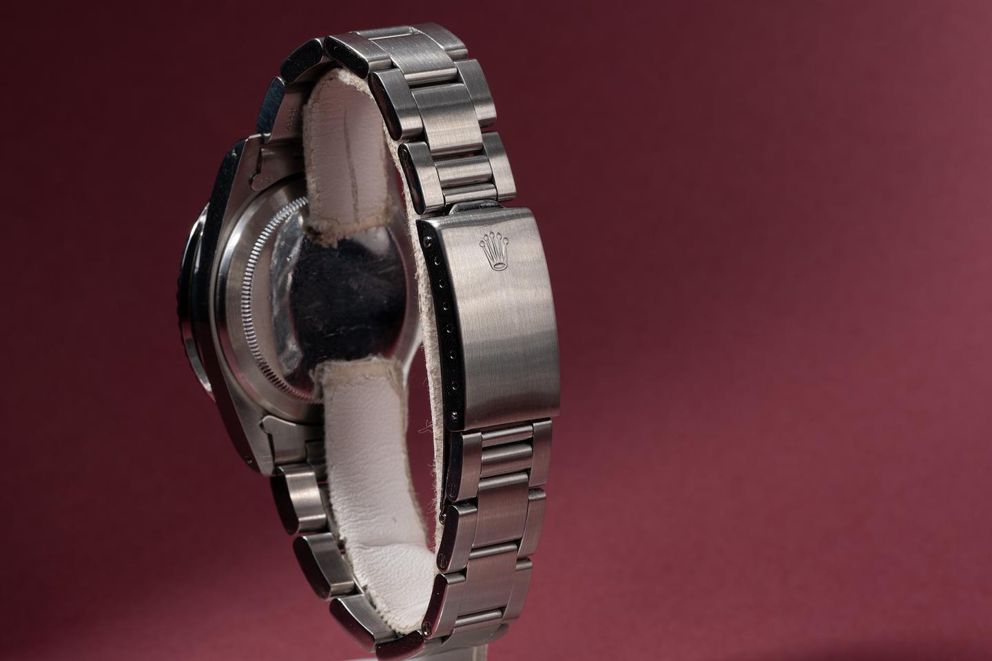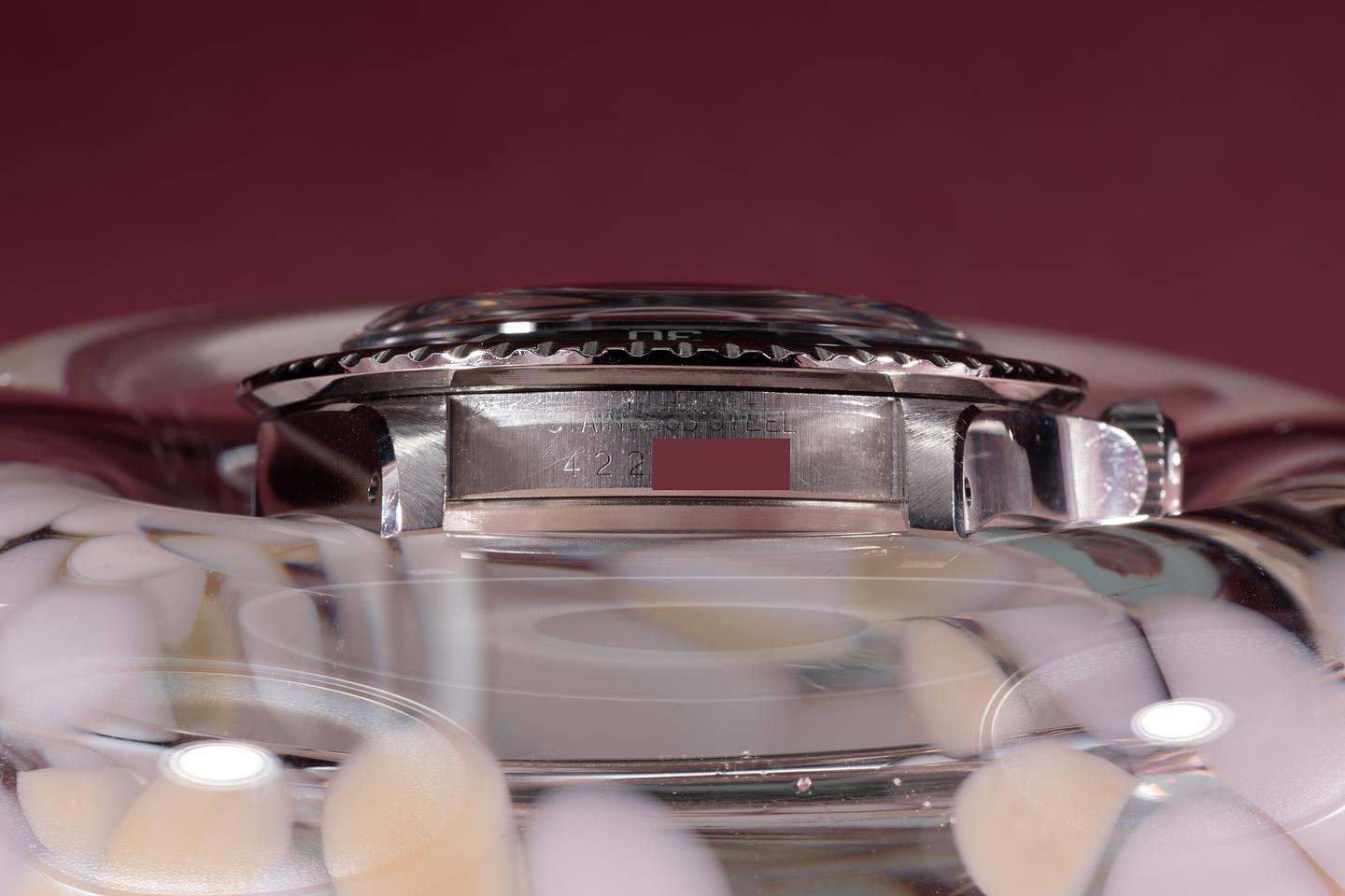 Case: The recently polished case is excellent showing sharp prominent bevels and only light wear from use. The black bezel insert is also in excellent showing only light wear from use.