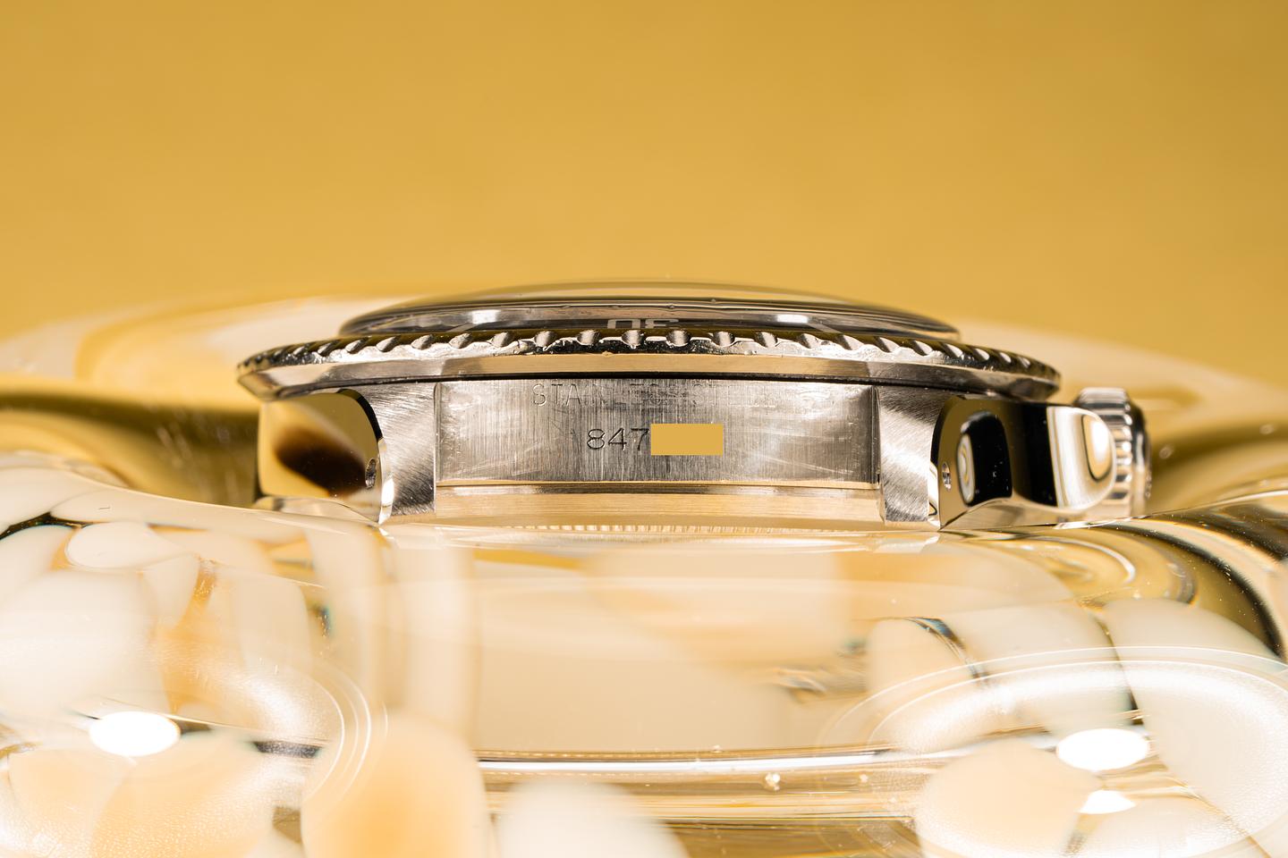 Case: Excellent and thick case that has just returned from polishing. The Bezel insert shows moderate wear and some light corrosion. The insert is fading to a dark blue.