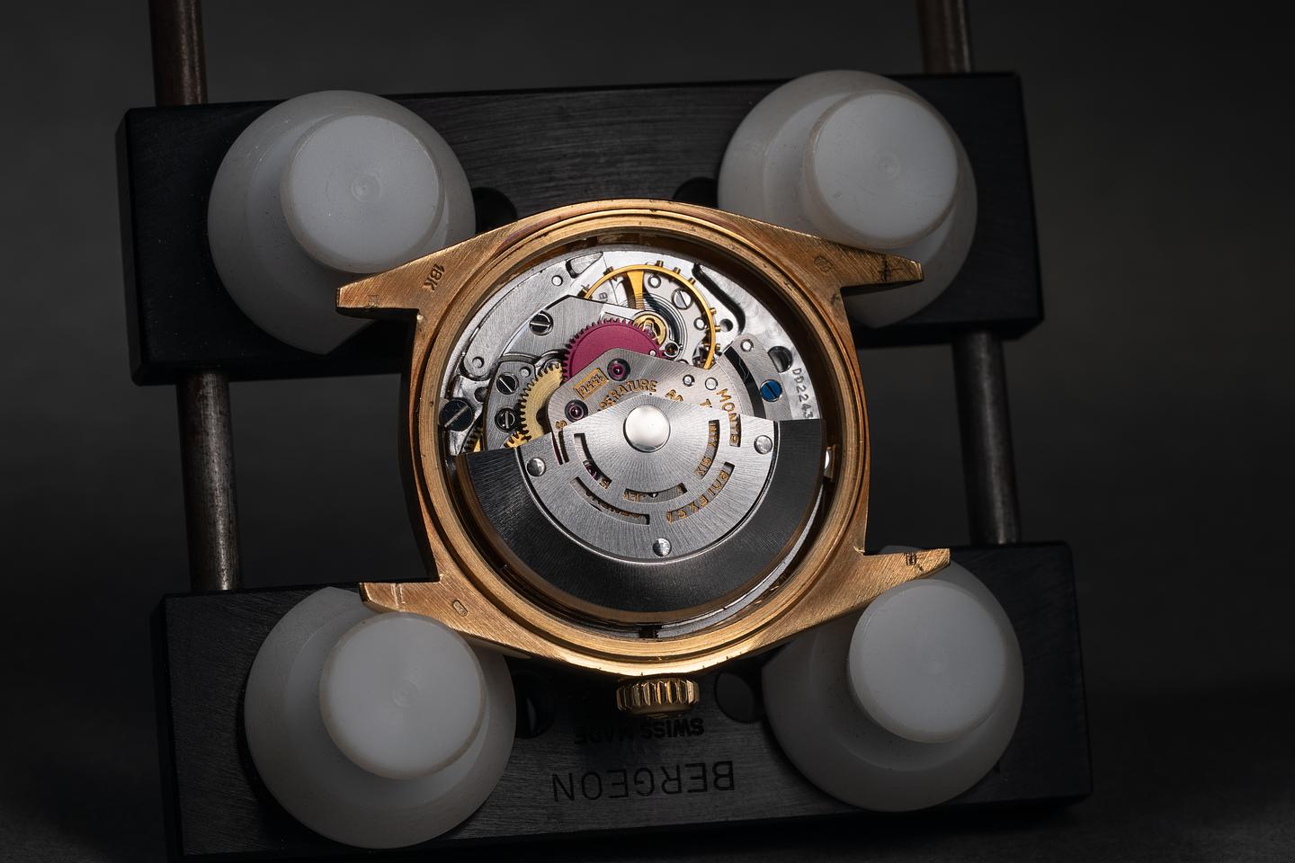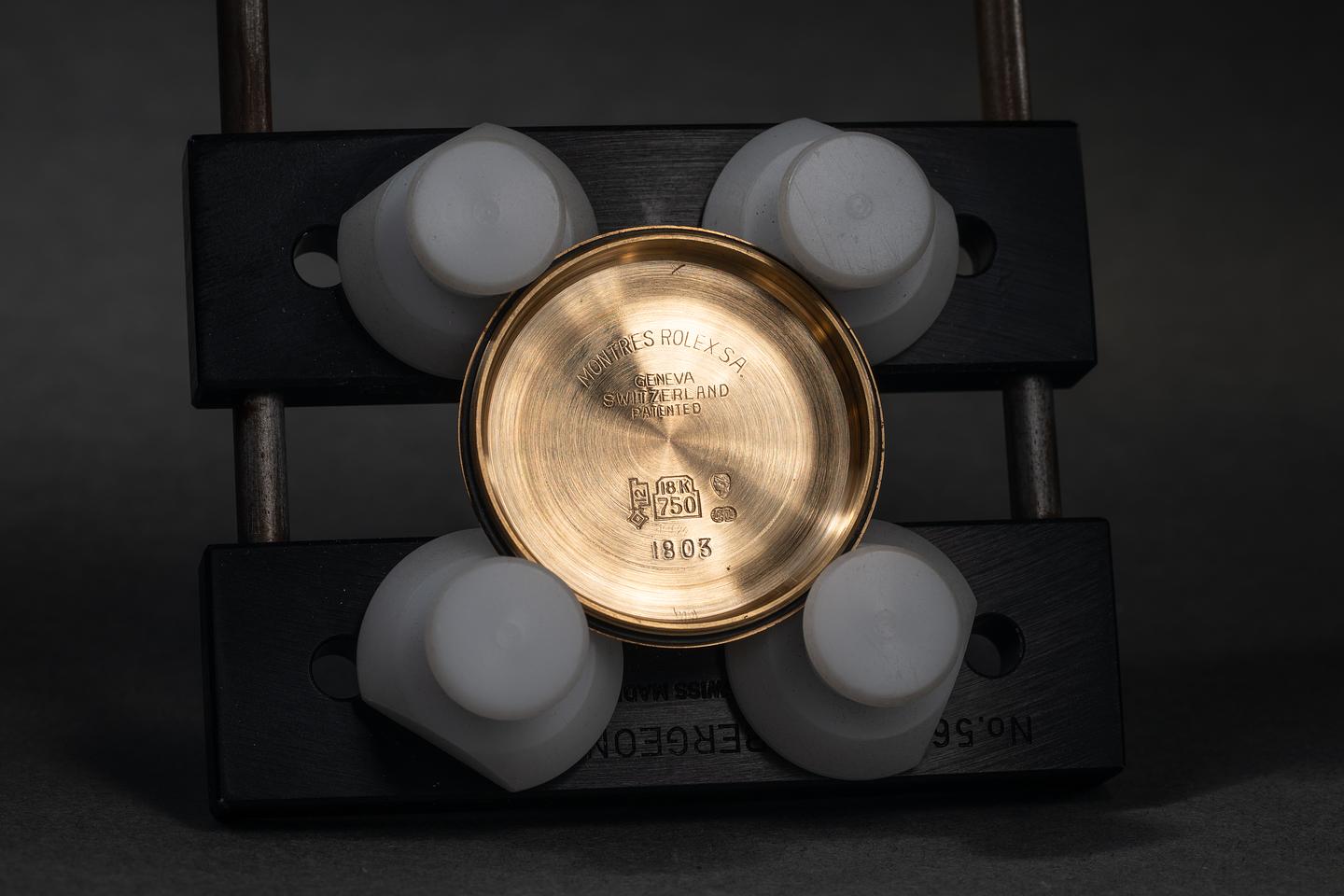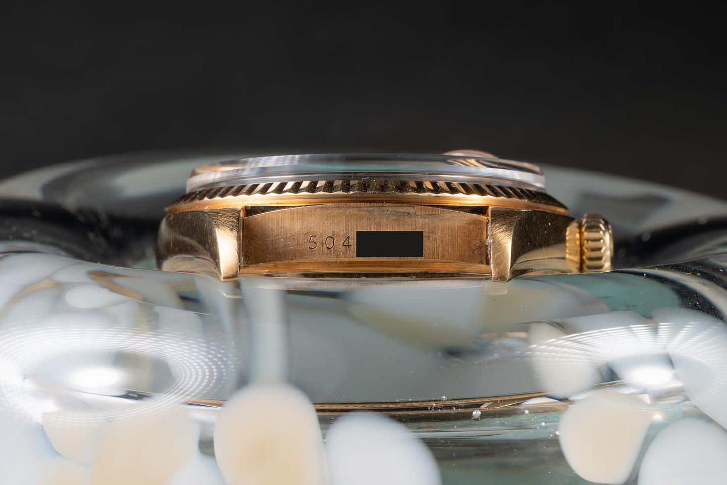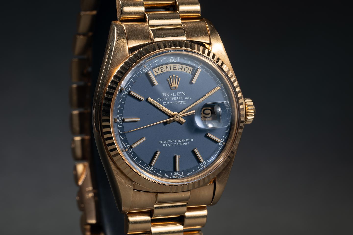 Bracelet: The 20-link 18K yellow gold president bracelet is excellent, showing only very light stretch for its age.