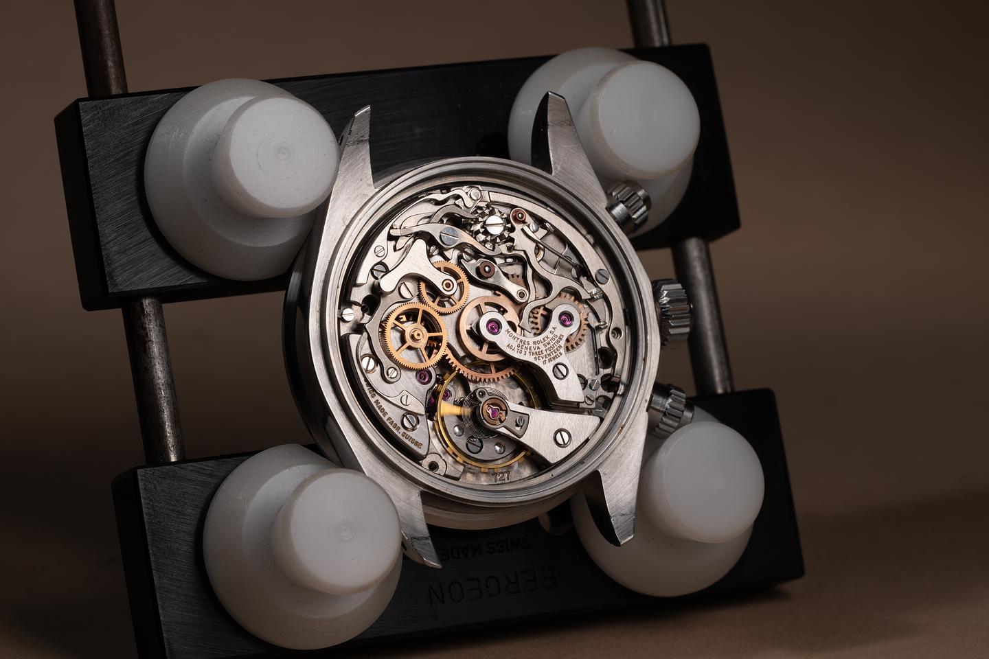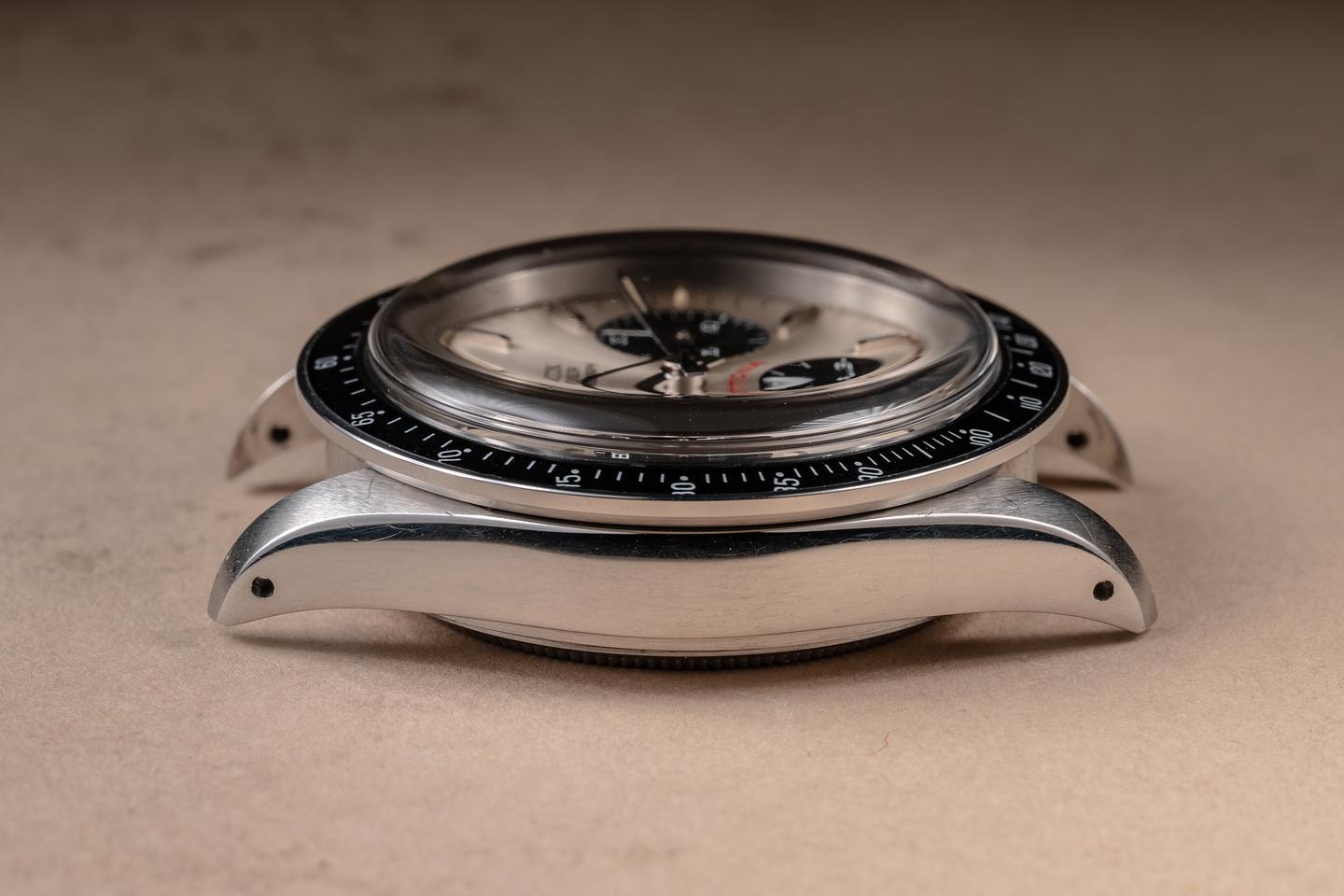 Dial: The silver dial is excellent, showing no visible wear. The lume has aged to a warm, creamy hue, and the hands have aged slightly warmer than the lume on the dial. All lume plots are present and intact.
