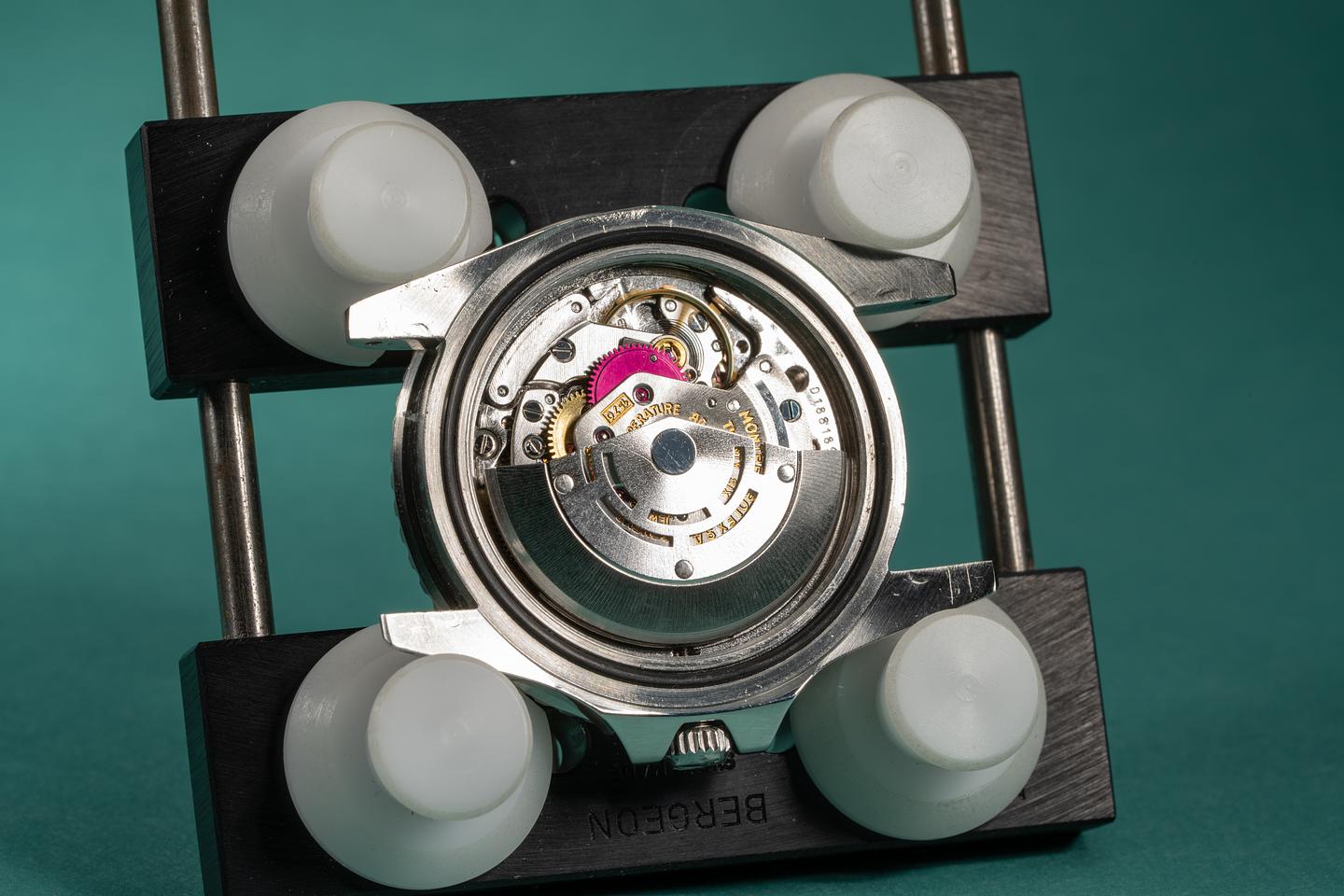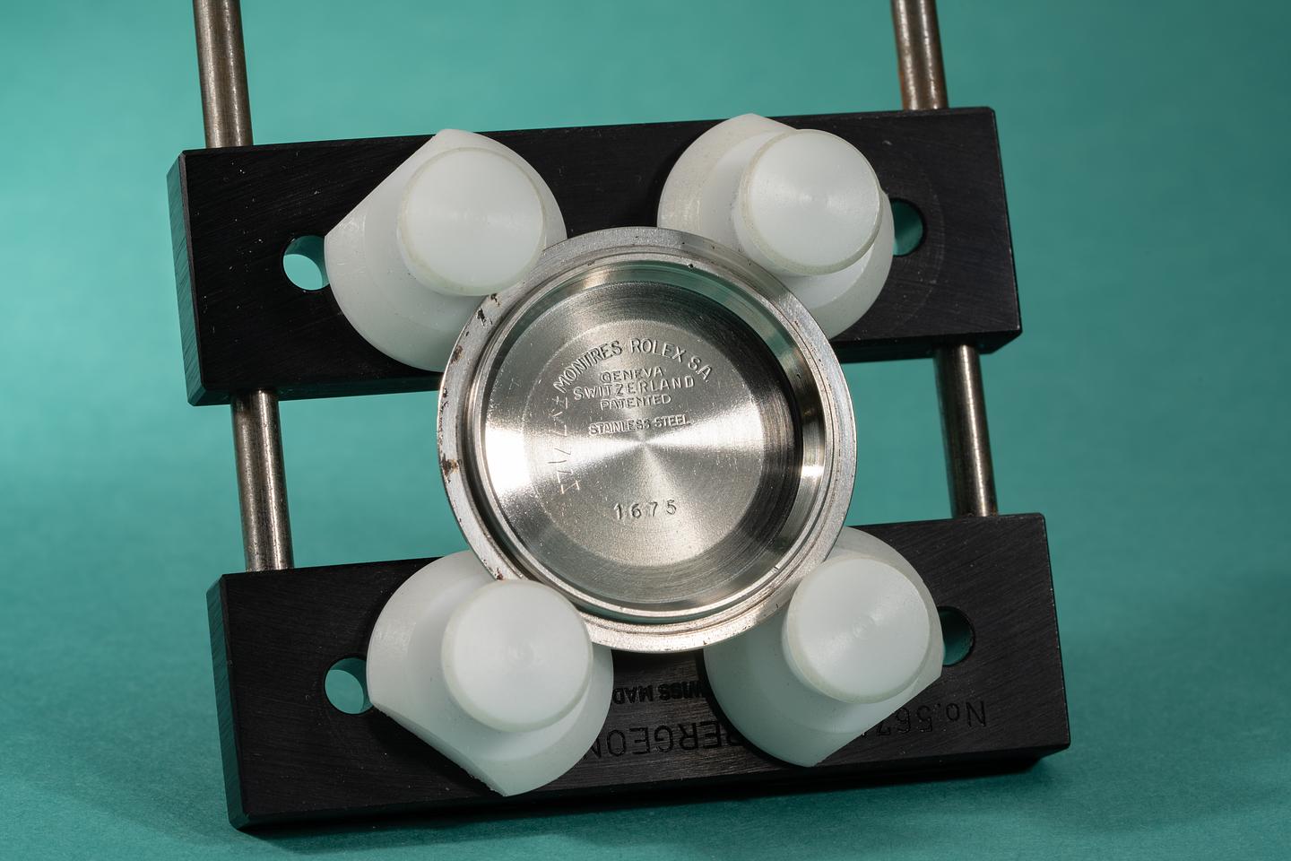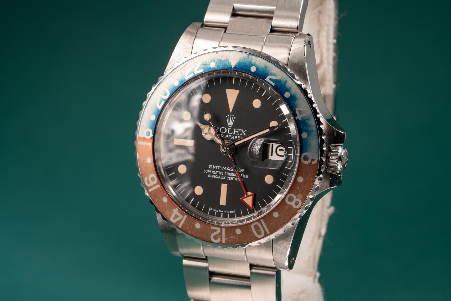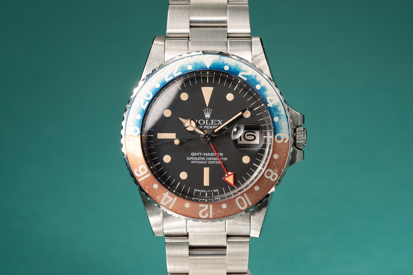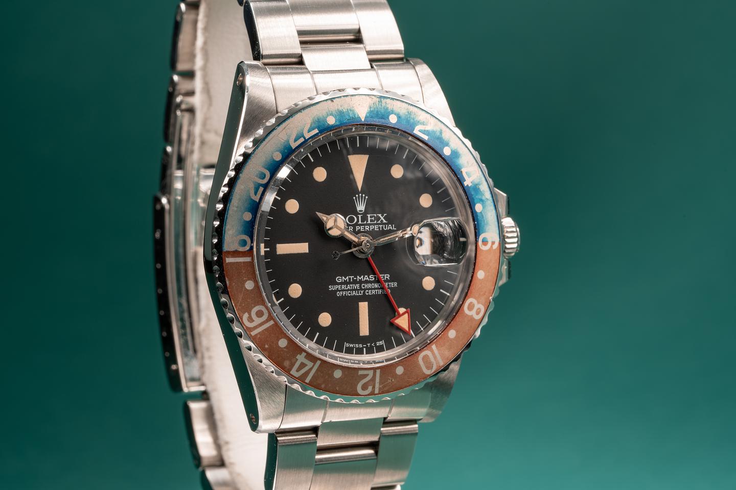 Dial: The matte black radial dial is in excellent condition and show little if any wear. The lume has aged to a warm creamy hue and the hands are matching. The GMT hand is an all red Rolex service unit.