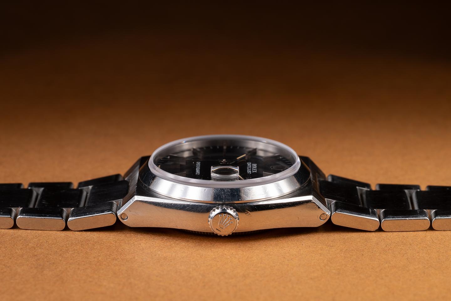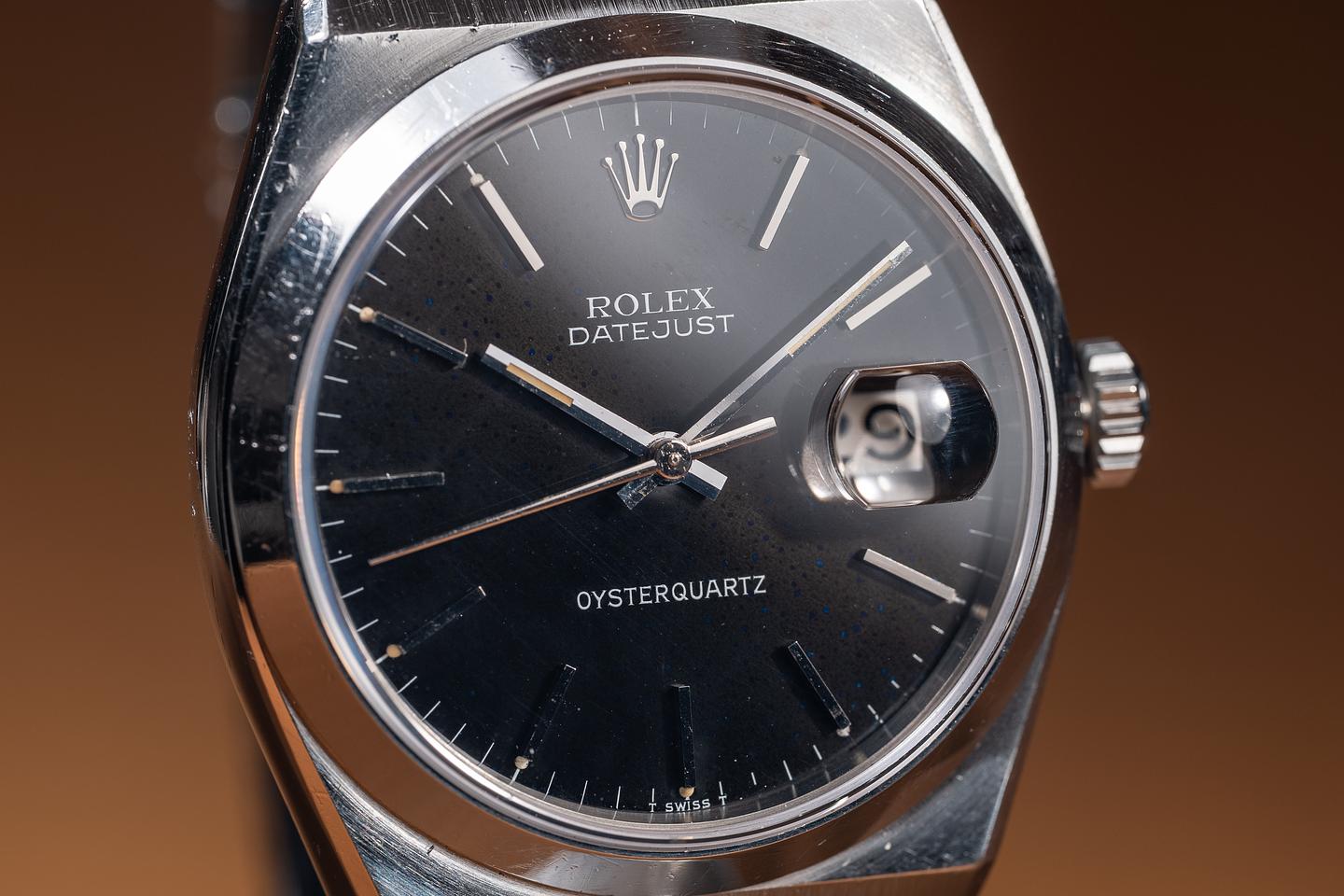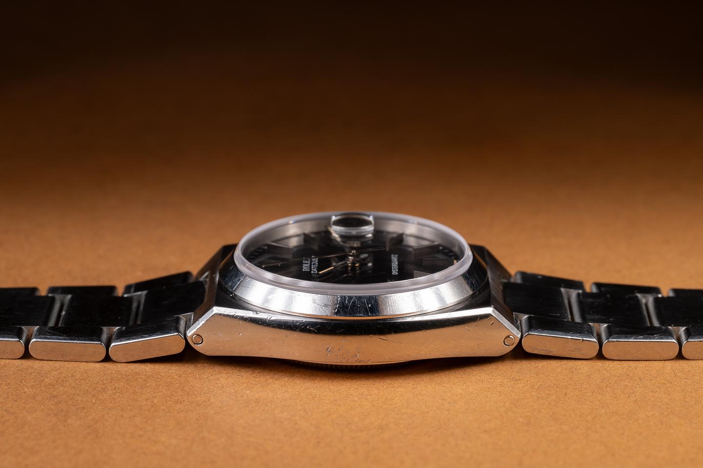 Bracelet: The 12-link OysterQuartz bracelet is excellent, showing only very light stretch for its age. The clasp is stamped with a matching 1977 date code.