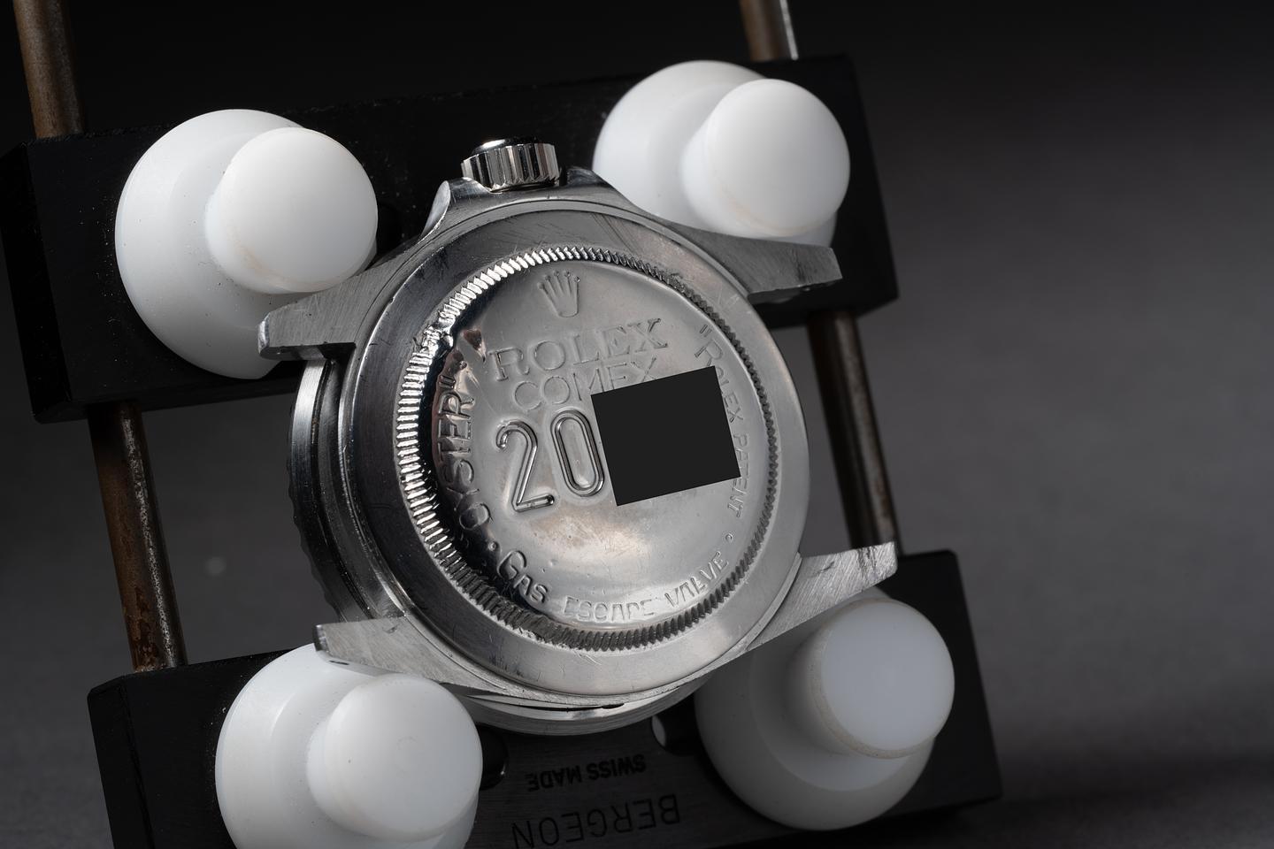 Dial: The black Comex "Pisani" Dial dial is excellent showing only very light wear for its age. The lume has aged to a warm creamy hue and the hands have been relumed and are a shade lighter then the dial.