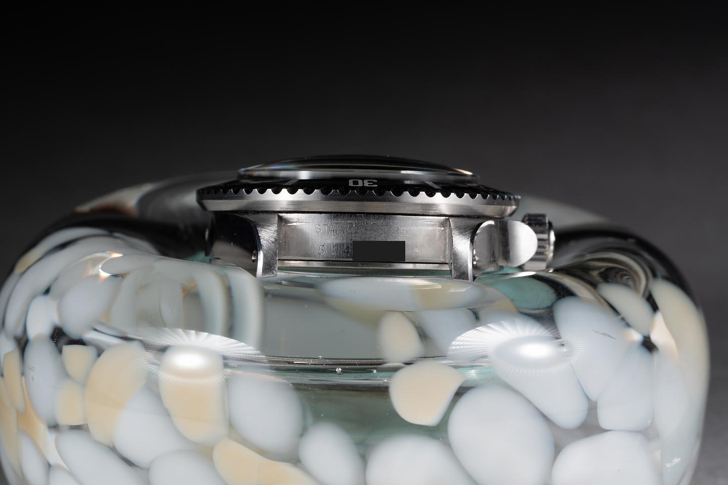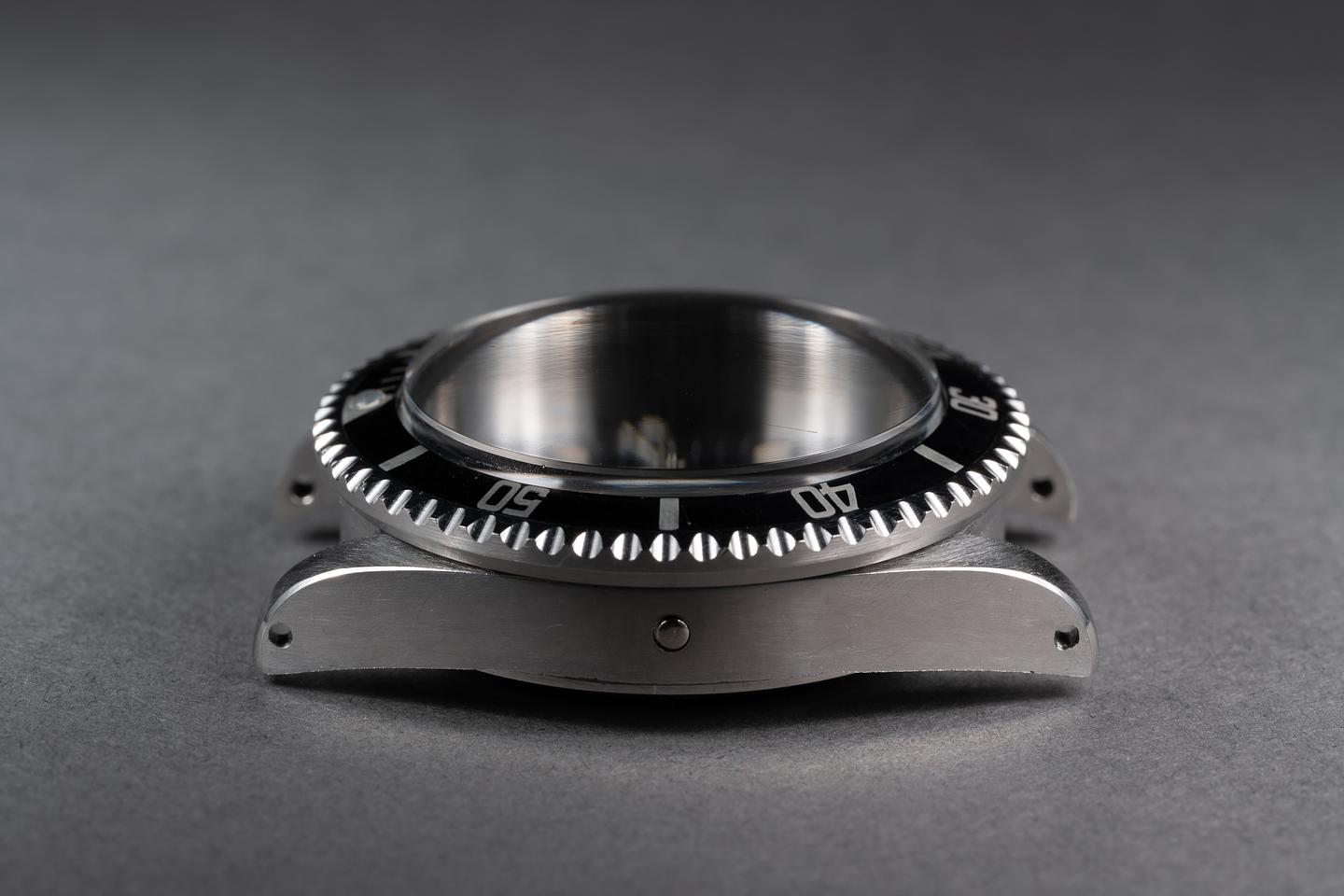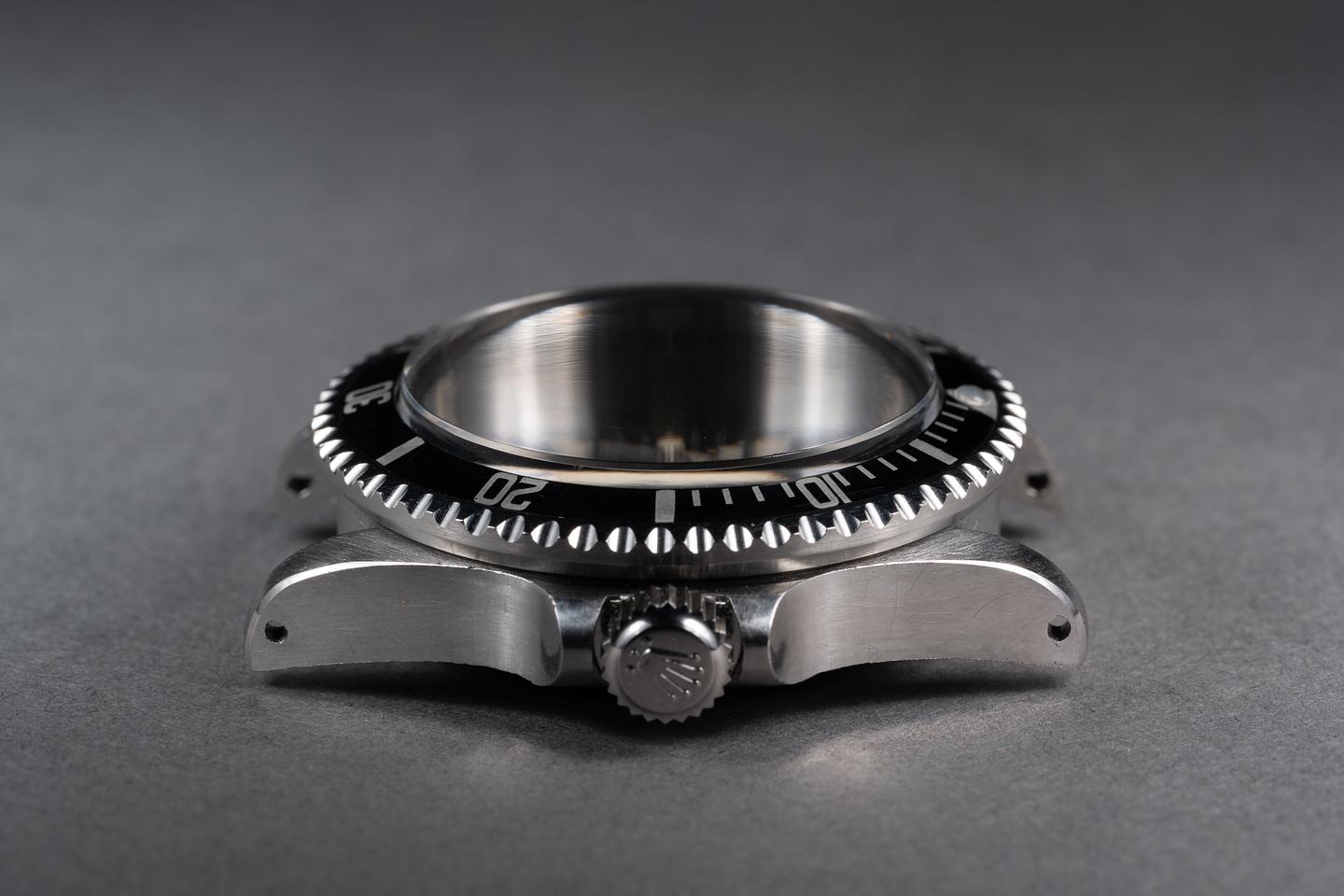 Case: The previously polished case is very good showing sharp prominent bevels and light wear from use. The black bezel insert is in excellent condition showing only very light wear from use.