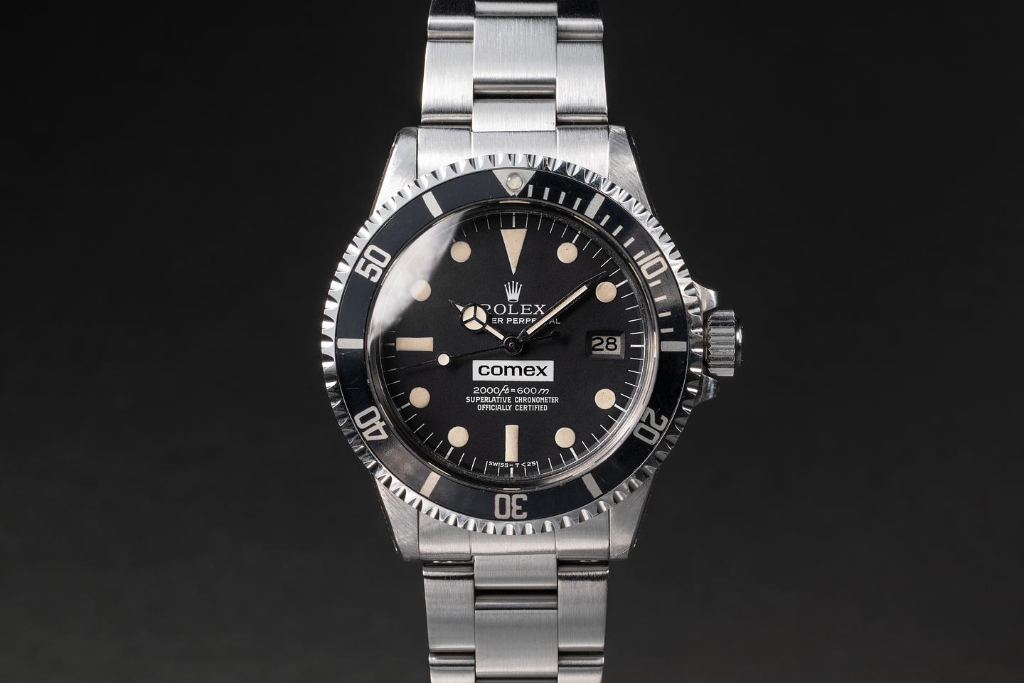 Dial: The black Comex "Pisani" dial is excellent, showing only very light wear for its age. The lume has aged to a warm, creamy hue, and the hands have been relumed and color-matched to the dial.