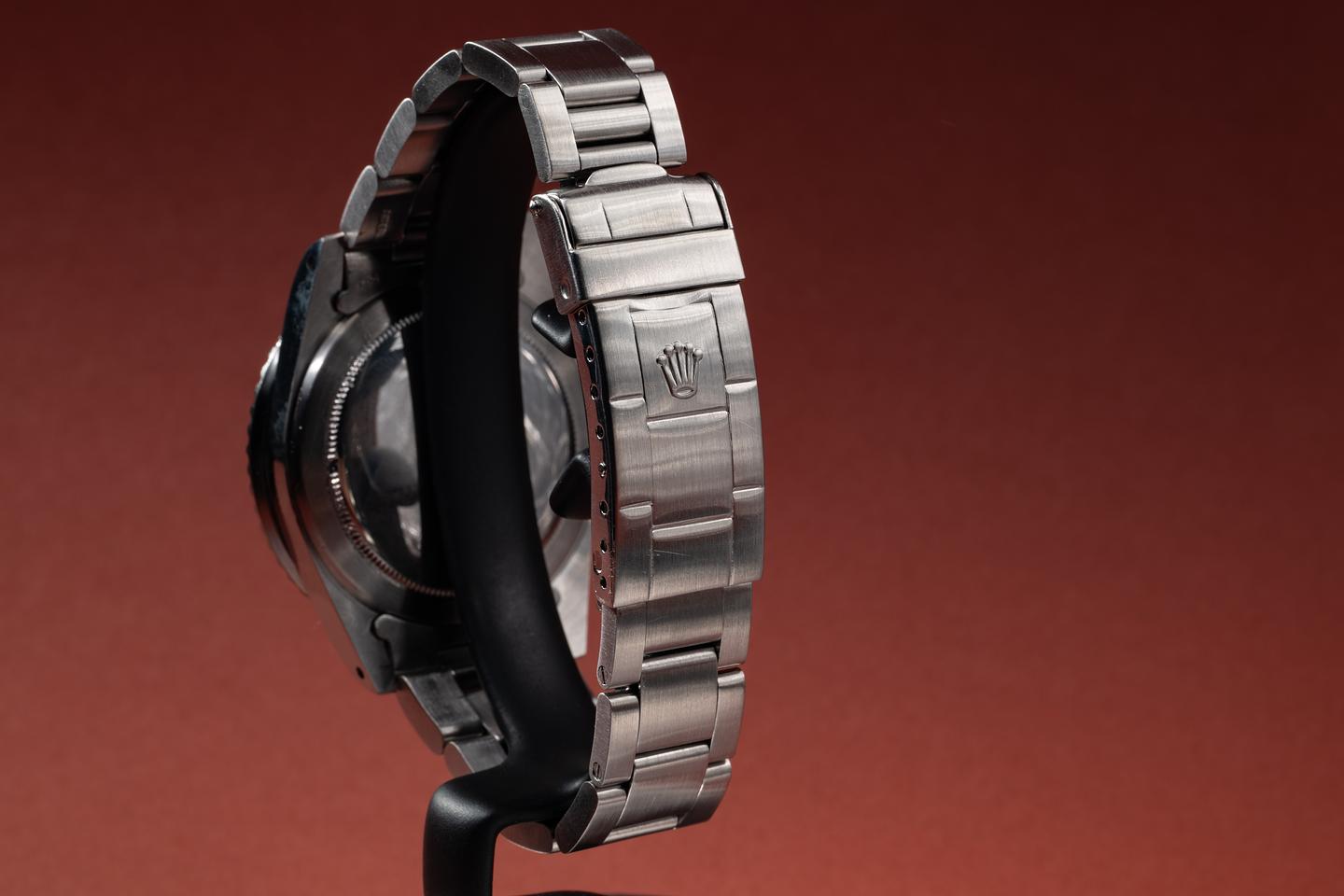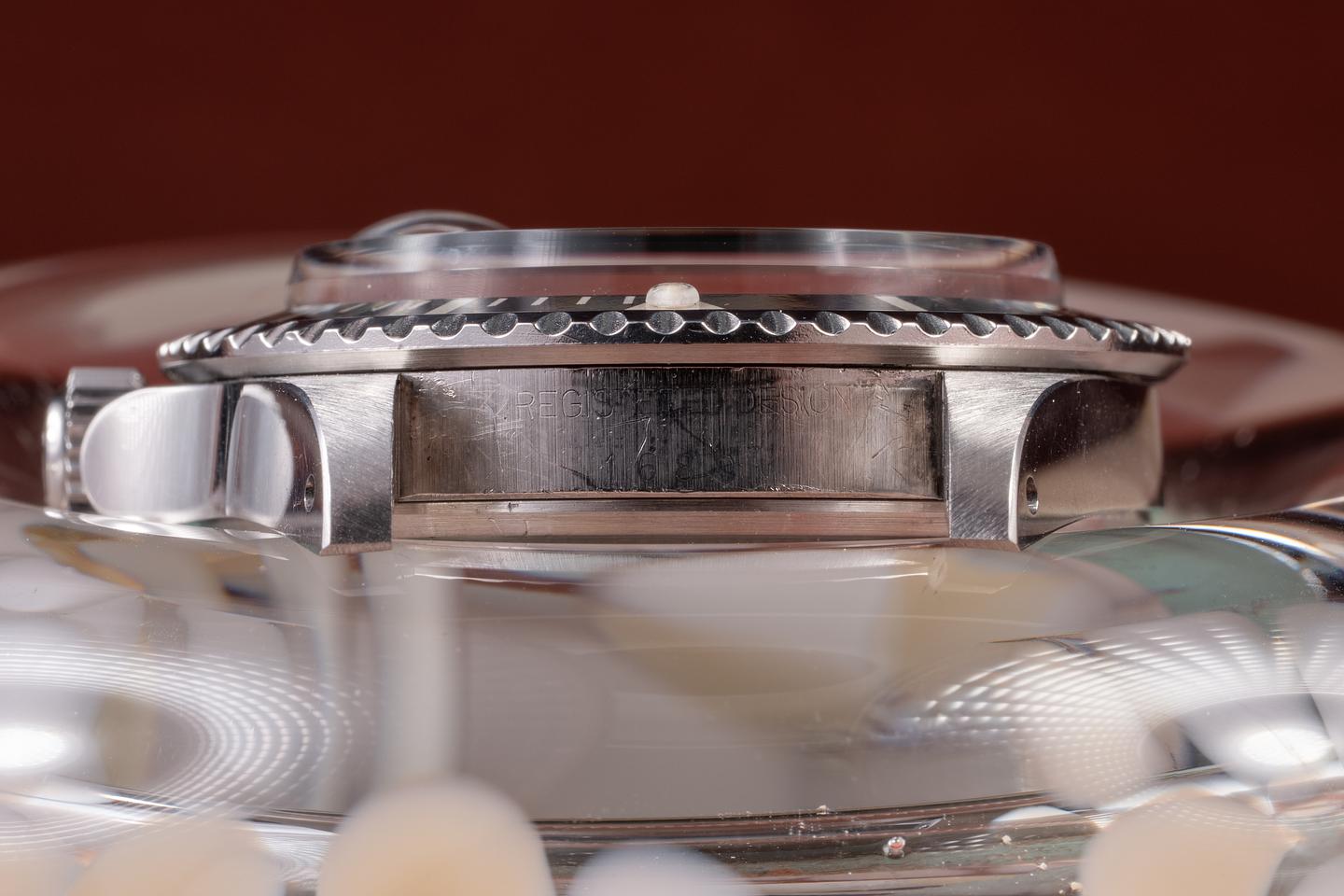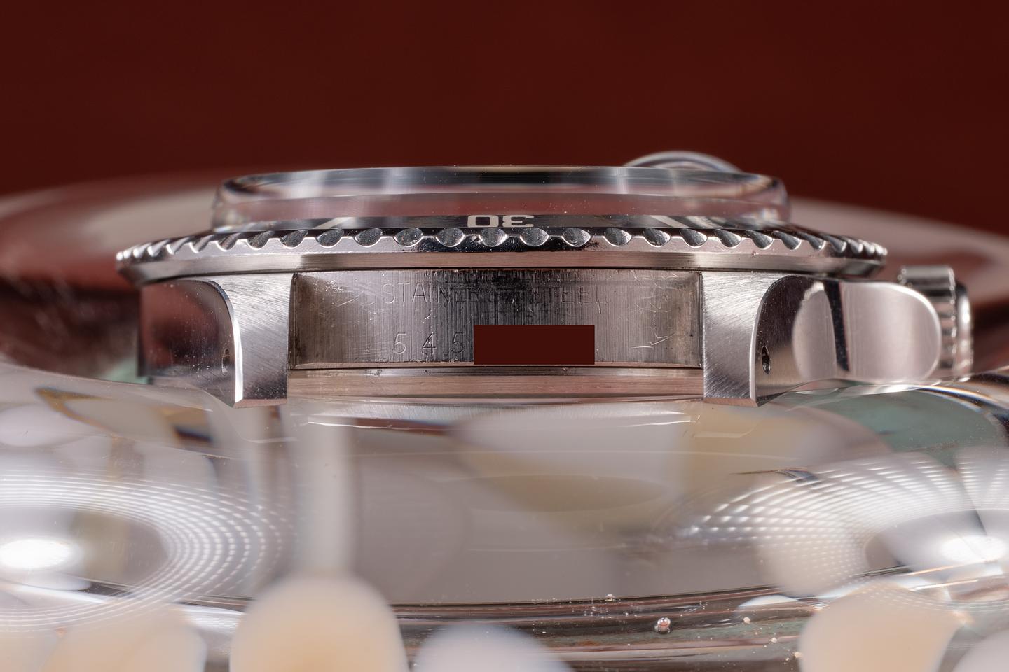 Case: The recently polished case is excellent, showing sharp, prominent bevels and only very light wear. The black bezel insert is also in excellent condition, showing only very light wear from use.