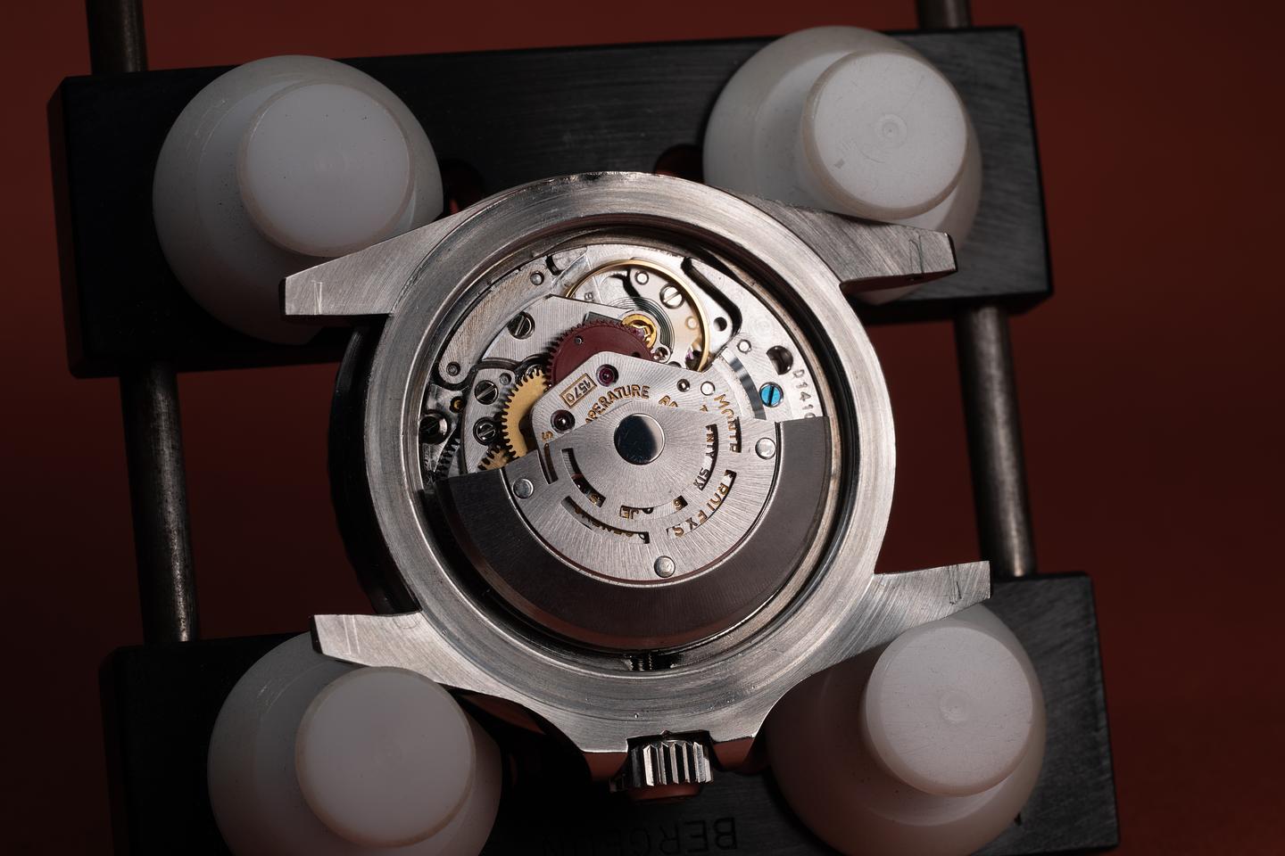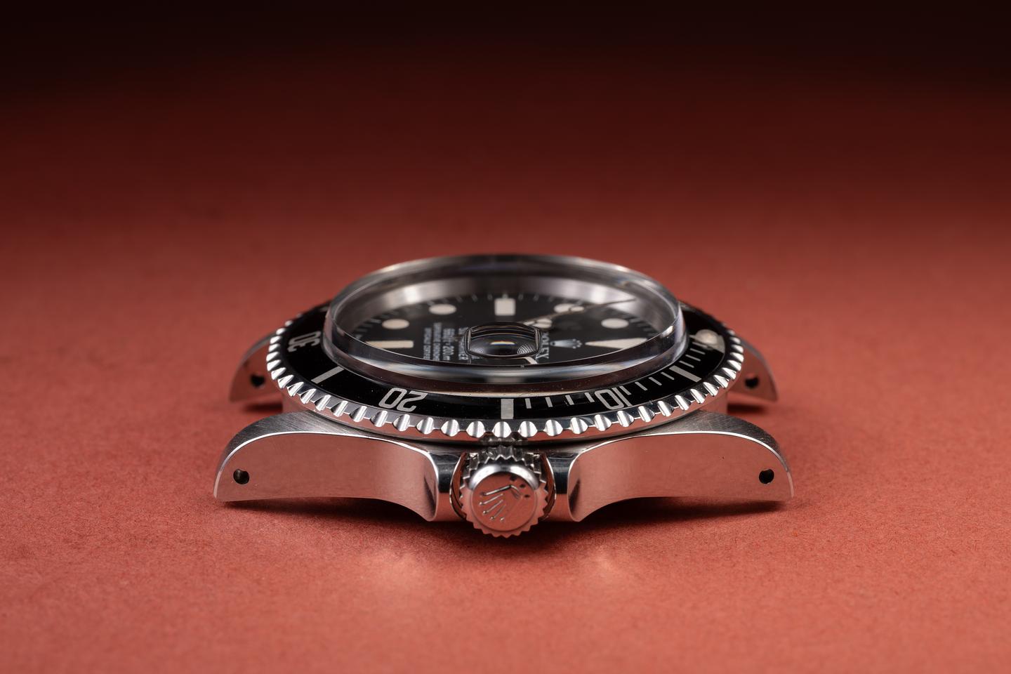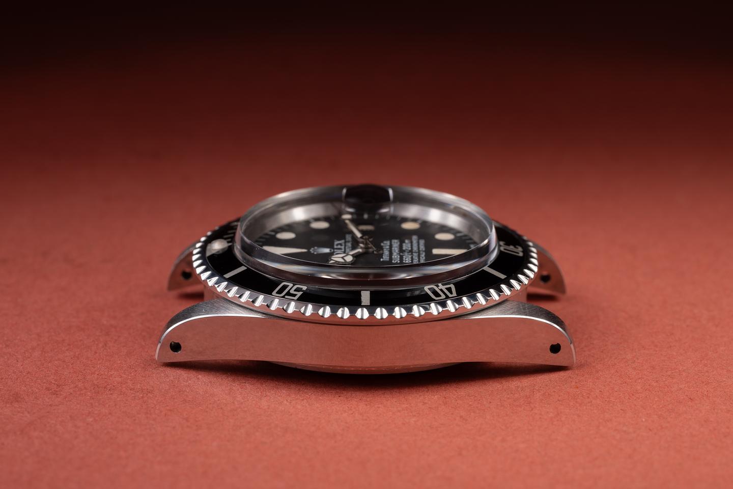 Case: The recently polished case is excellent, showing sharp, prominent bevels and only very light wear. The black bezel insert is also in excellent condition, showing only very light wear from use.