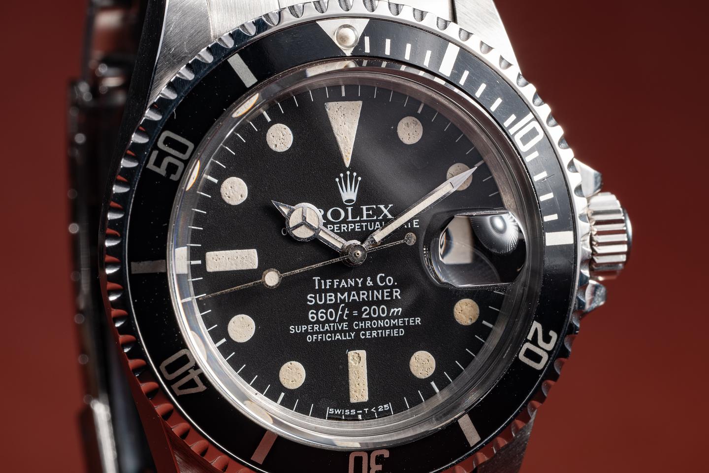 Dial: The matte black "Tiffany & Co." dial is excellent, showing some light wear for its age. The lume has aged to a clean, creamy hue, and there is a small chip present in the 6 o'clock marker. The hands have been relumed and color-matched to the dial.