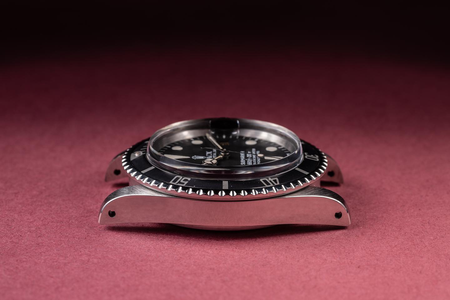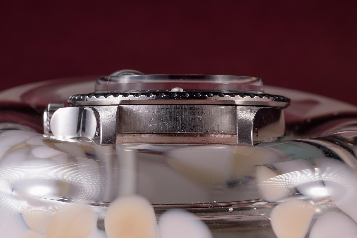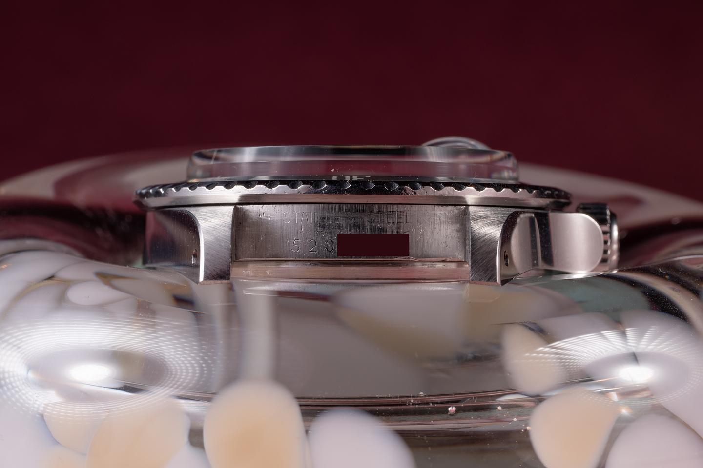 Case: The recently polished case is excellent, showing sharp bevels and only very light wear. The black bezel insert is also in excellent condition, showing only very light wear from use.