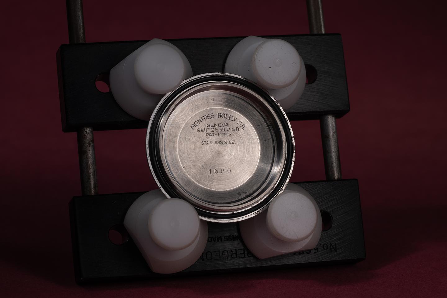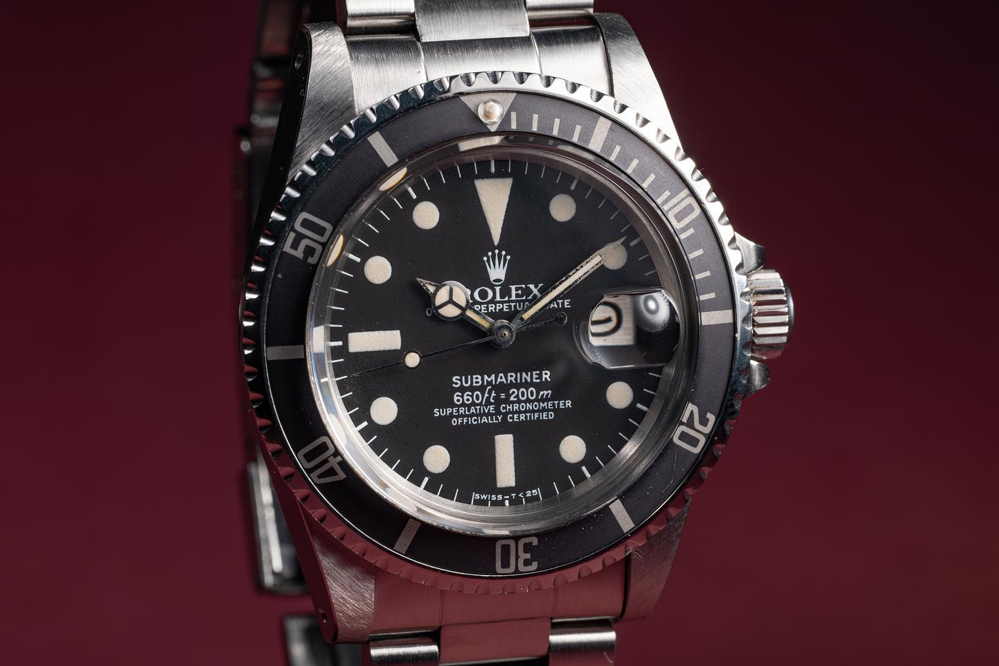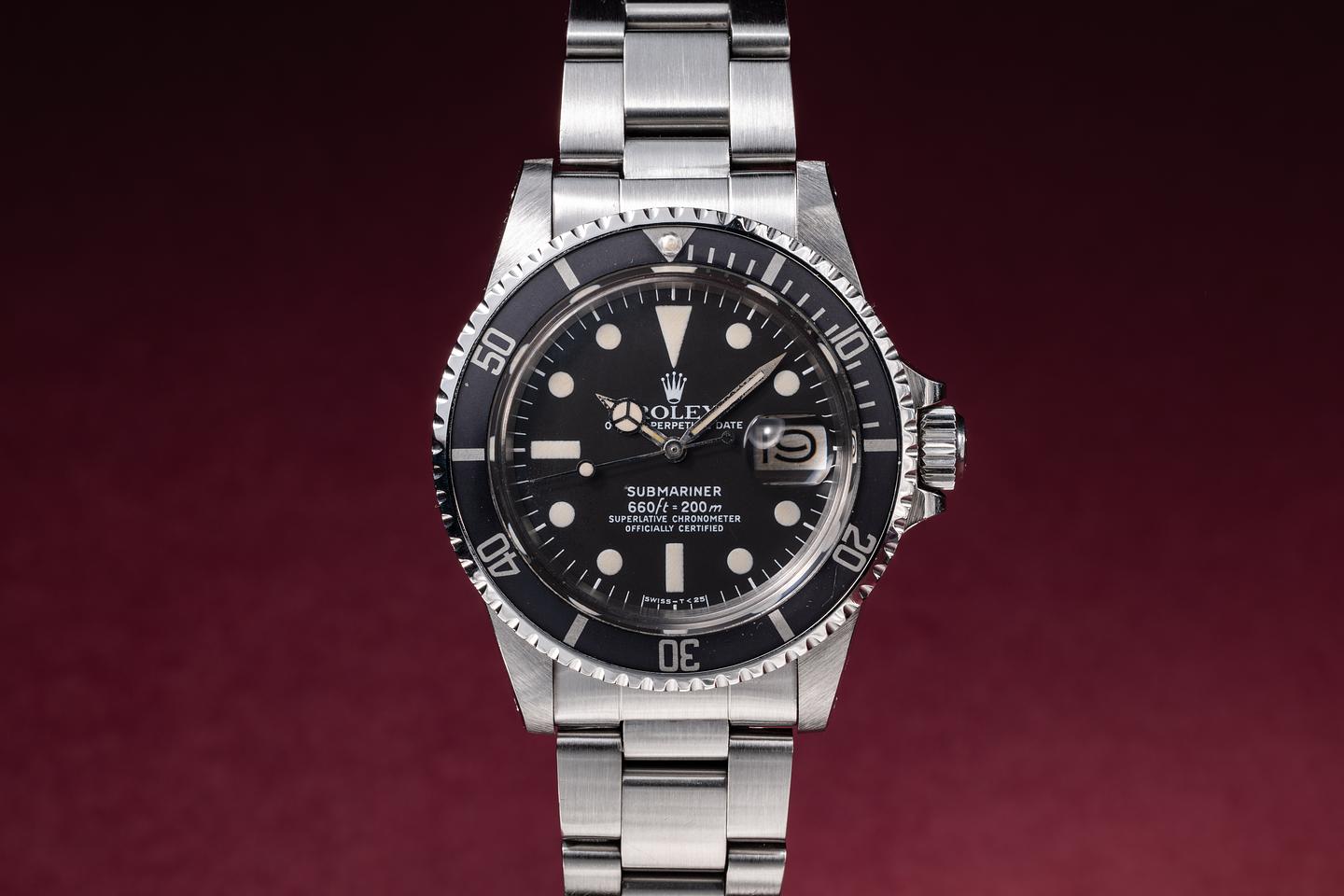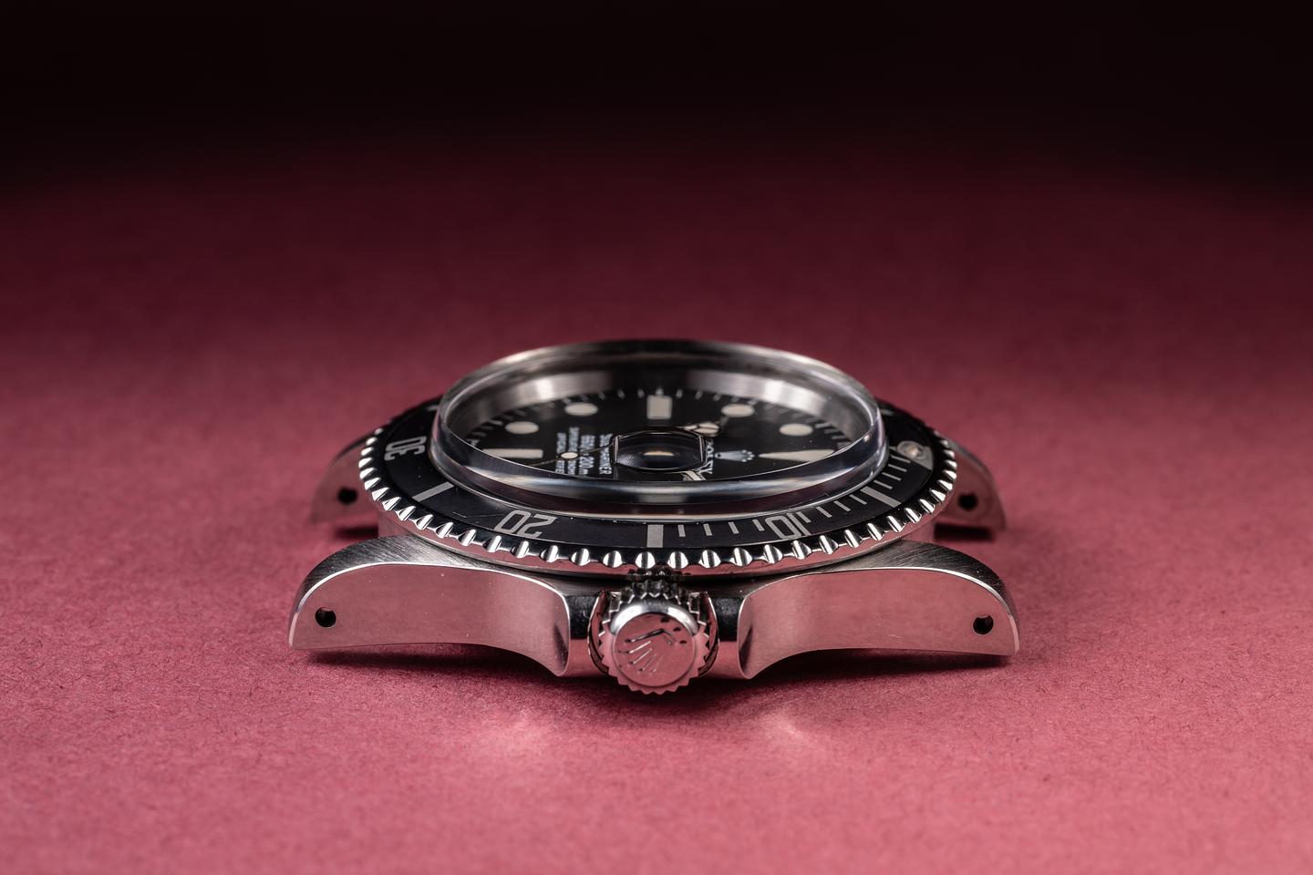 Case: The recently polished case is excellent, showing sharp bevels and only very light wear. The black bezel insert is also in excellent condition, showing only very light wear from use.