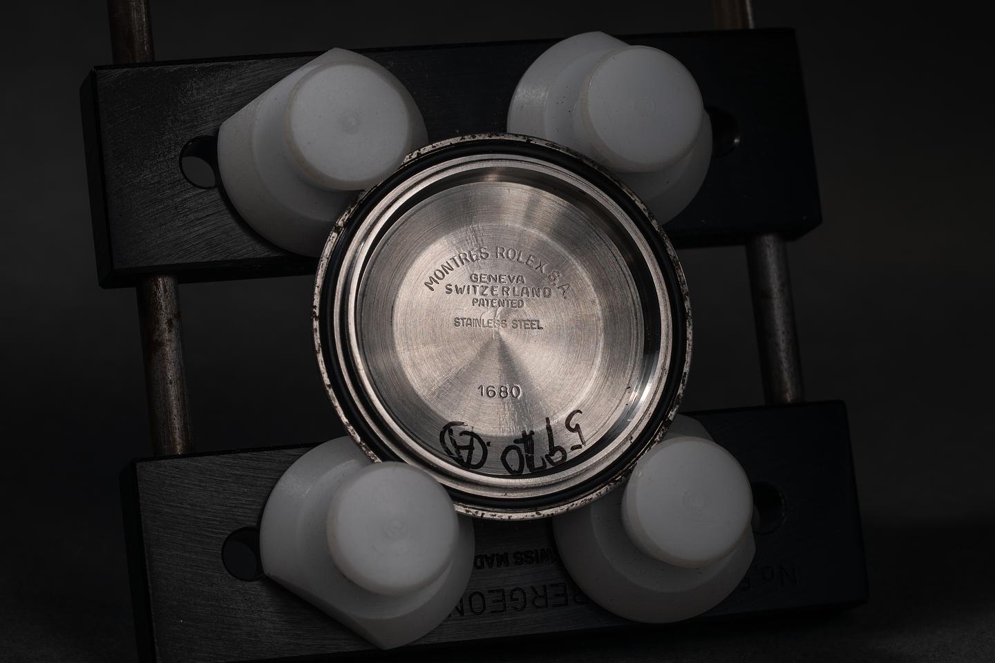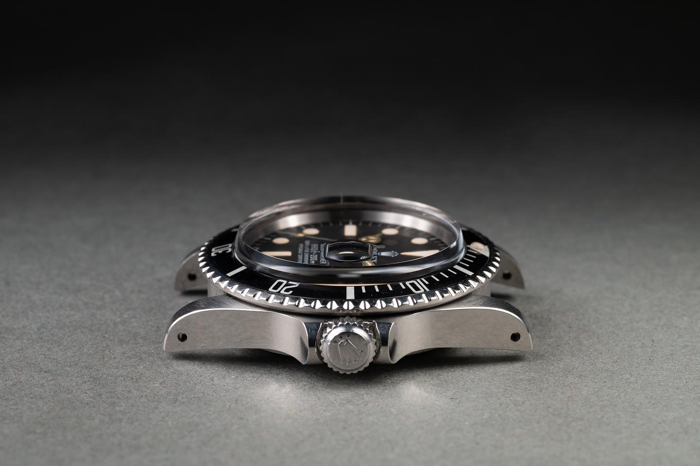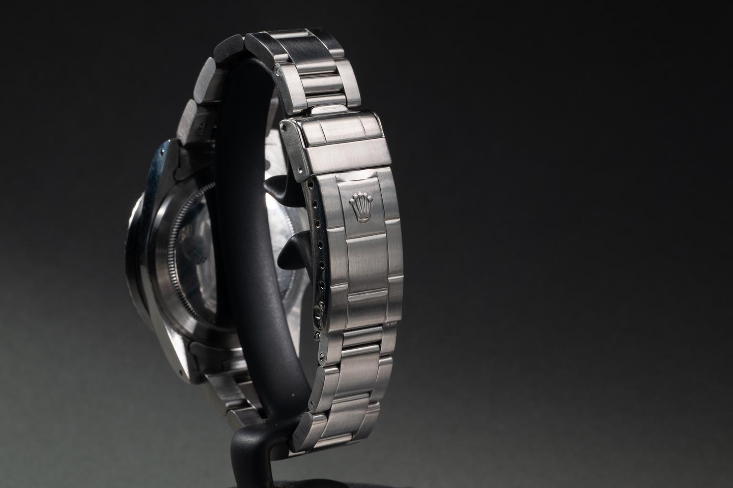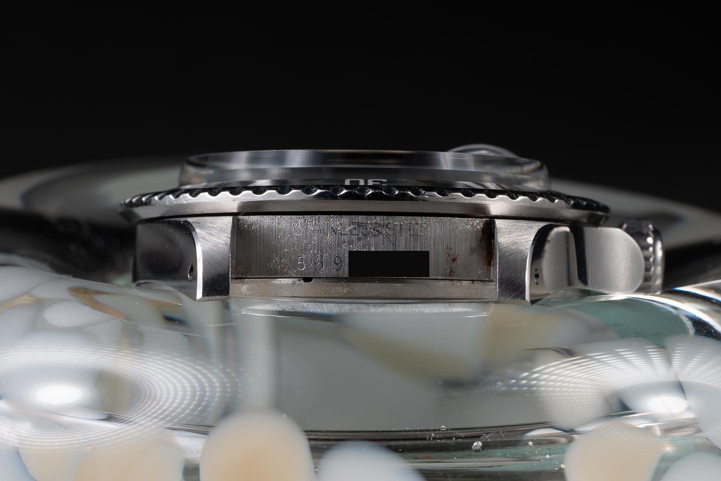 Case: The recently polished case is excellent, showing sharp, prominent bevels and only light wear from use. The black bezel insert is also in excellent condition, showing only light wear from use.